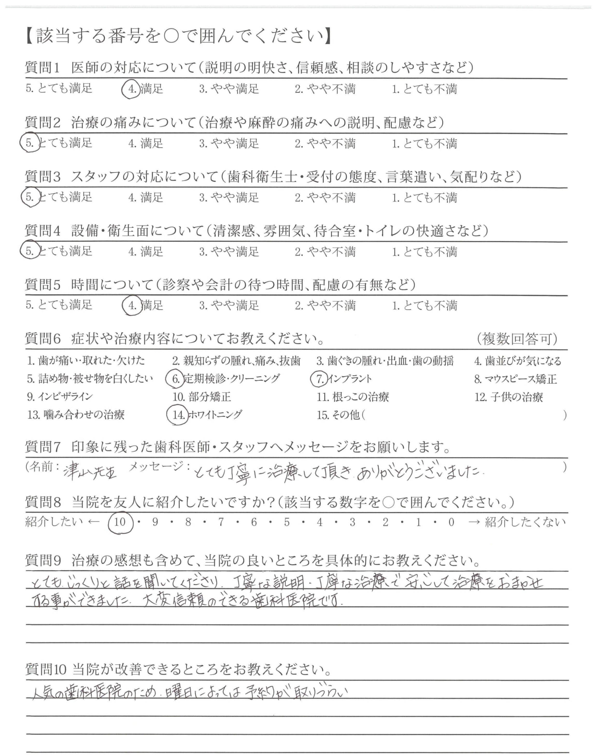 治療のスピードが早かったが特に不快感もなく、よかったと思います。