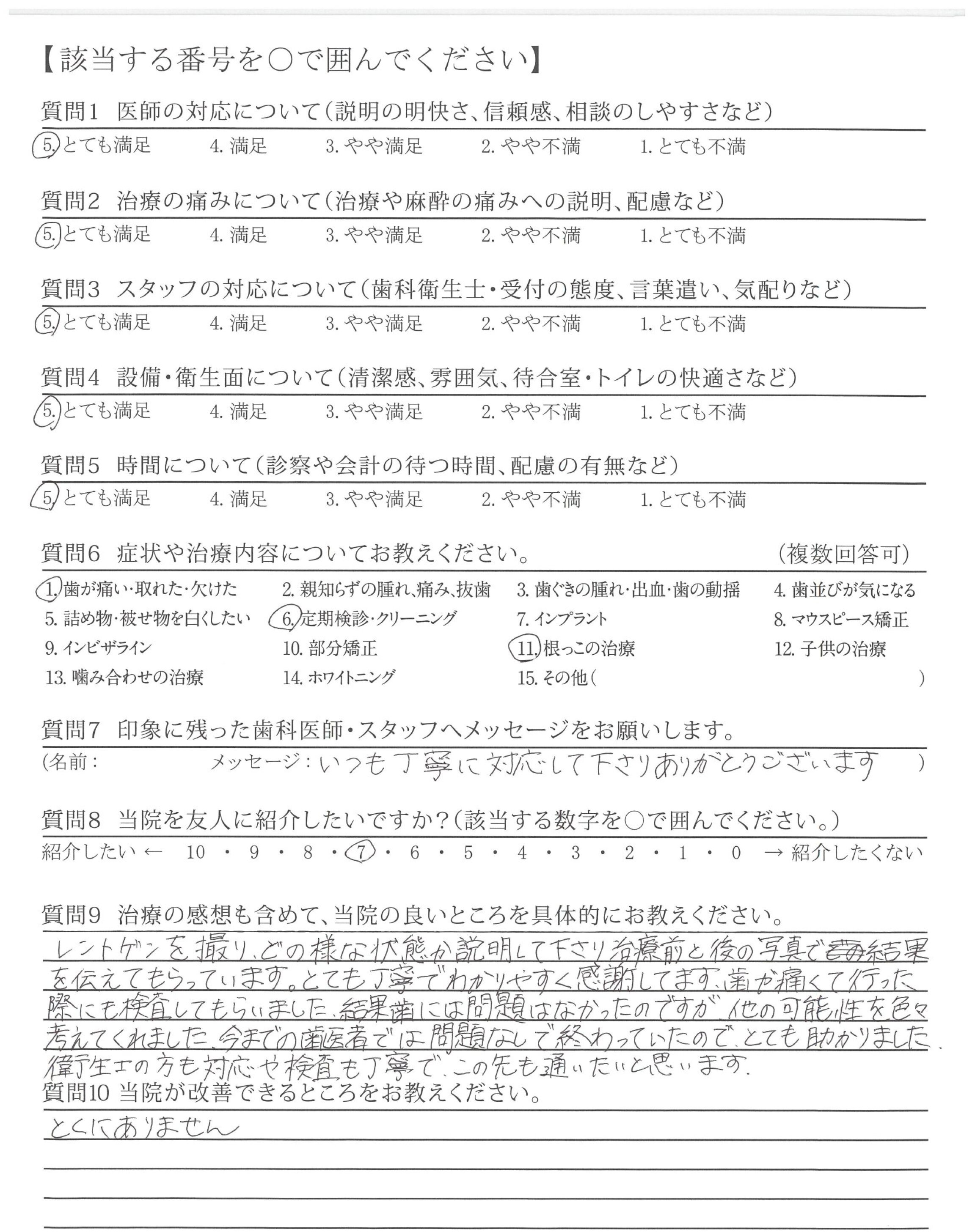 当方の希望を踏まえ丁寧に治療をいただきありがとうございます。