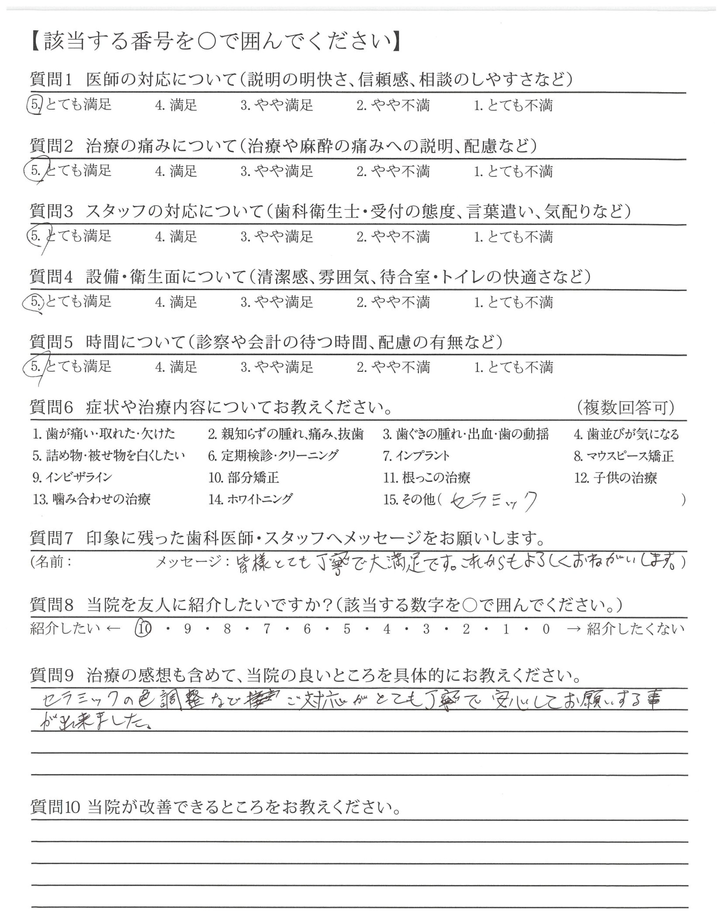 治療中の痛みも少なく痛いのが苦手な私でも通うことができました。大満足です。