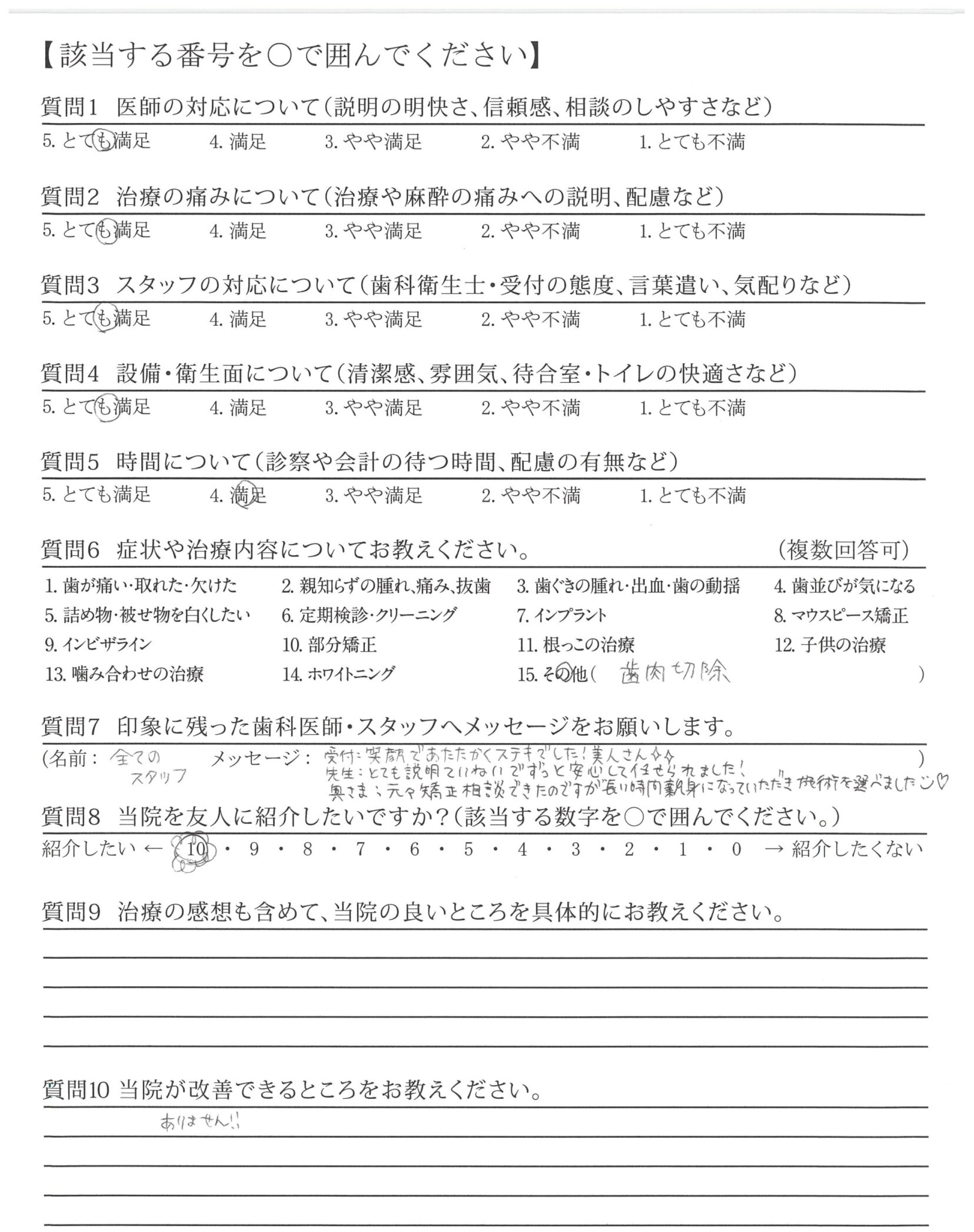丁寧で親身な対応をしていただき、ありがとうございました。安心して治療を受けることができました。