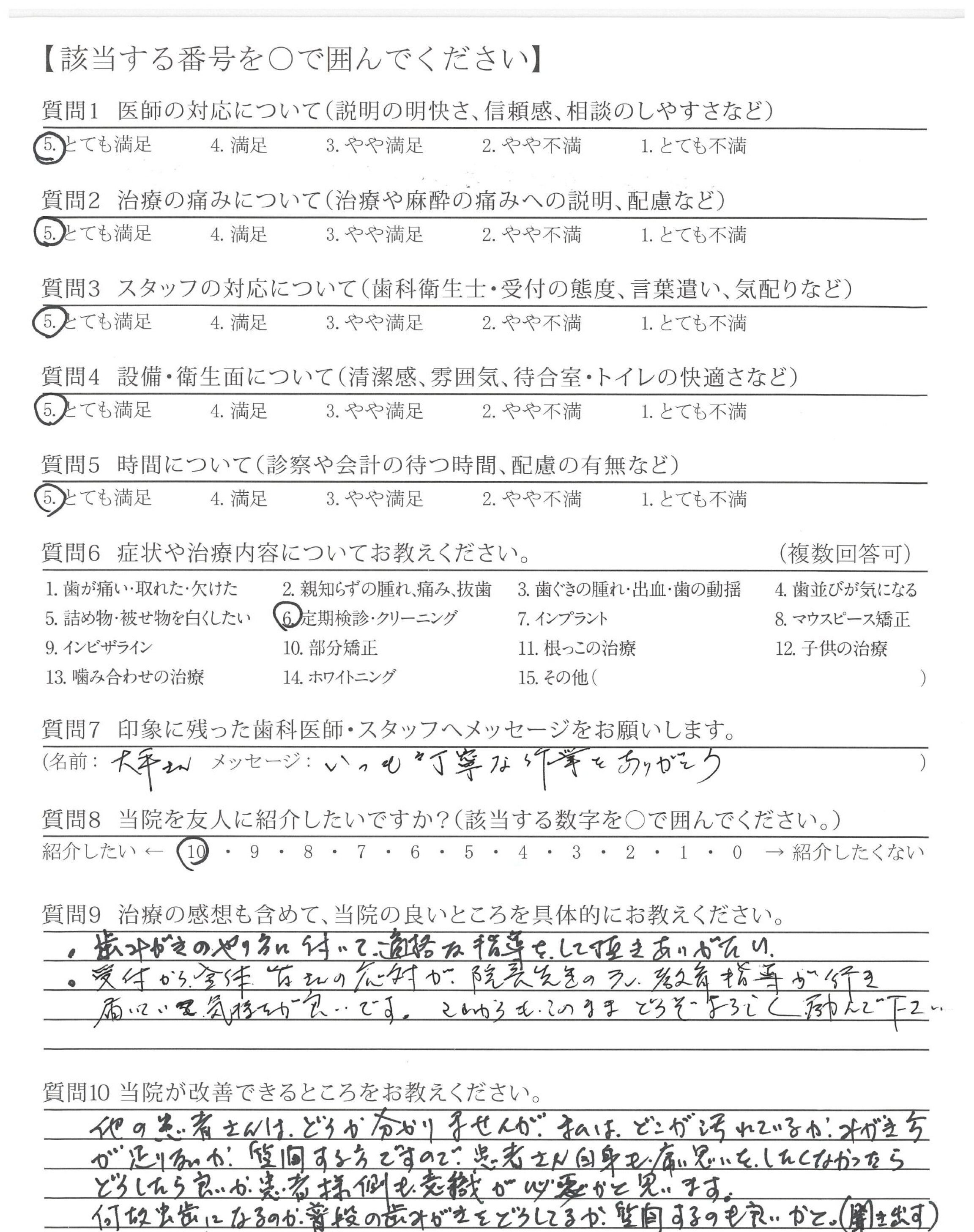 定期的な受診ですが、歯みがきのポイントを正確に教えていただき助かっています。