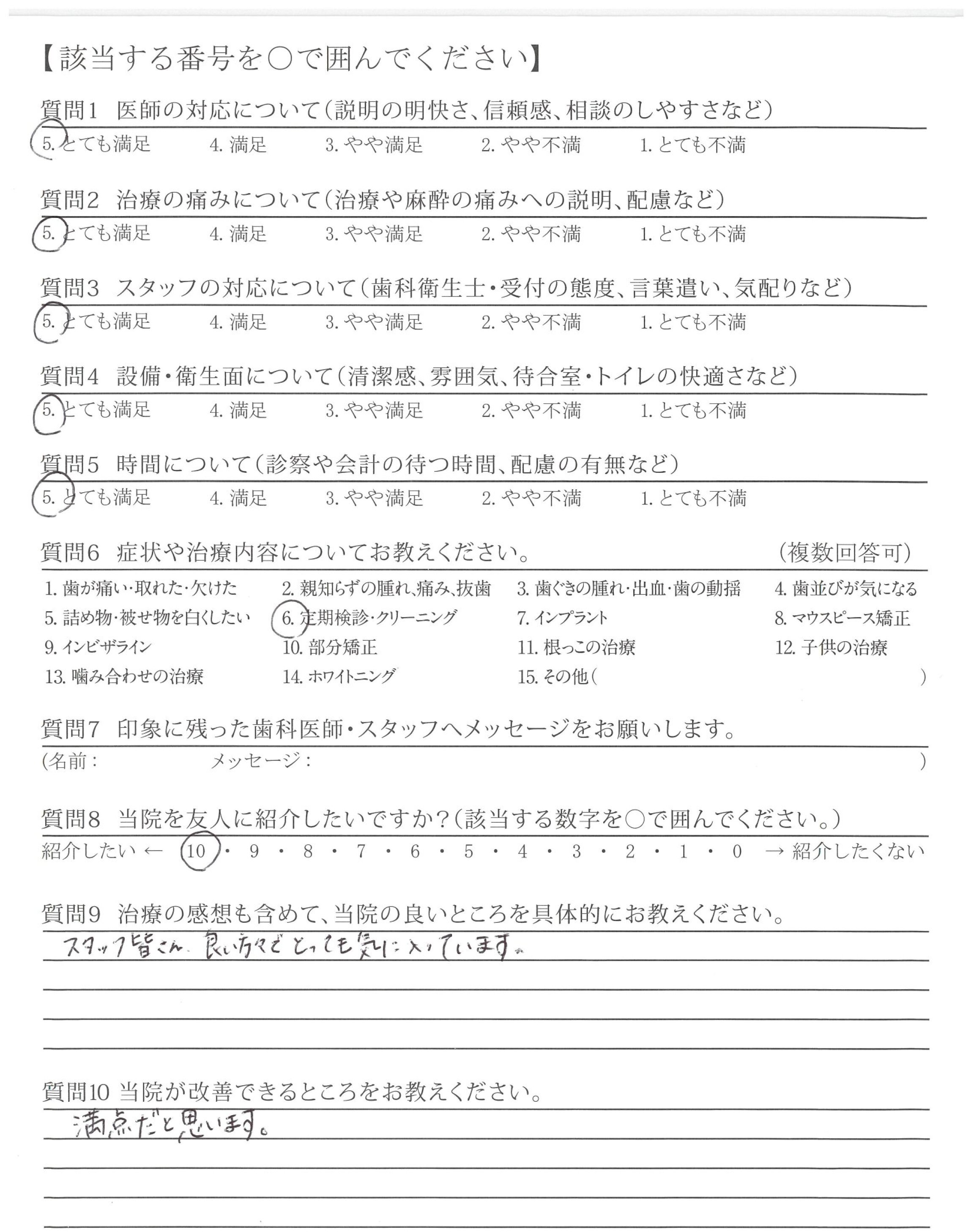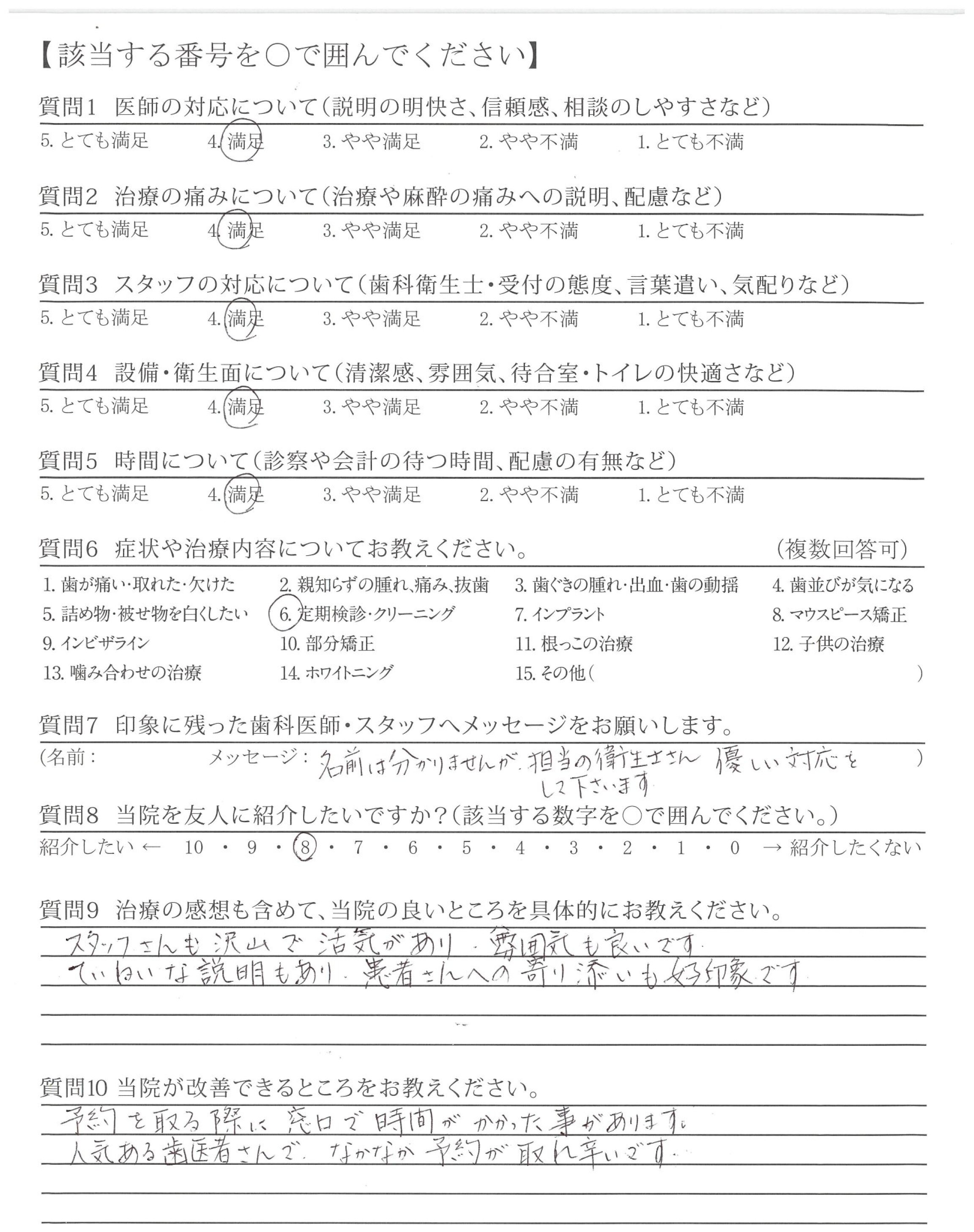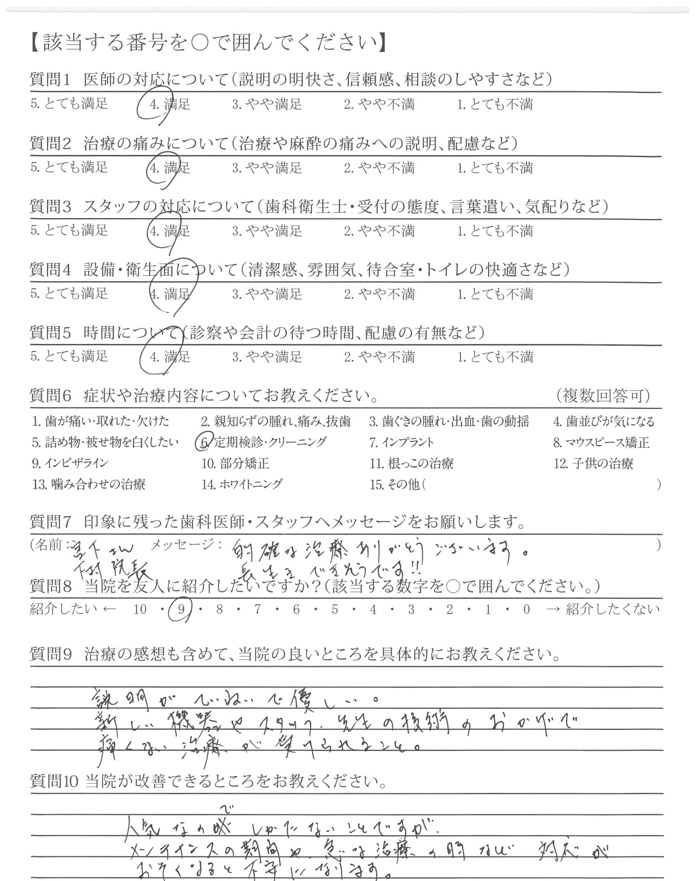 歯科医師やスタッフの方々もすごくやさしく丁寧なのでこのままの状態を維持していただけるとありがたいですし、更に患者も増えることと思います。