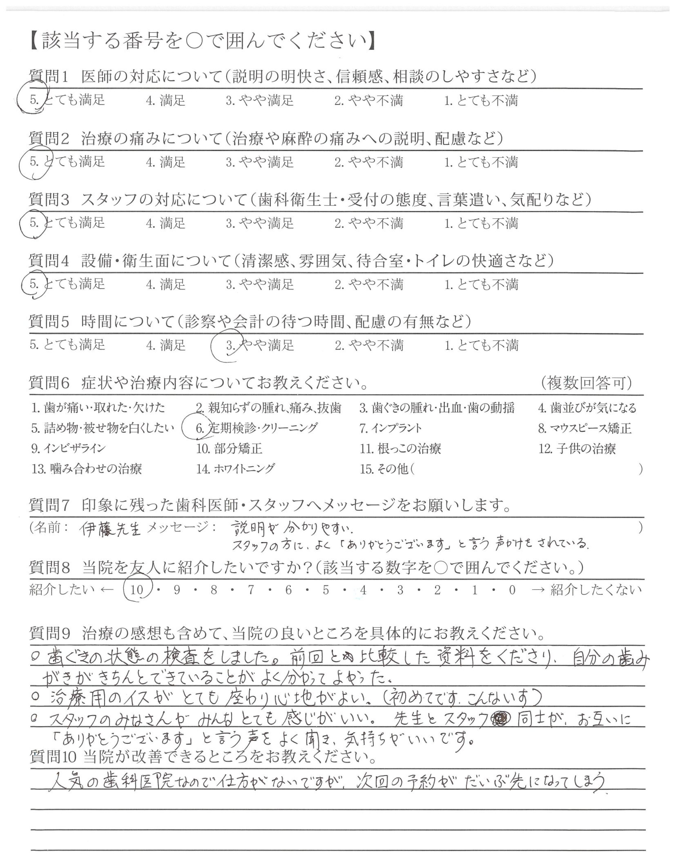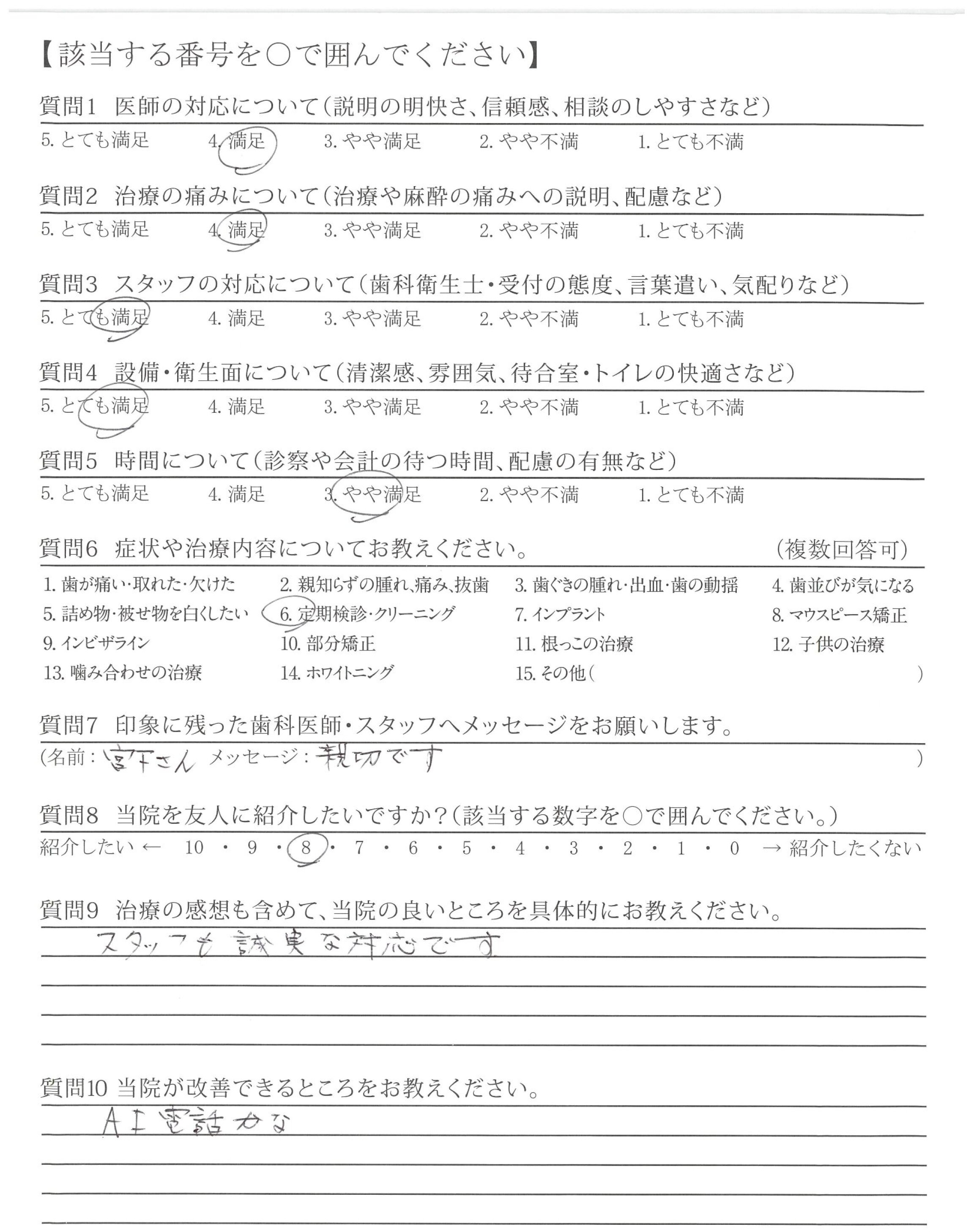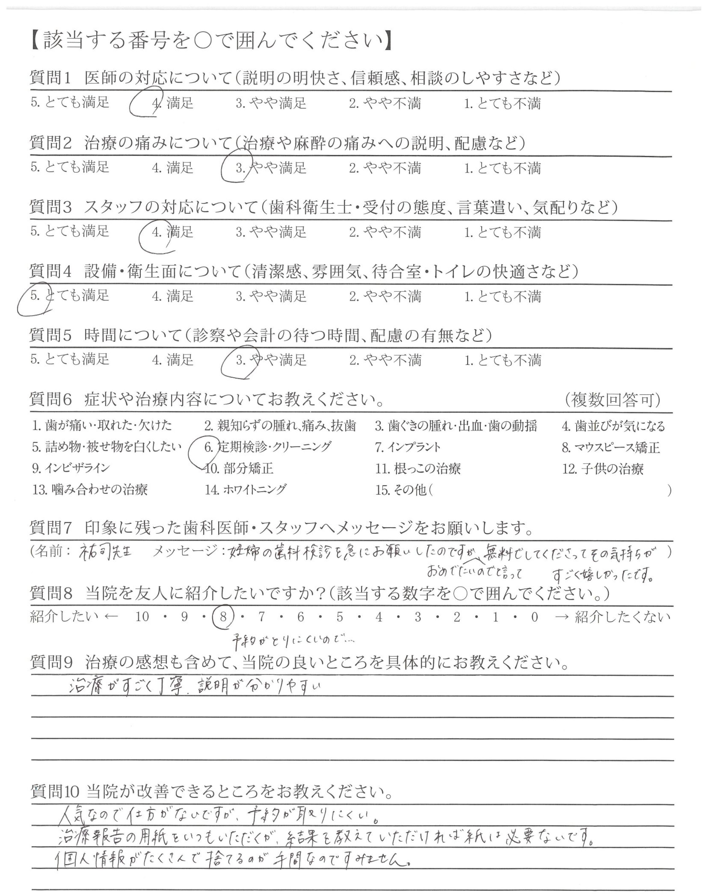 ・写真を見ながらの先生の説明がとてもわかりやすく(明確)治療がていねいである