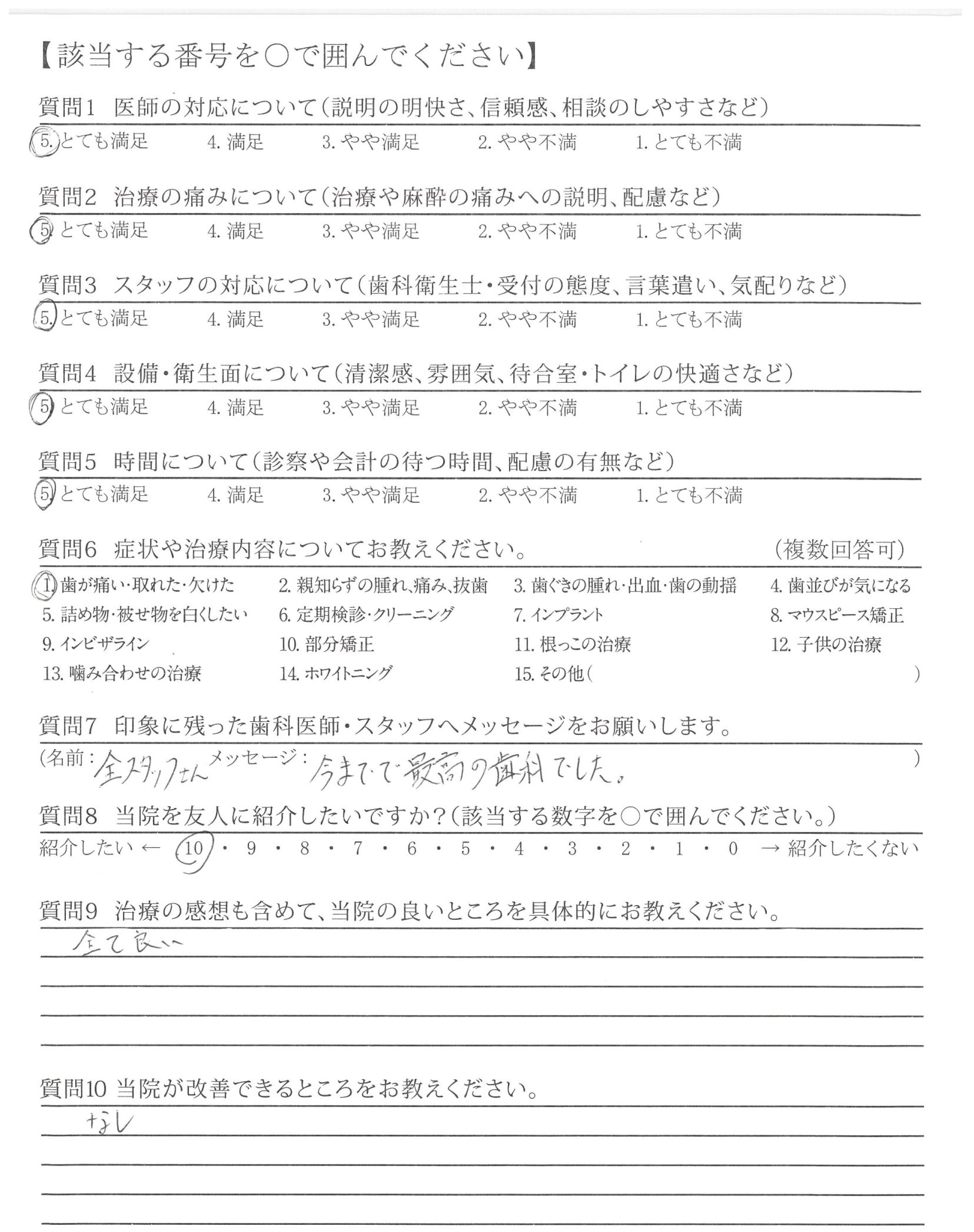 丁寧で優しく、しかも短期間で治療してくださり本当にありがとうございました。