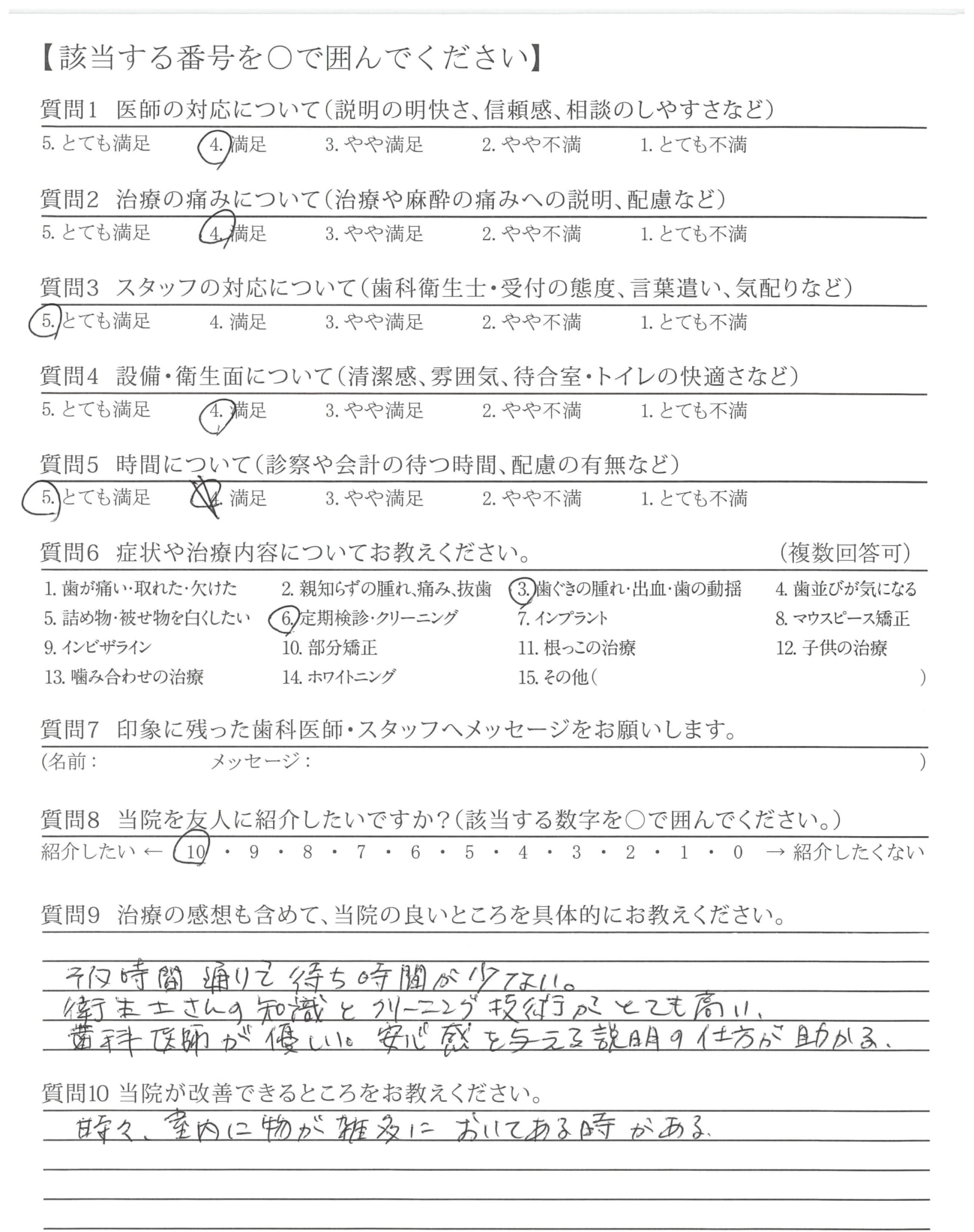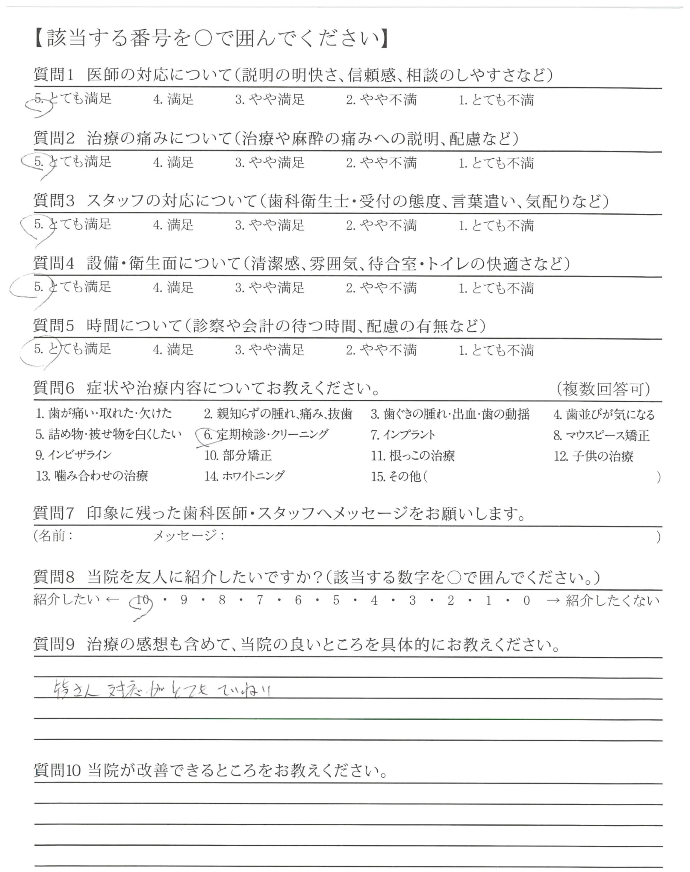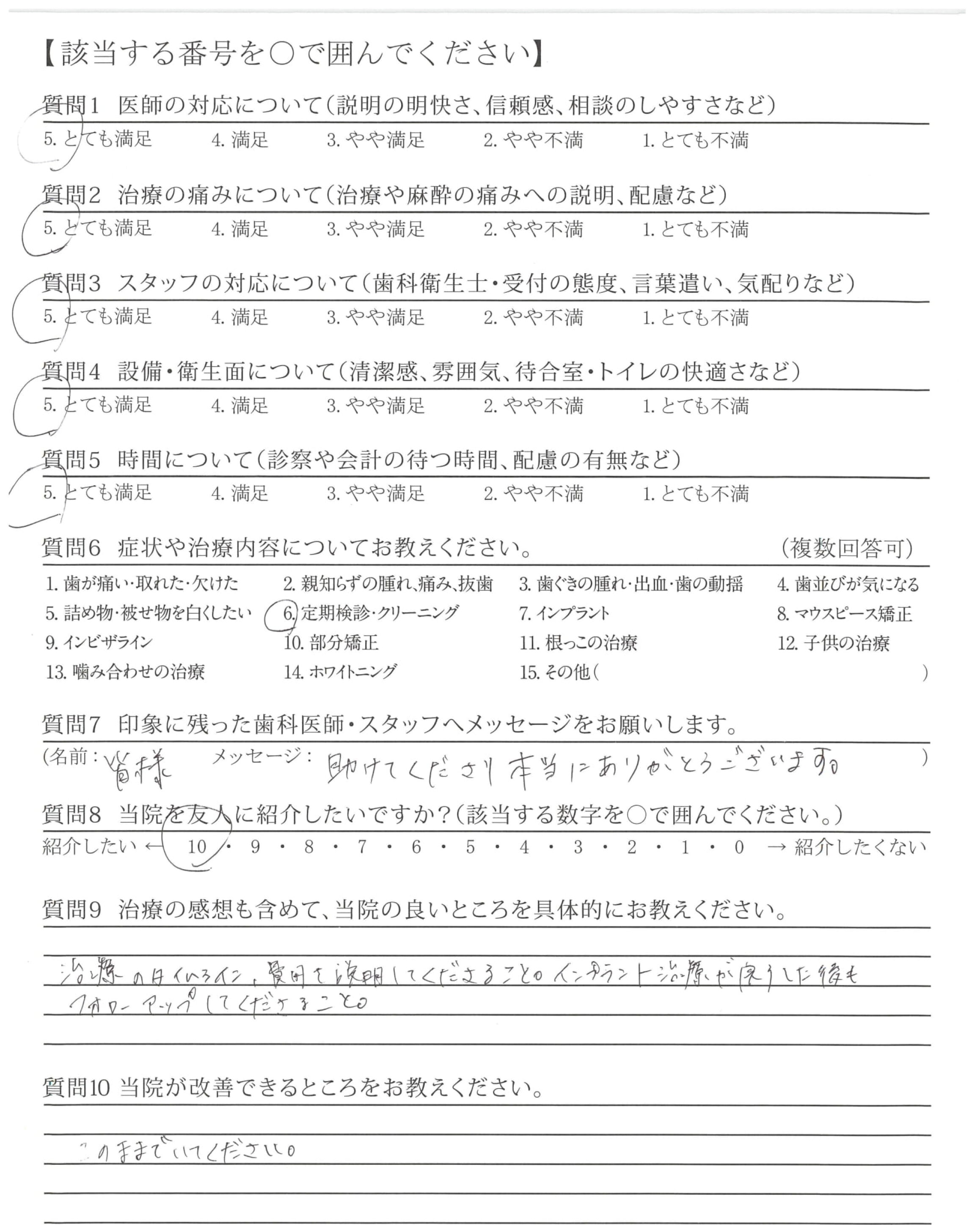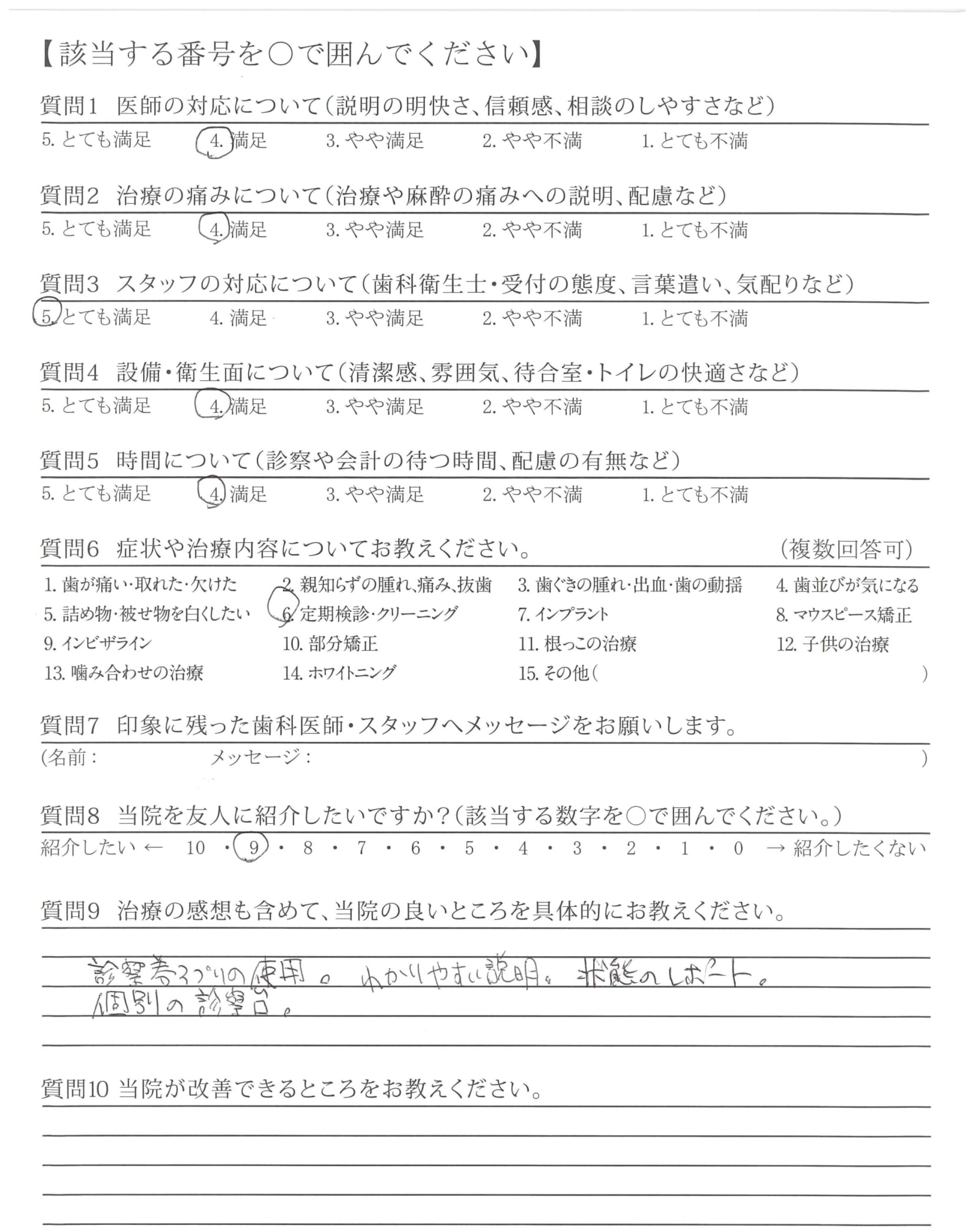 「ひとこと」もしましたが、懇切丁寧な治療と定期検診などを通じて適切な歯みがき指導など過去通院した歯科医とレベルが違うと感じている