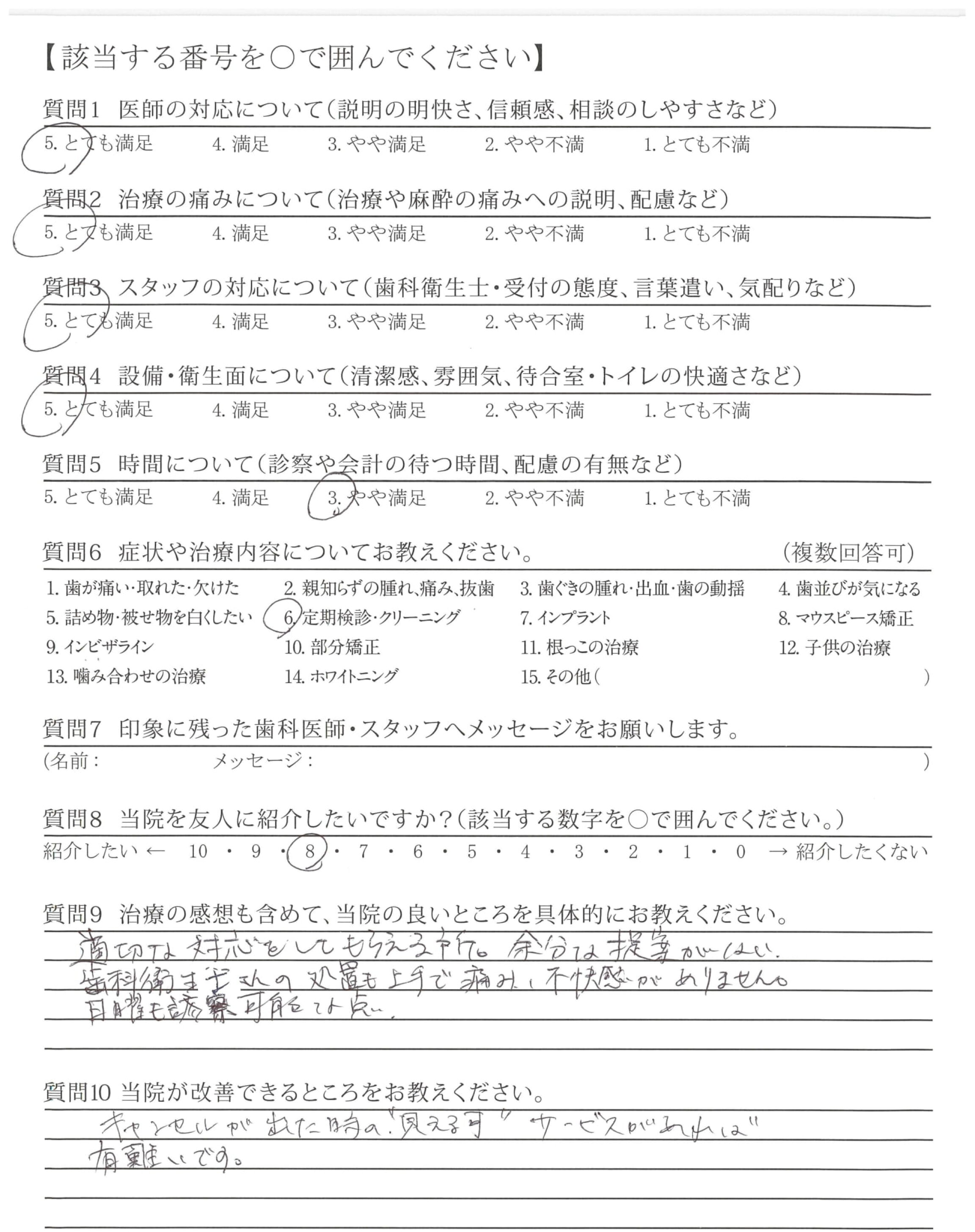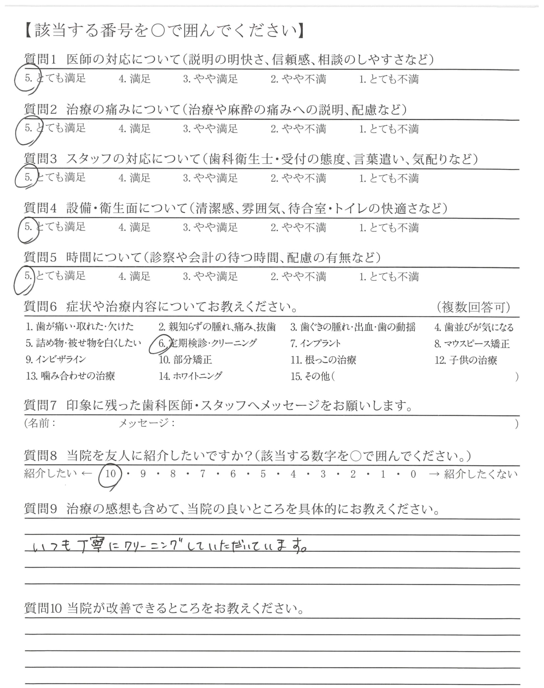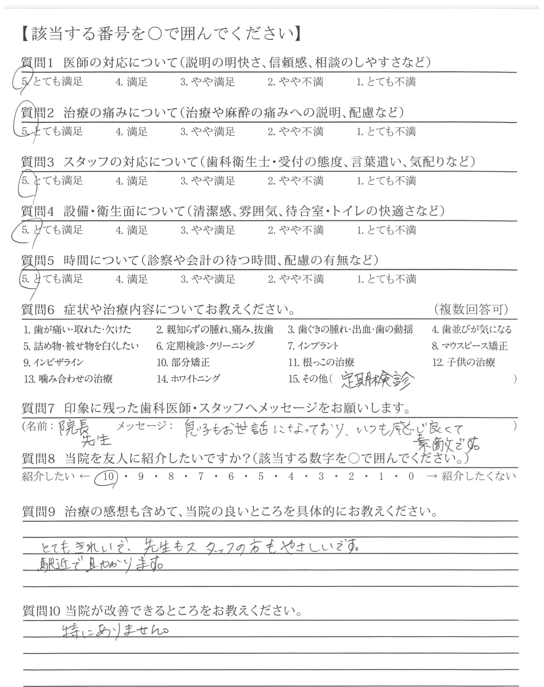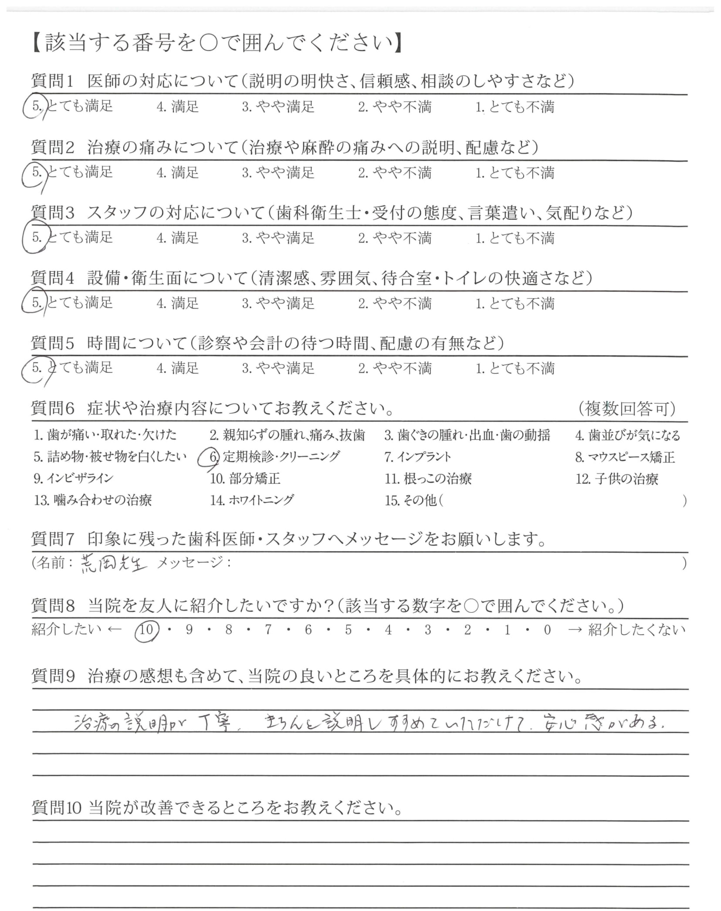 「ひとこと」もしましたが、懇切丁寧な治療と定期検診などを通じて適切な歯みがき指導など過去通院した歯科医とレベルが違うと感じている