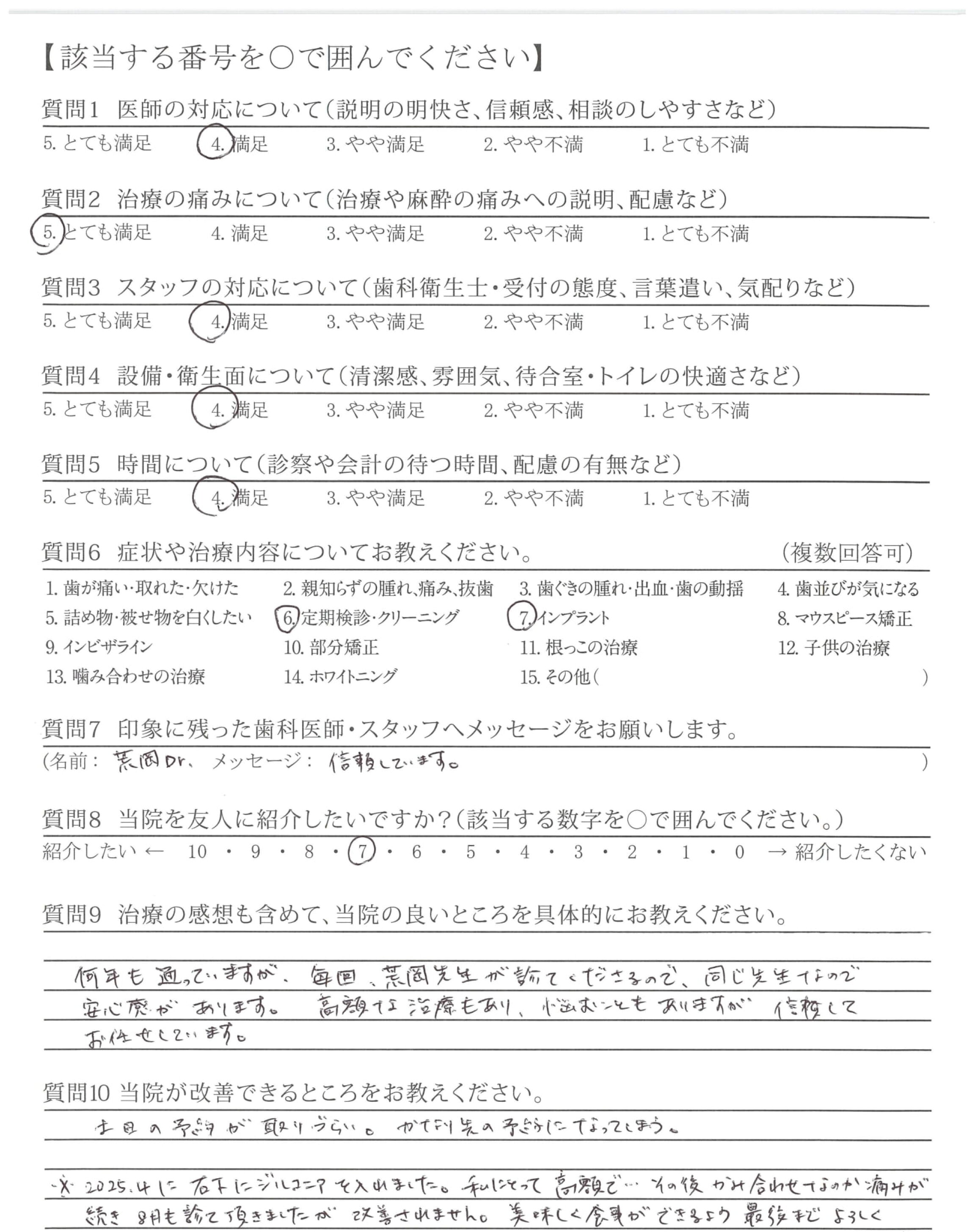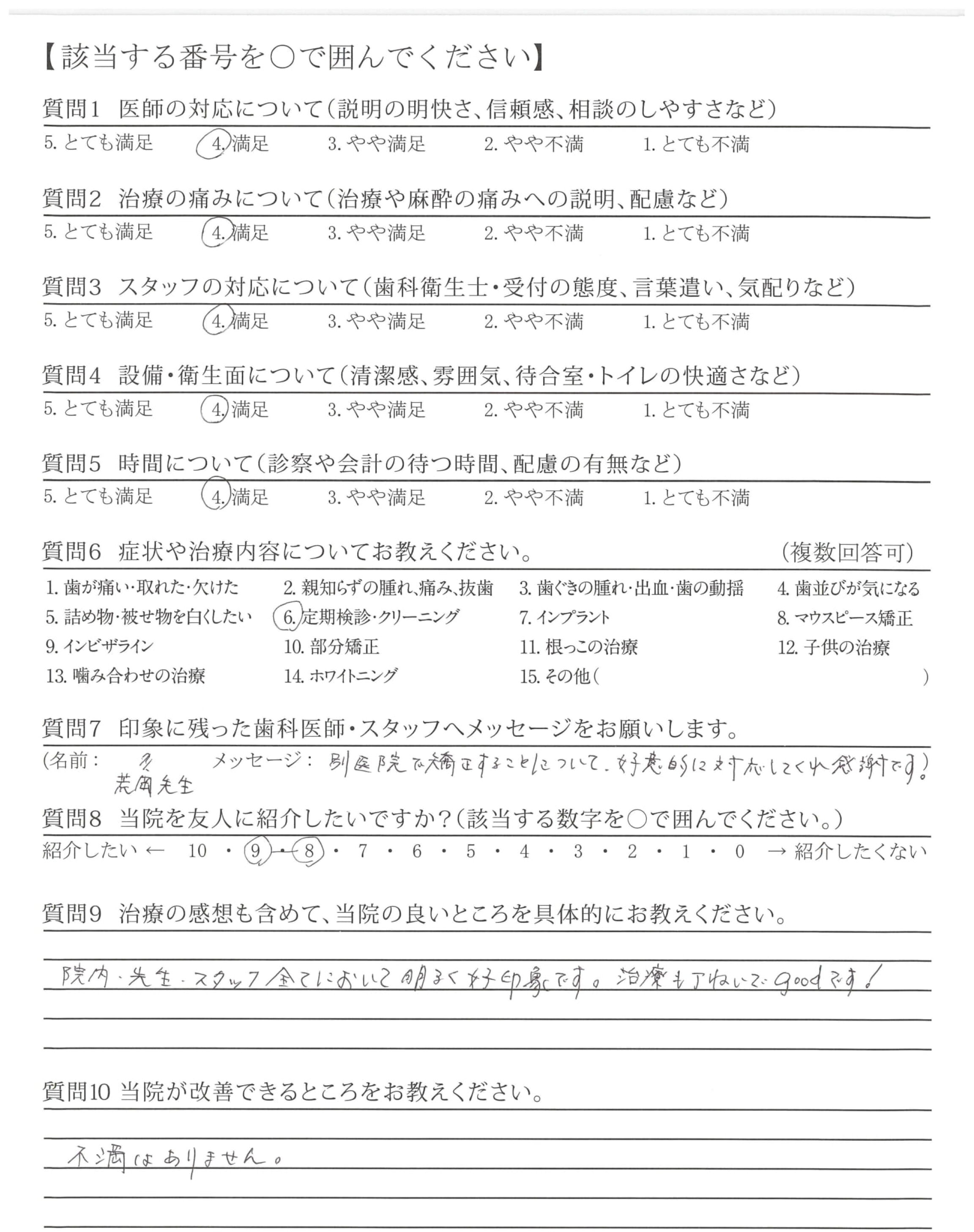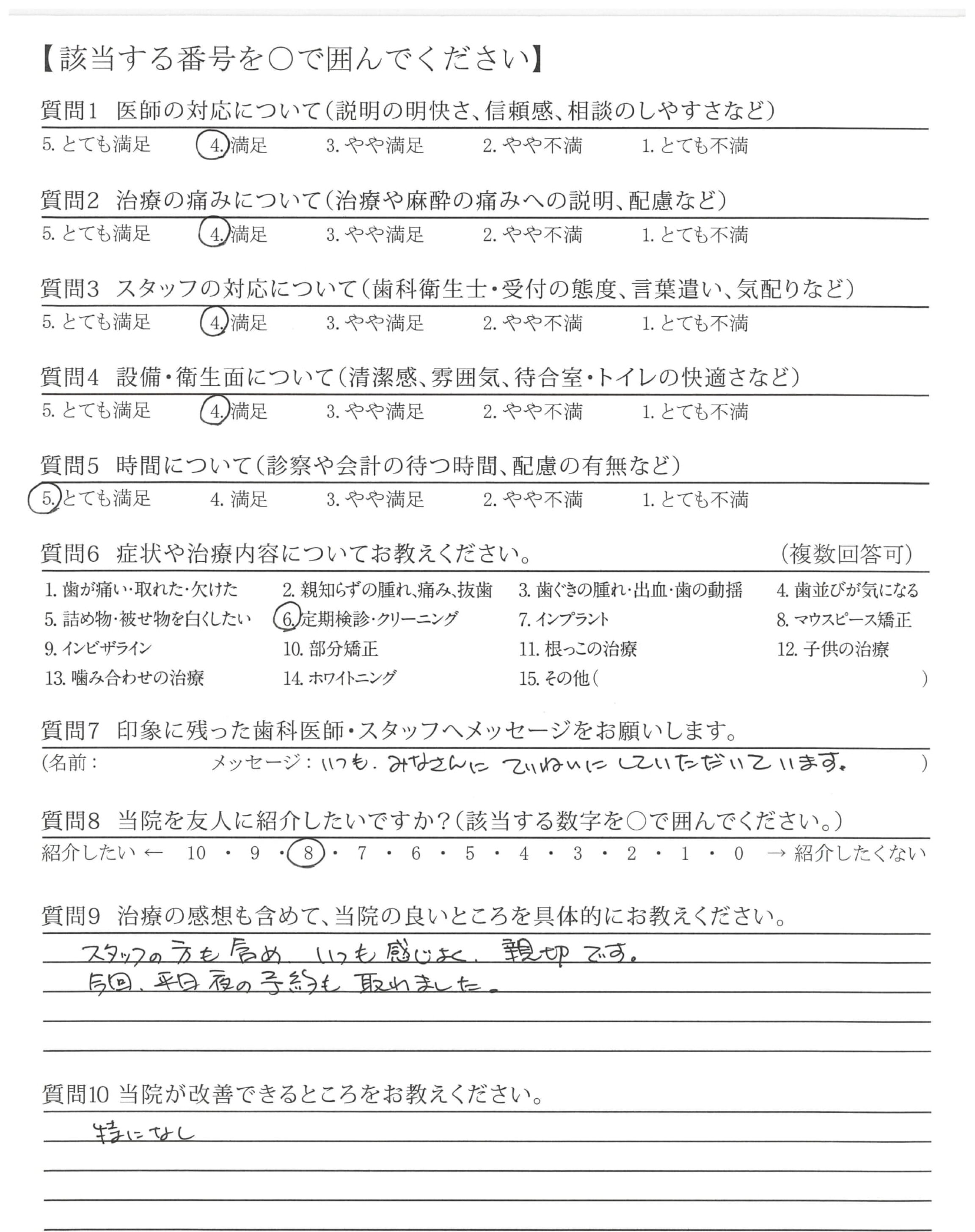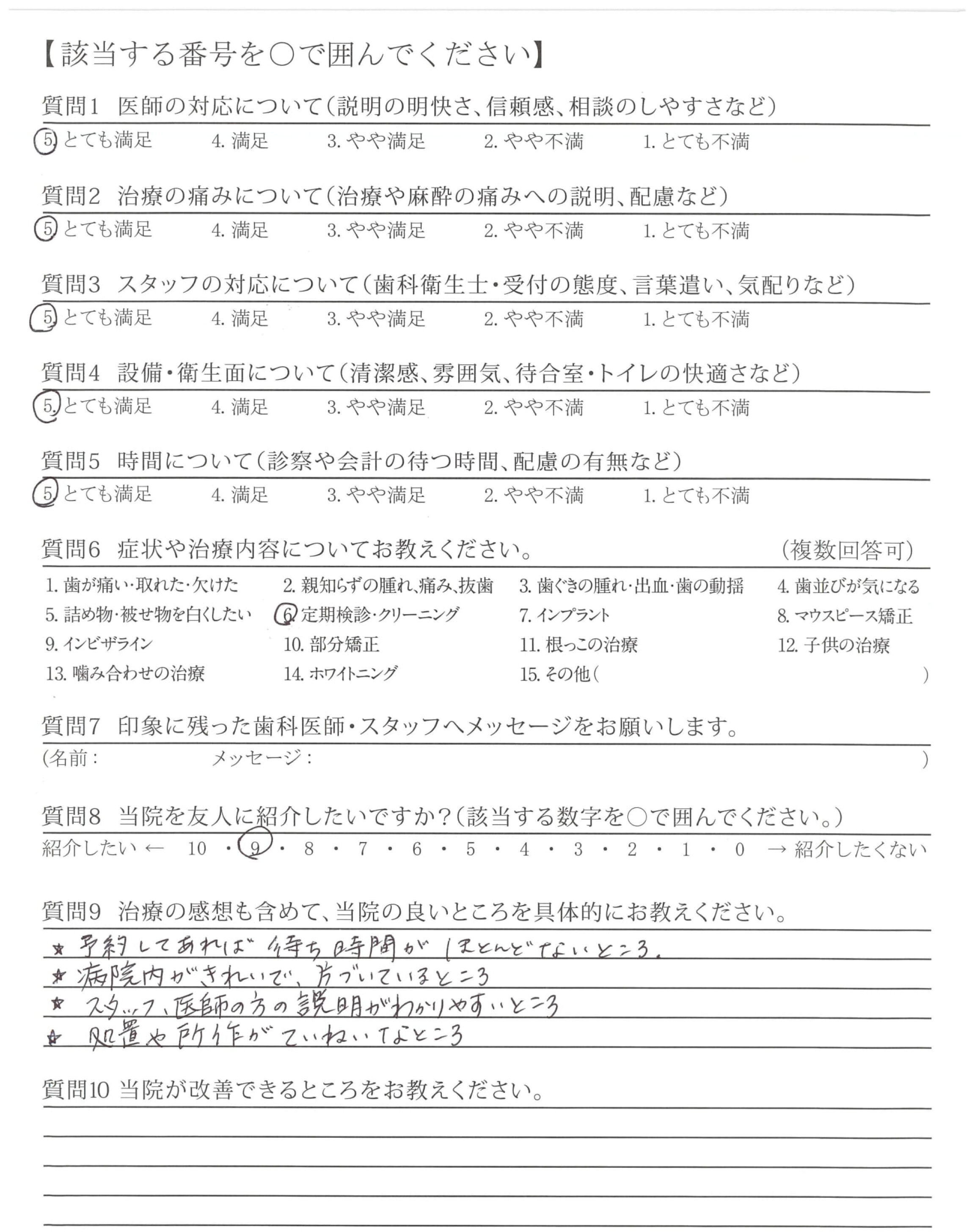 「ひとこと」もしましたが、懇切丁寧な治療と定期検診などを通じて適切な歯みがき指導など過去通院した歯科医とレベルが違うと感じている