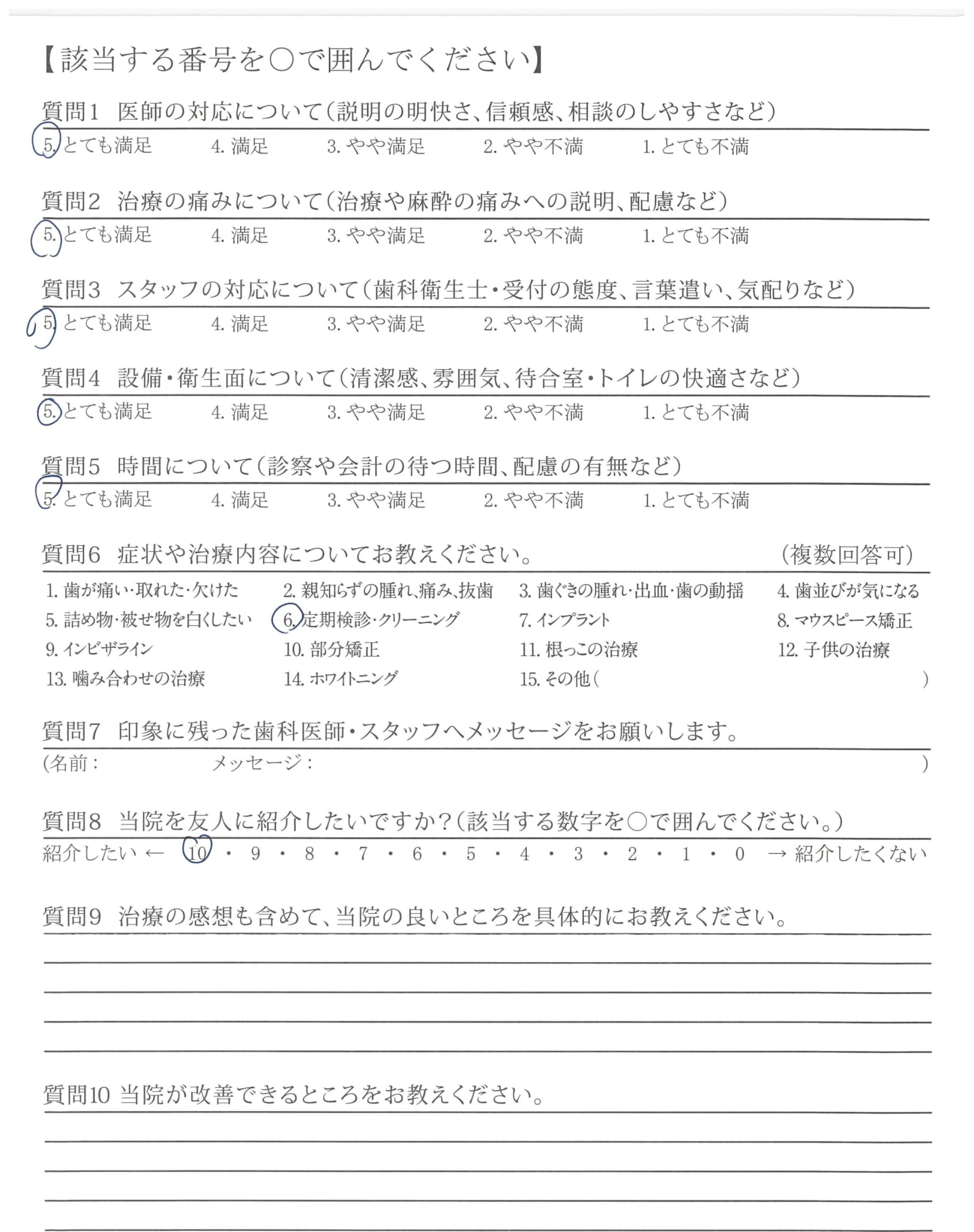 当サイトに掲載しているアンケートは、第三者機関である日本歯科医療評価機構が医院の協力を得て直接患者さんへ調査を行ったもので、医院では操作のできない客観的な評価です。毎週患者さんから届くアンケート結果を集計し、このページを更新しています。