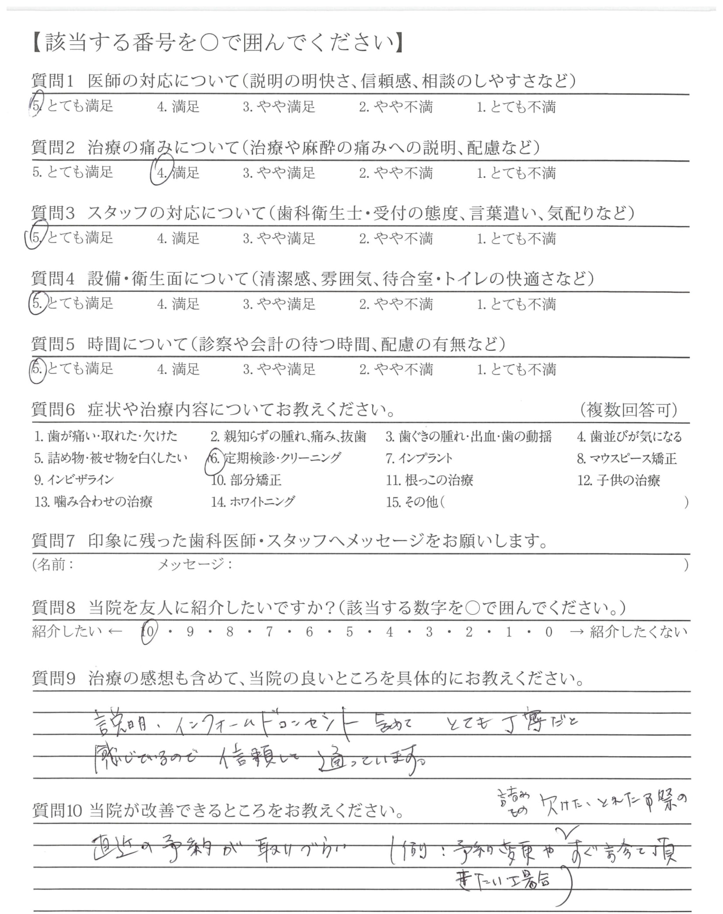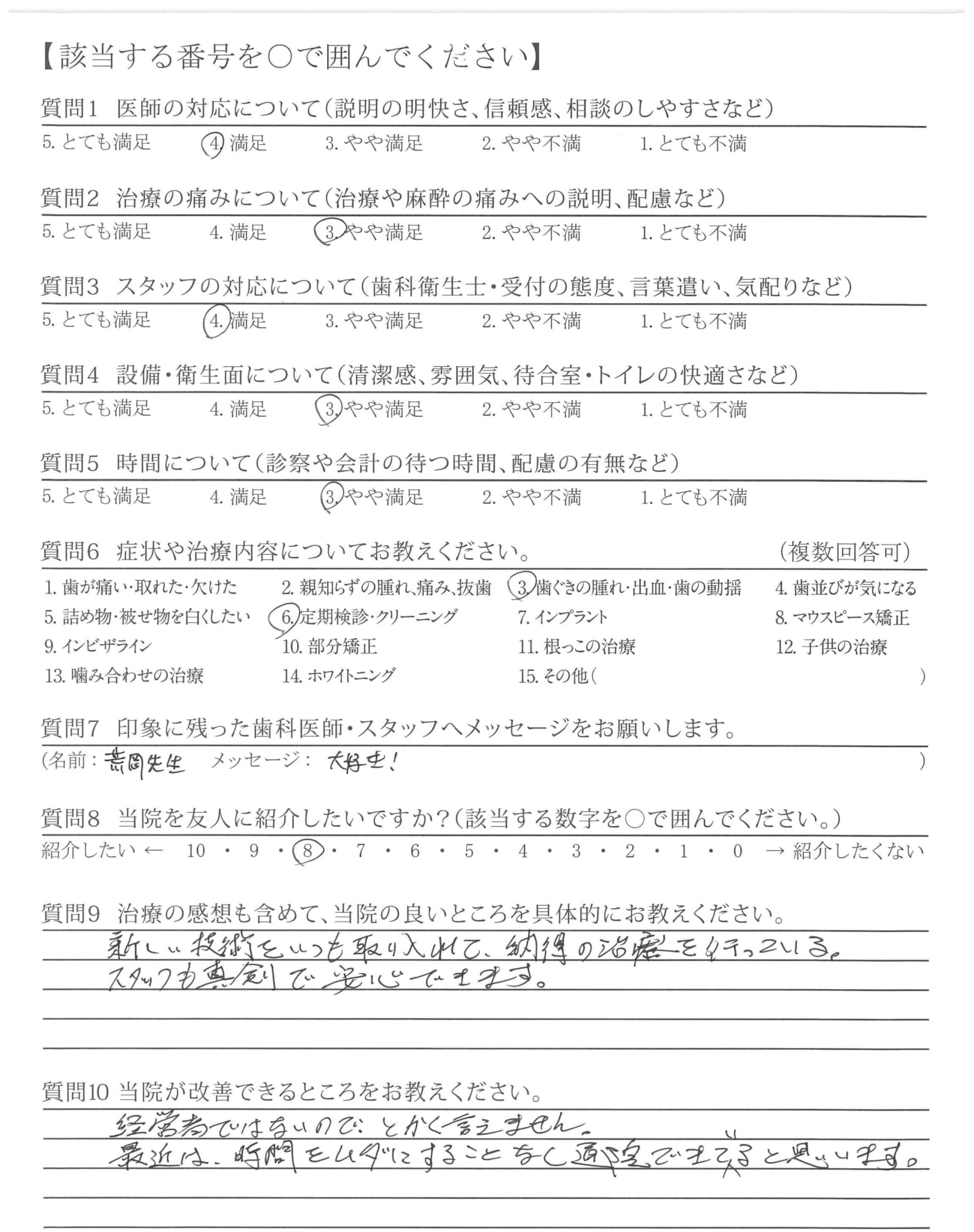 仕上がりに大変満足していて、治療して頂けて良かったと思う。