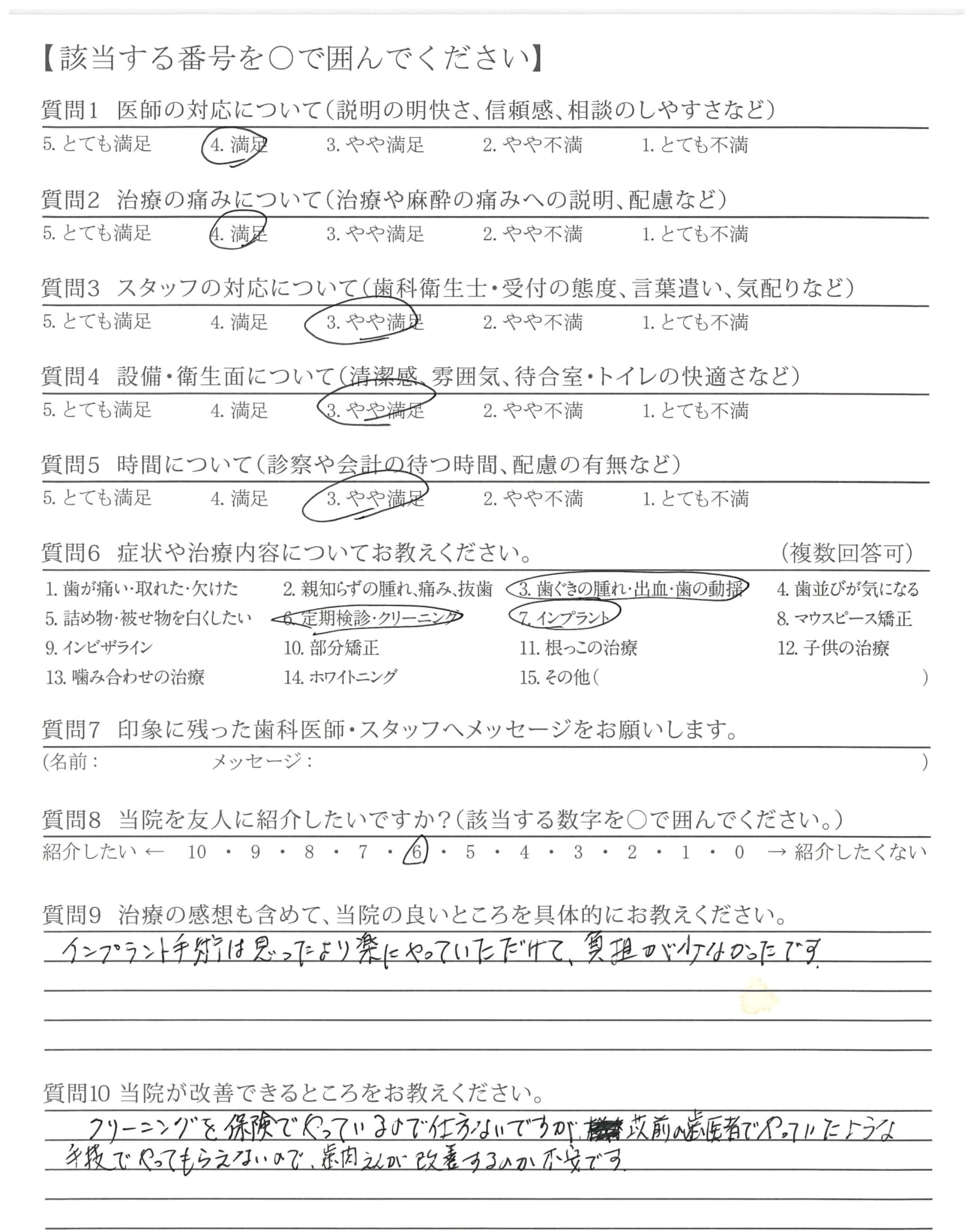 インプラント手術は思ったより楽にやっていただけて、負担が少なかったです。