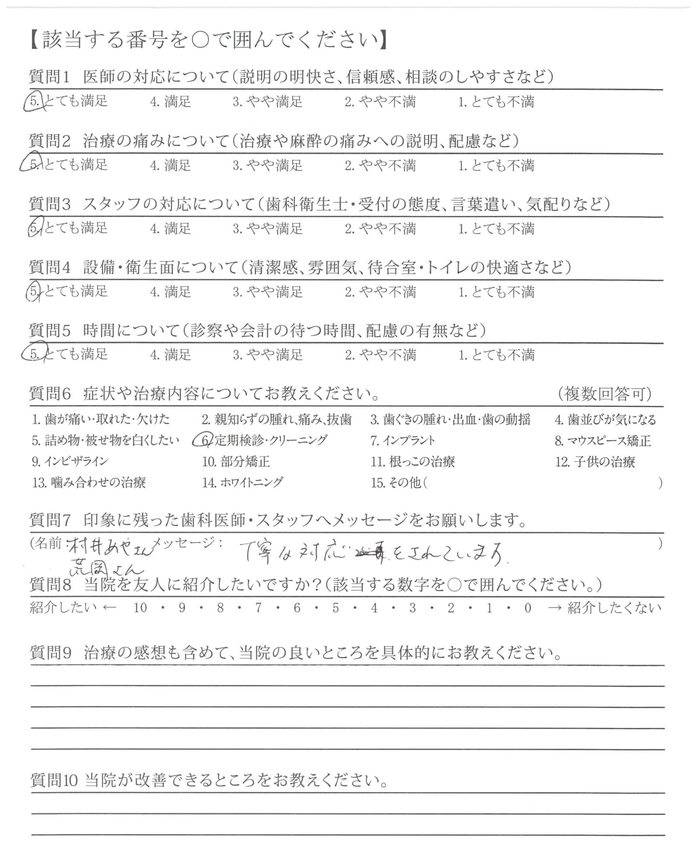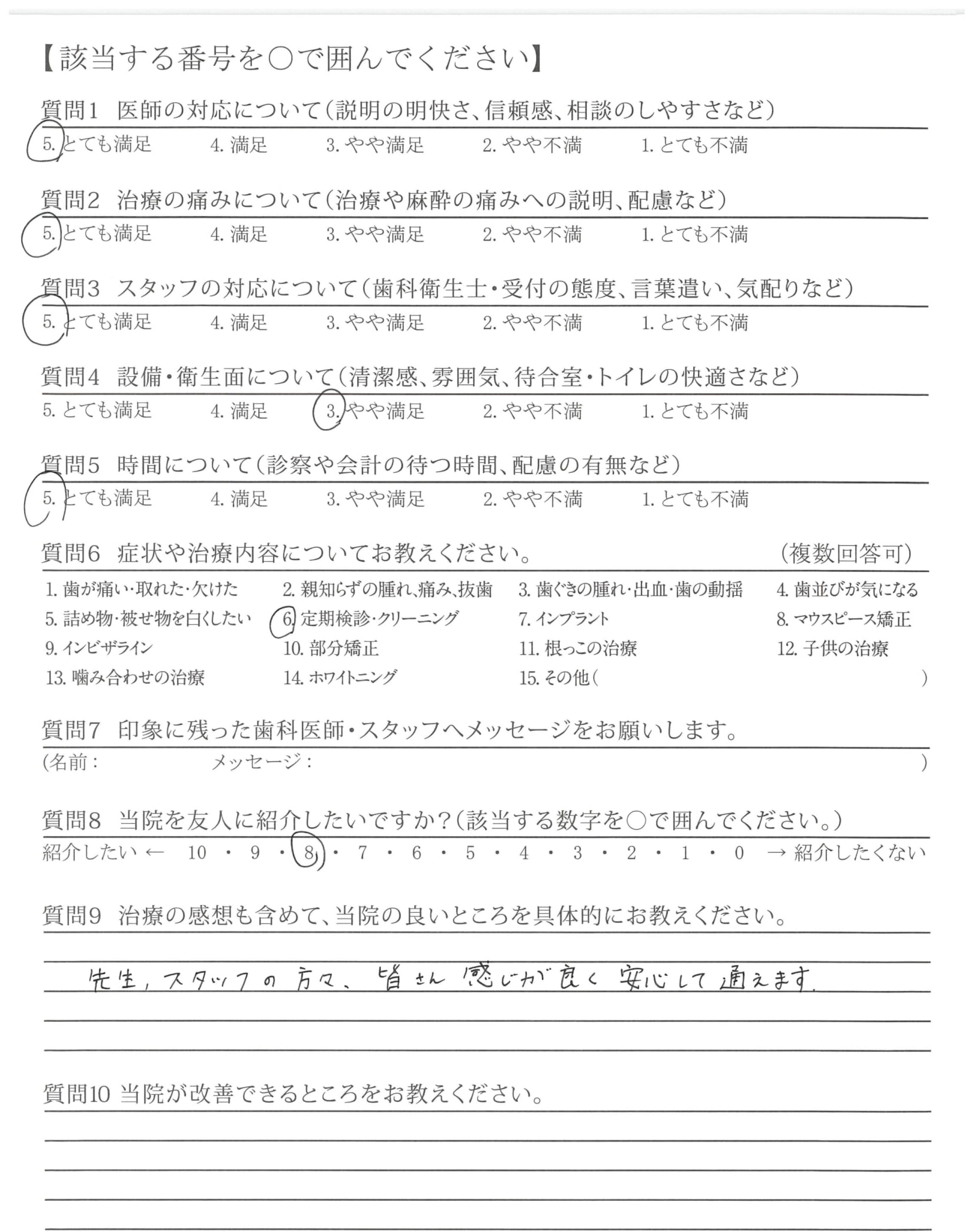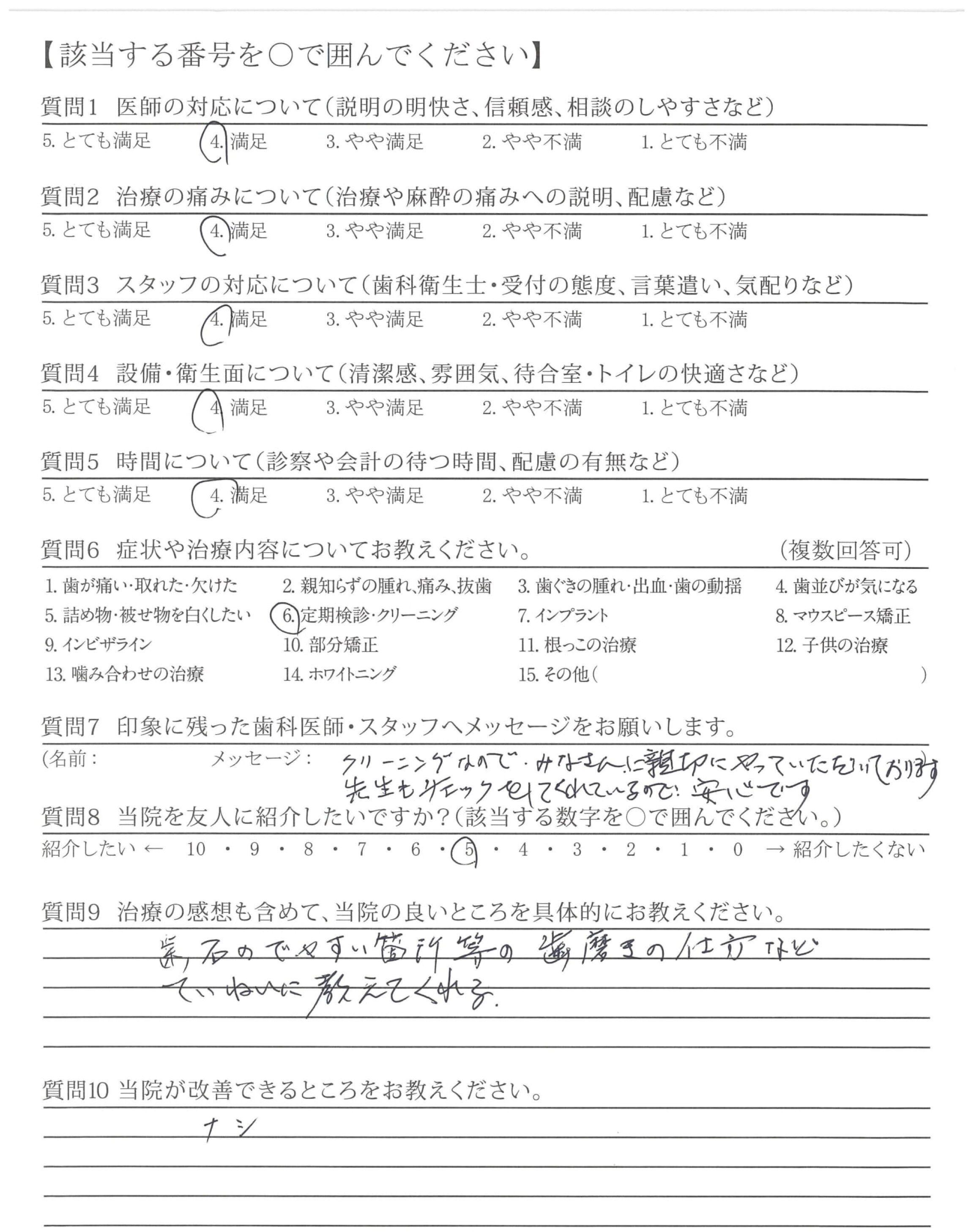 クリーニングなので、みなさんに親切にやっていただいております。先生もチェックをしてくれているので、安心です