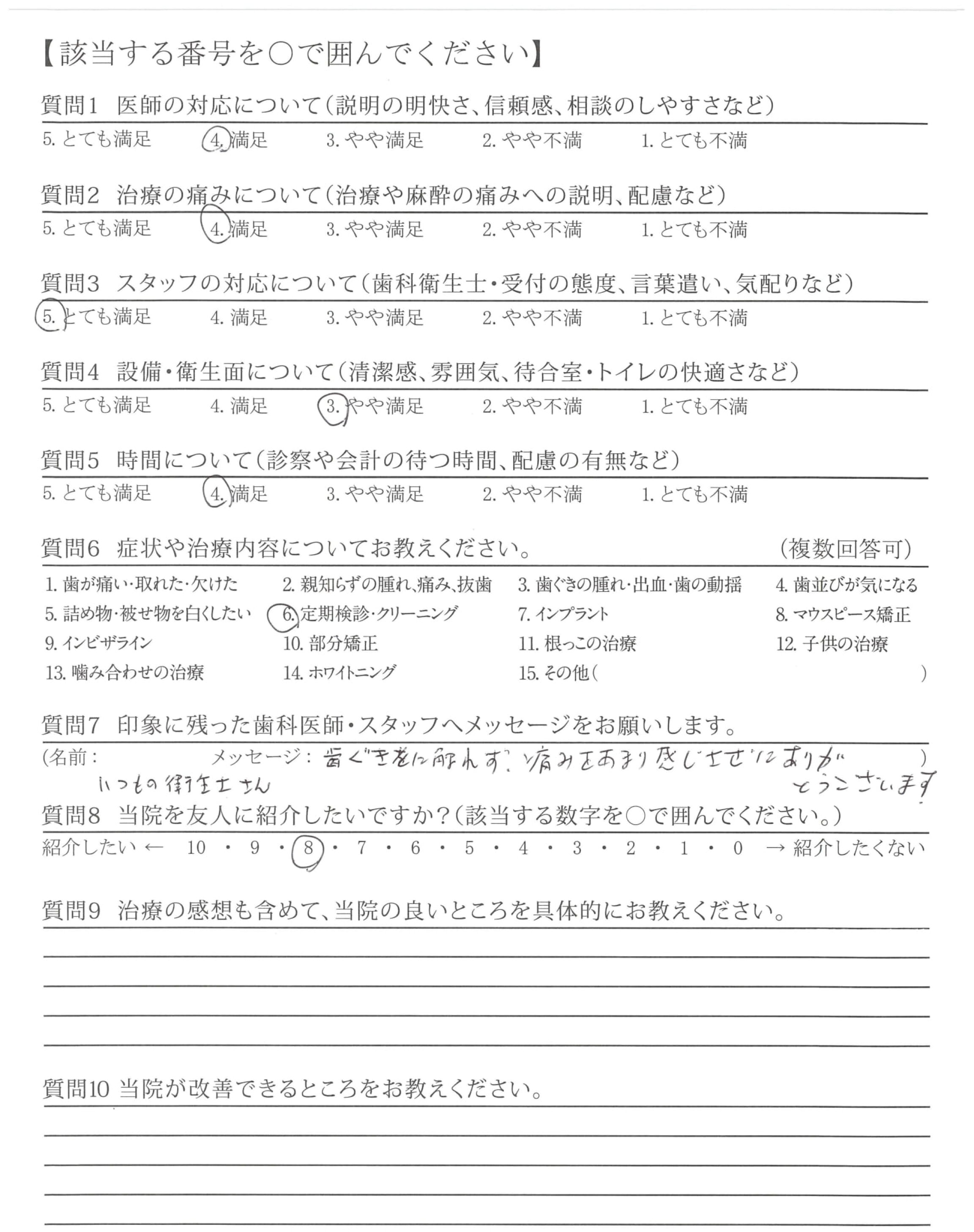 痛みを気にかけながら、怖いという気持ちに寄り添いながら治療して下さいました。
