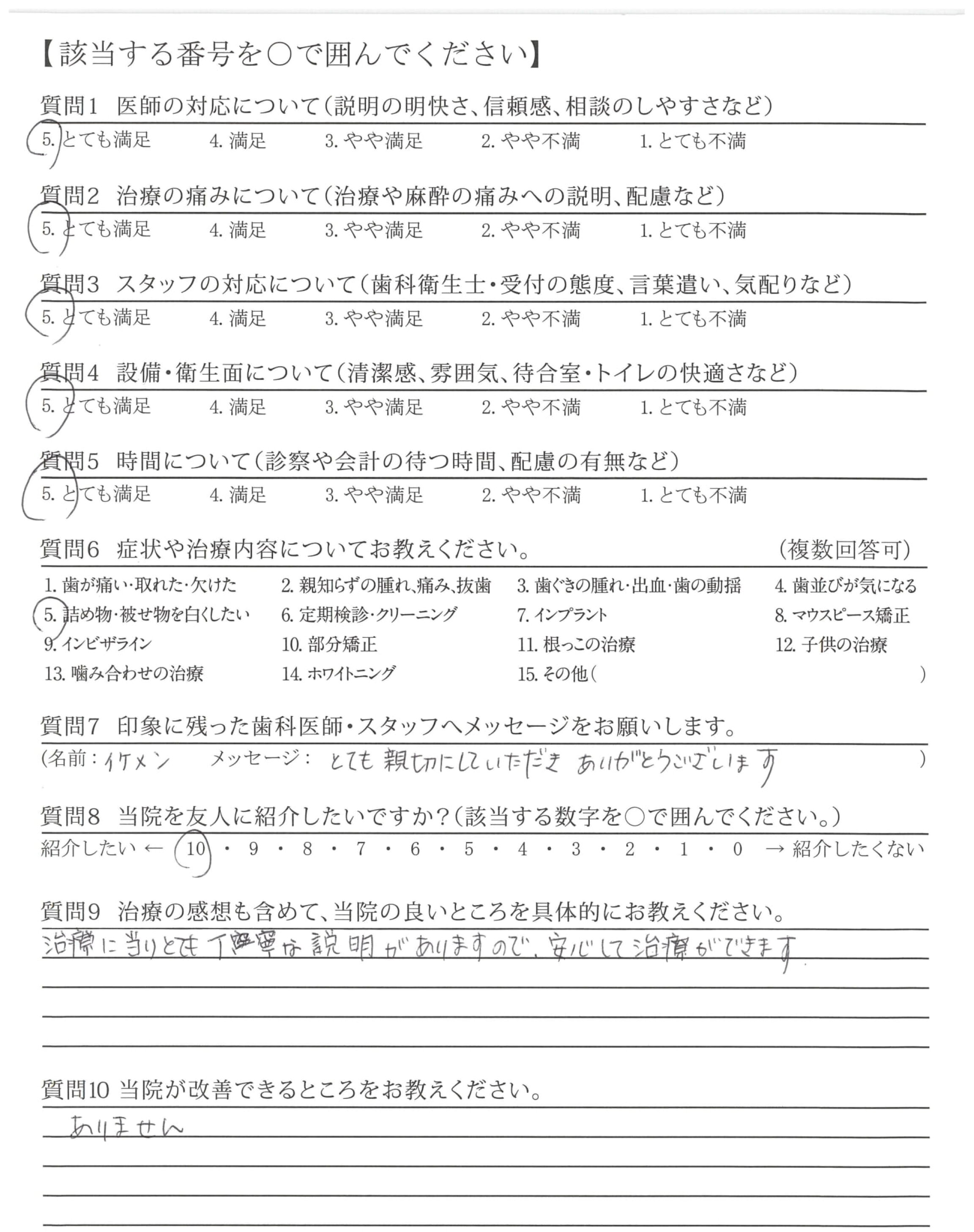 半年間、お世話になりありがとうございました。大大大満足です。引き続き、紹介した方の治療もよろしくお願いします。