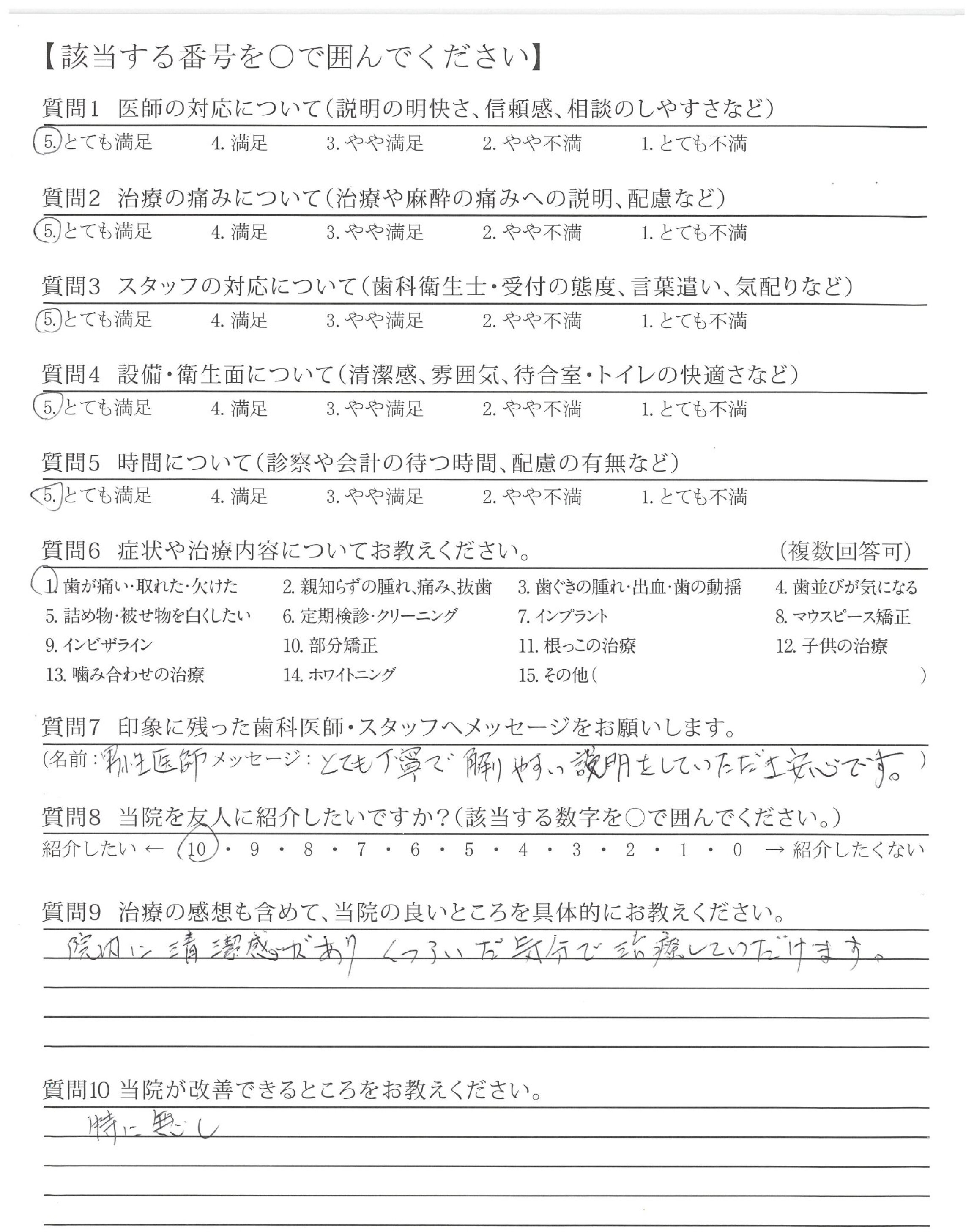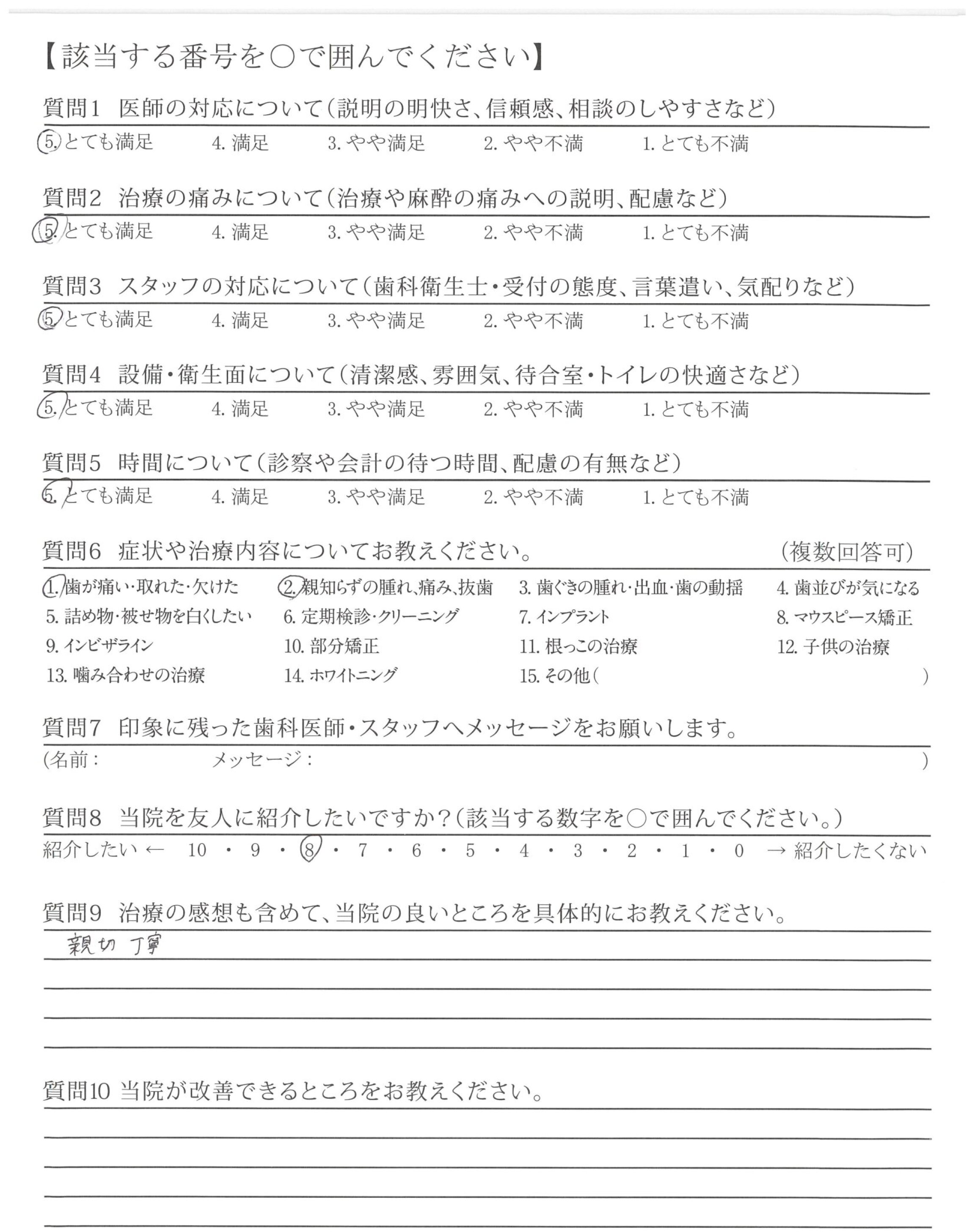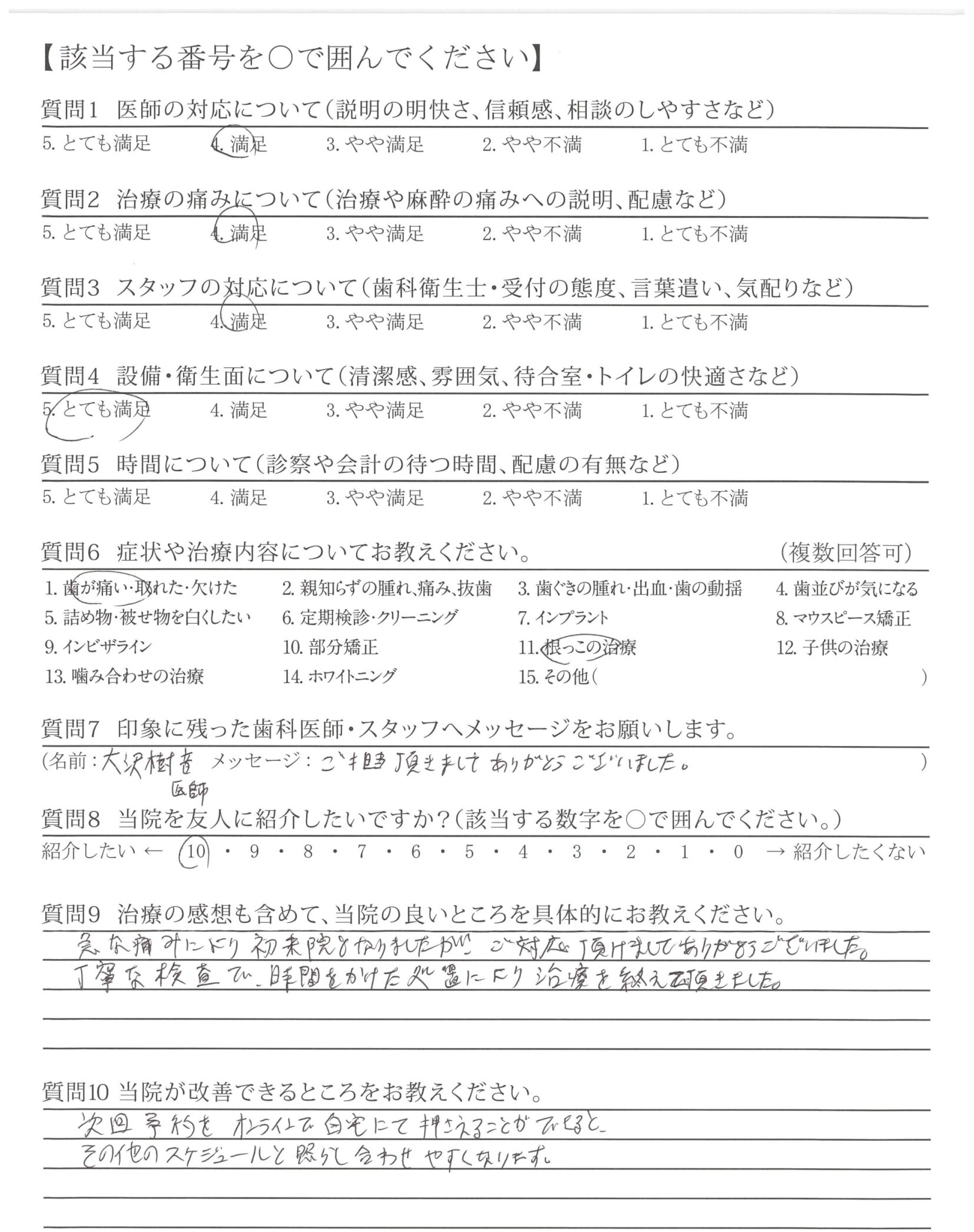 「歯科疾患管理に係る管理計画書継続用」によって口腔内の状況が確認でき、これからの治療を確認でき安心しました。