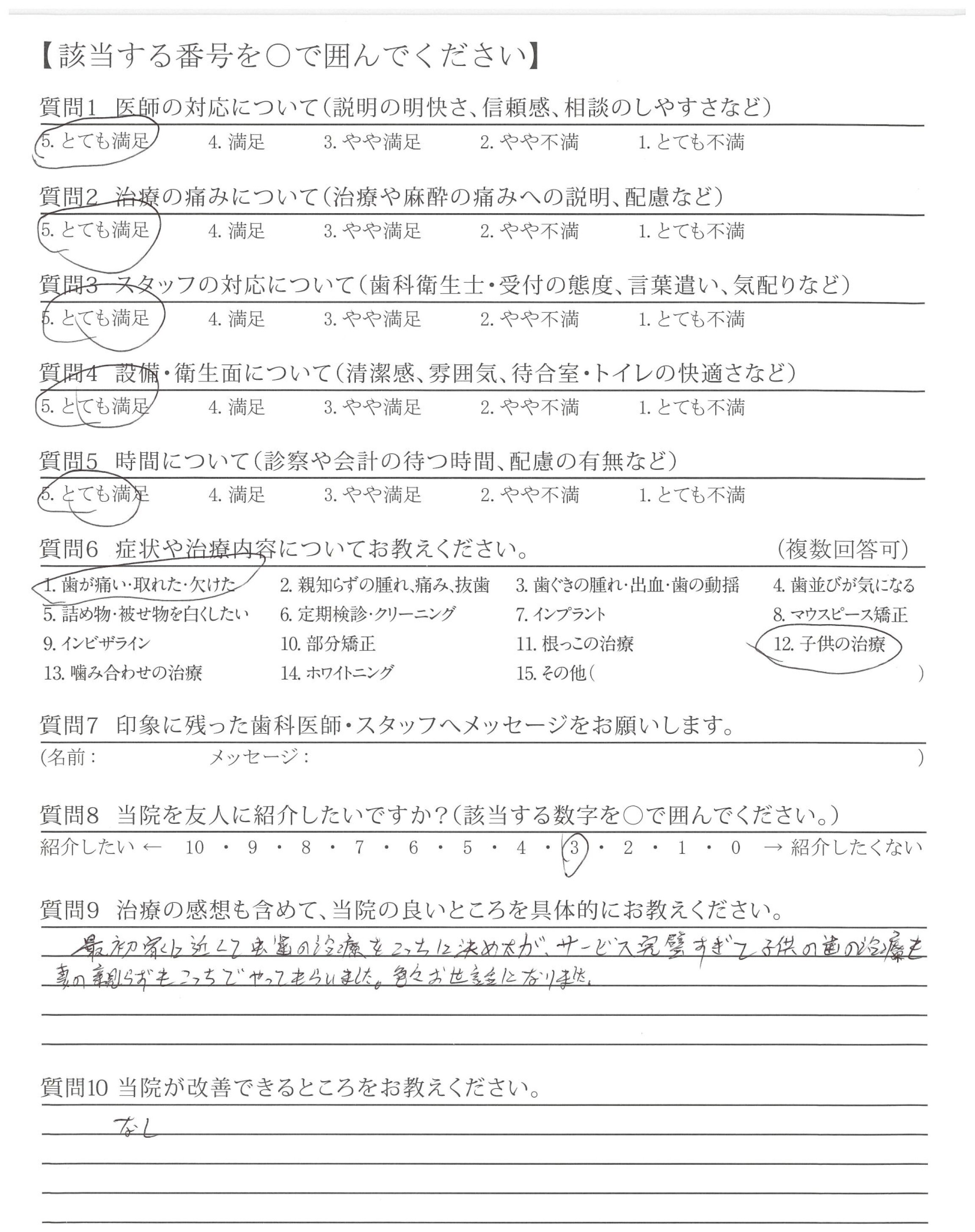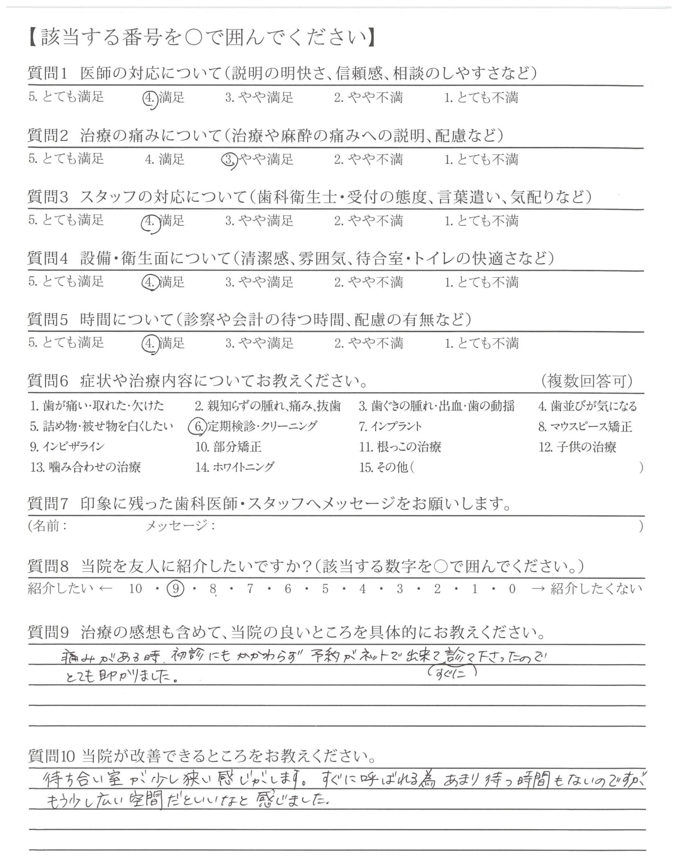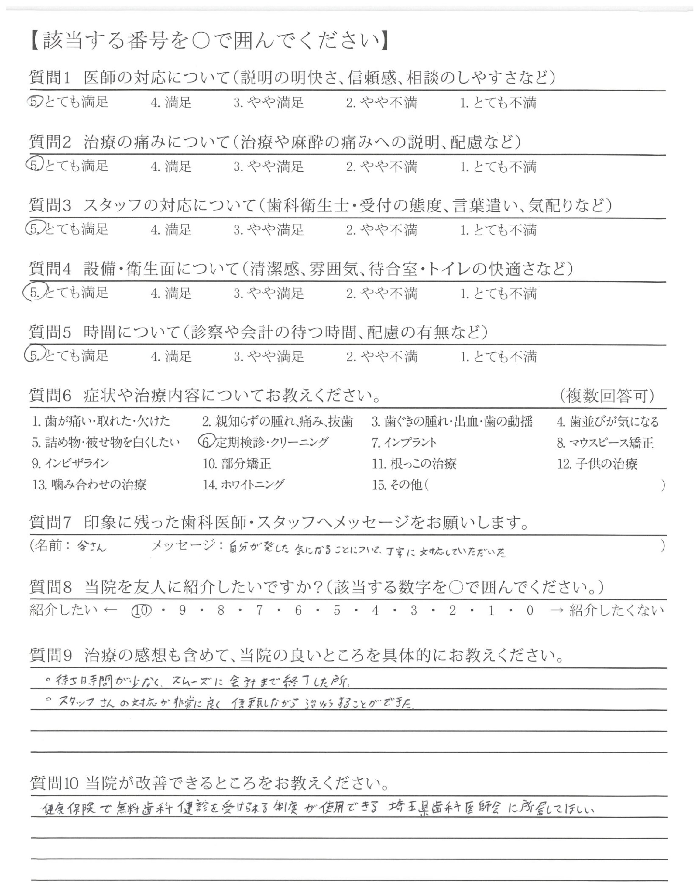 「歯科疾患管理に係る管理計画書継続用」によって口腔内の状況が確認でき、これからの治療を確認でき安心しました。
