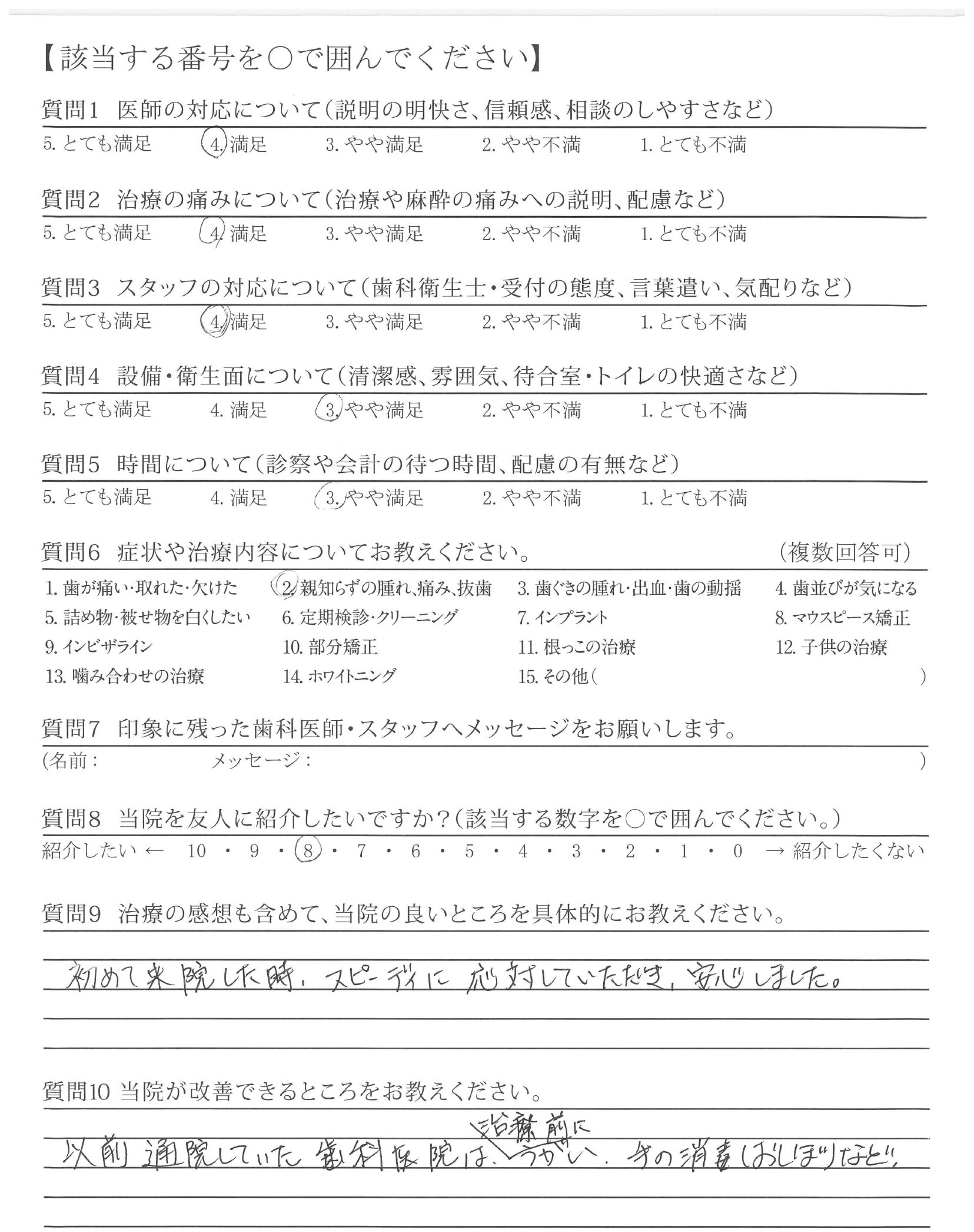 麻酔も今まで他院でした時よりも痛みが少なくて良かったです