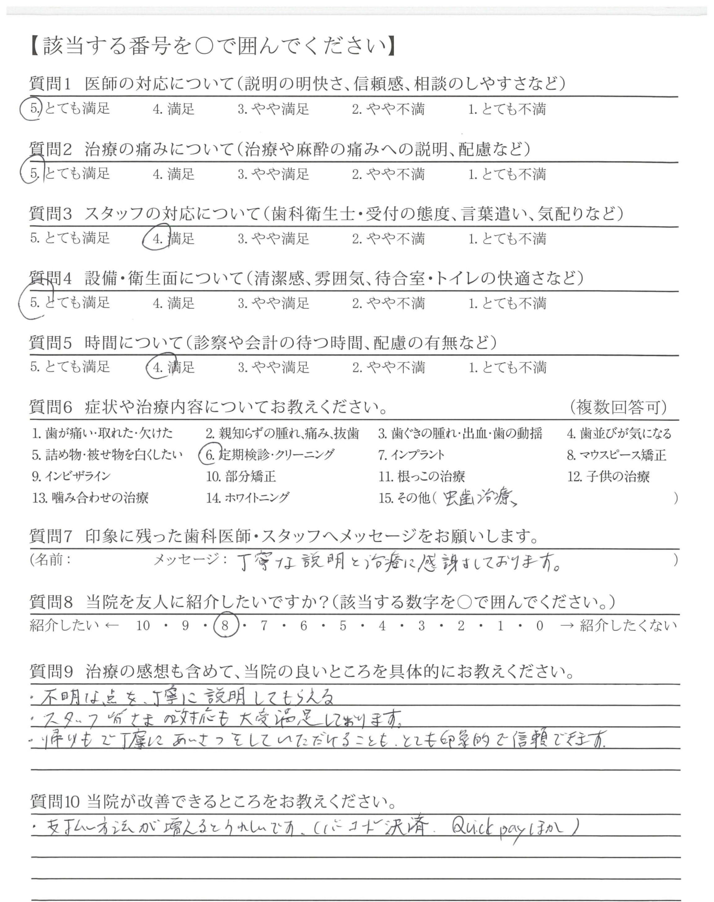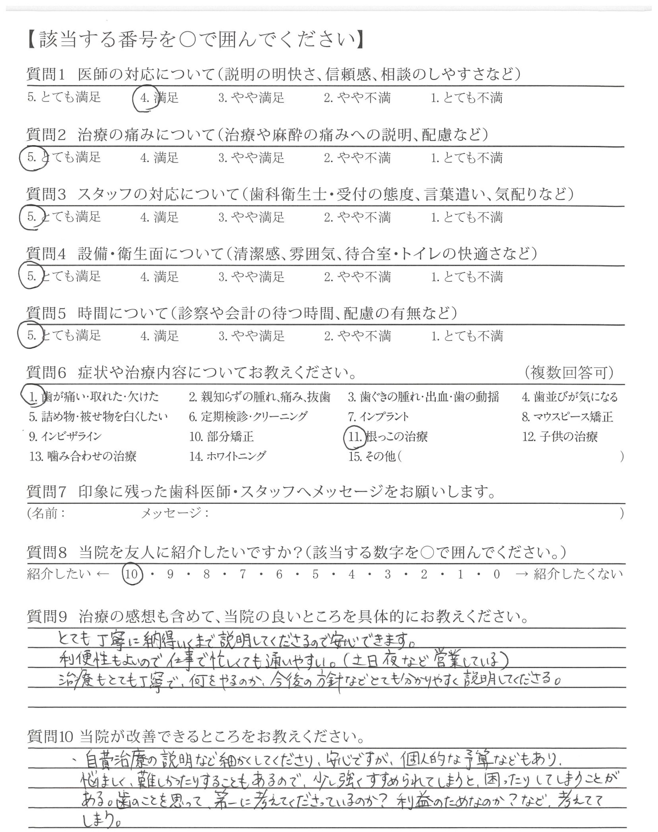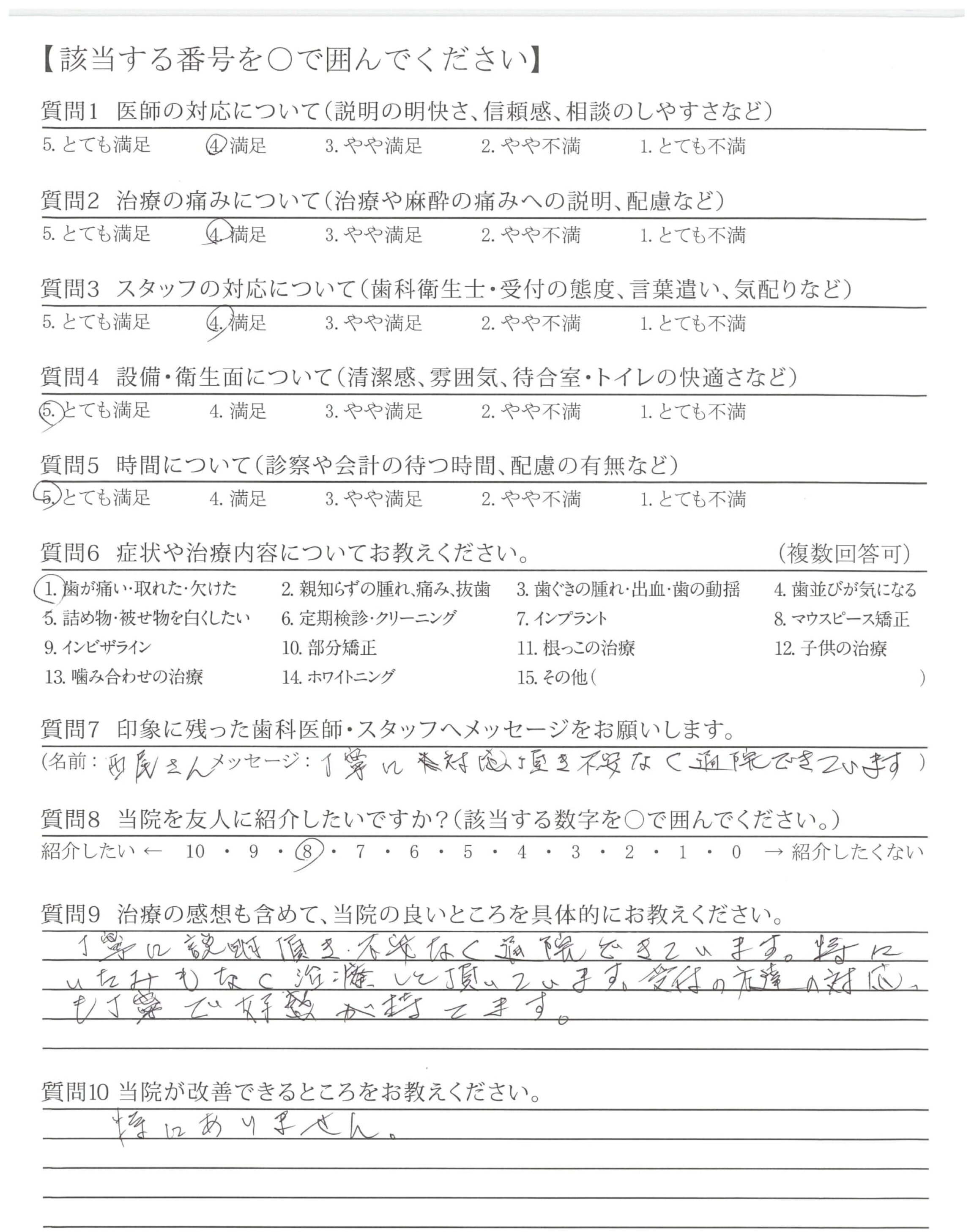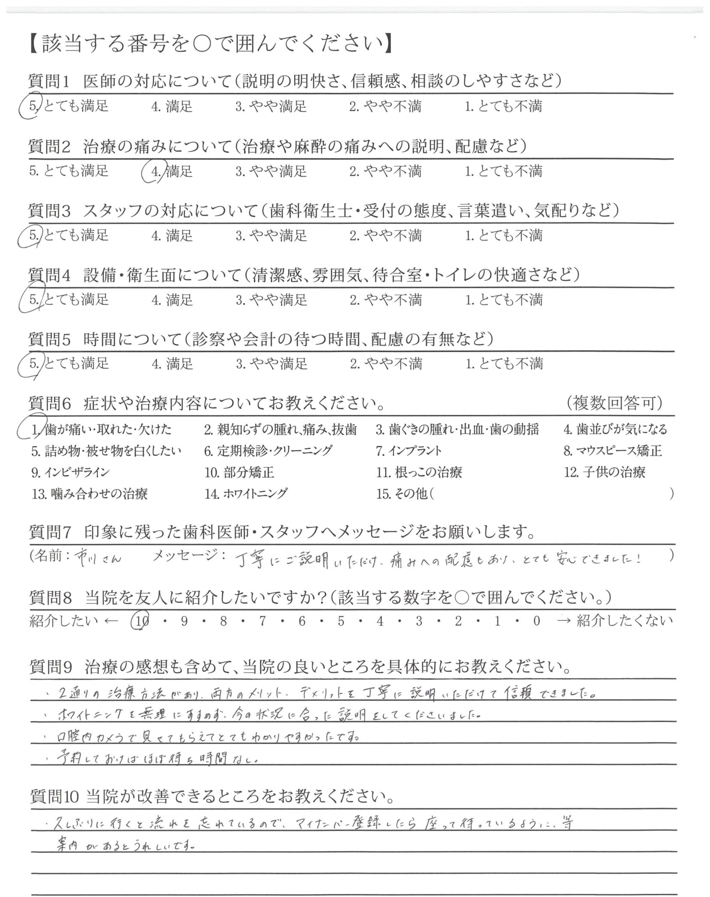 質問にていねいに答えてくださり、治療も痛み等に配慮してくださり安心できました。