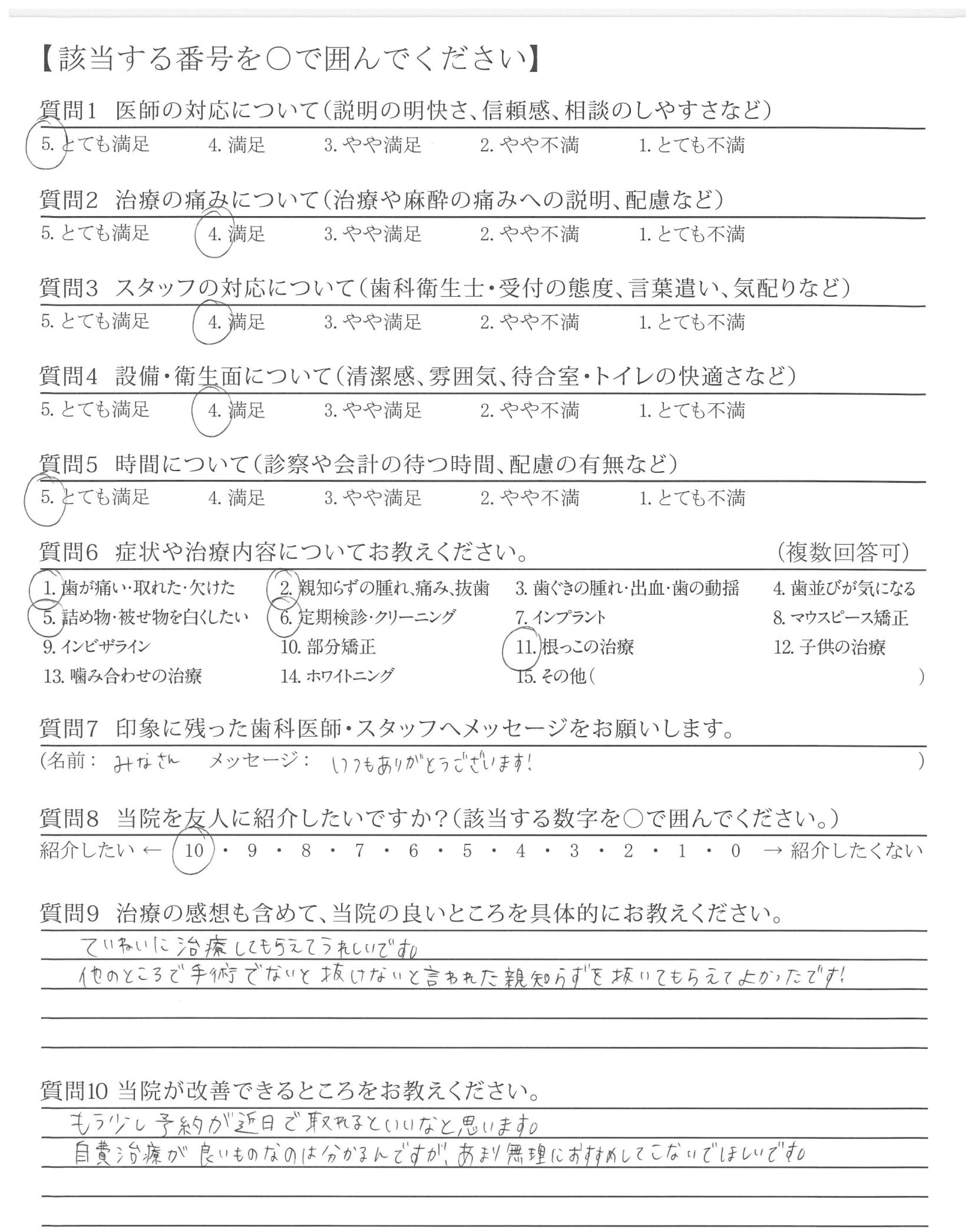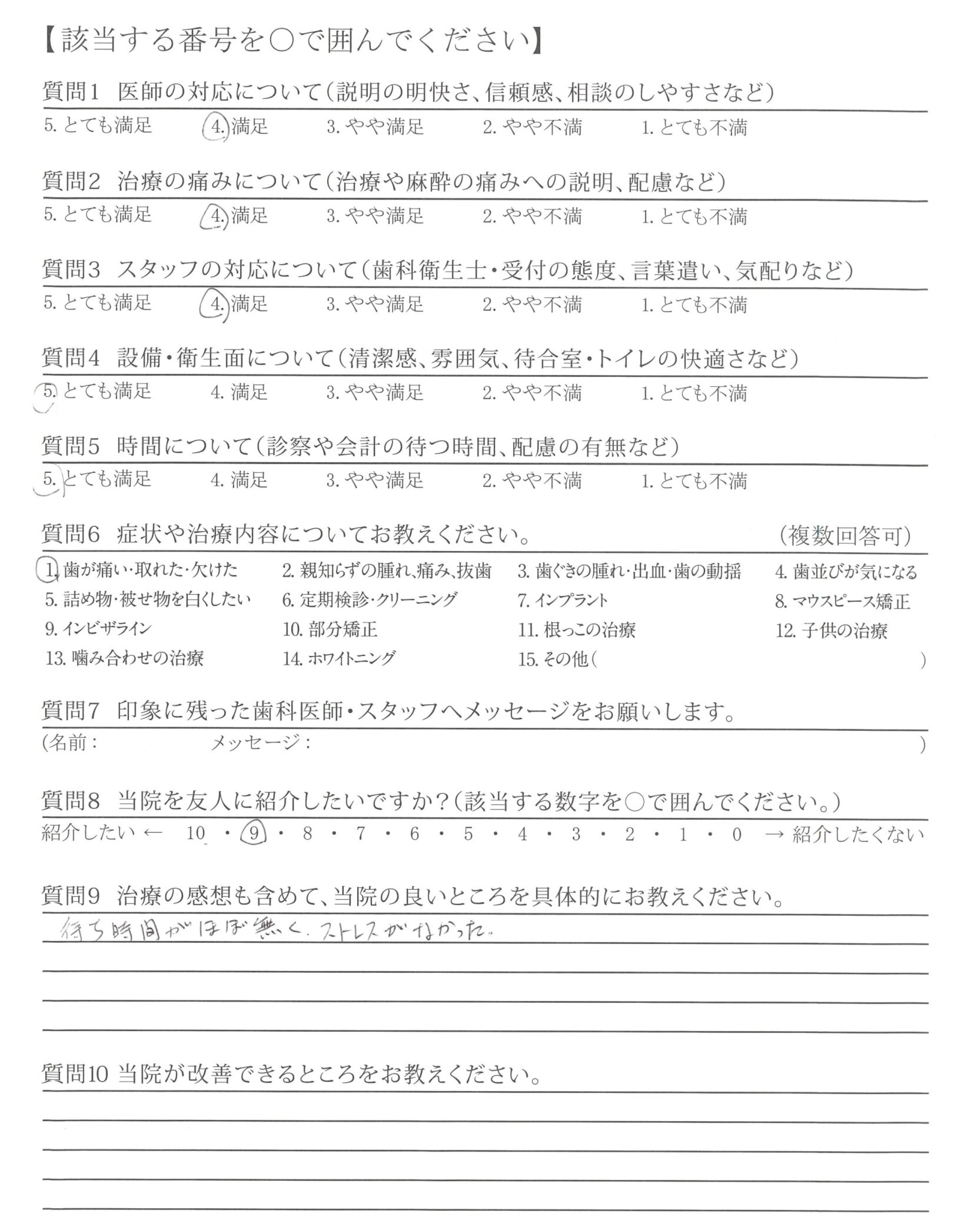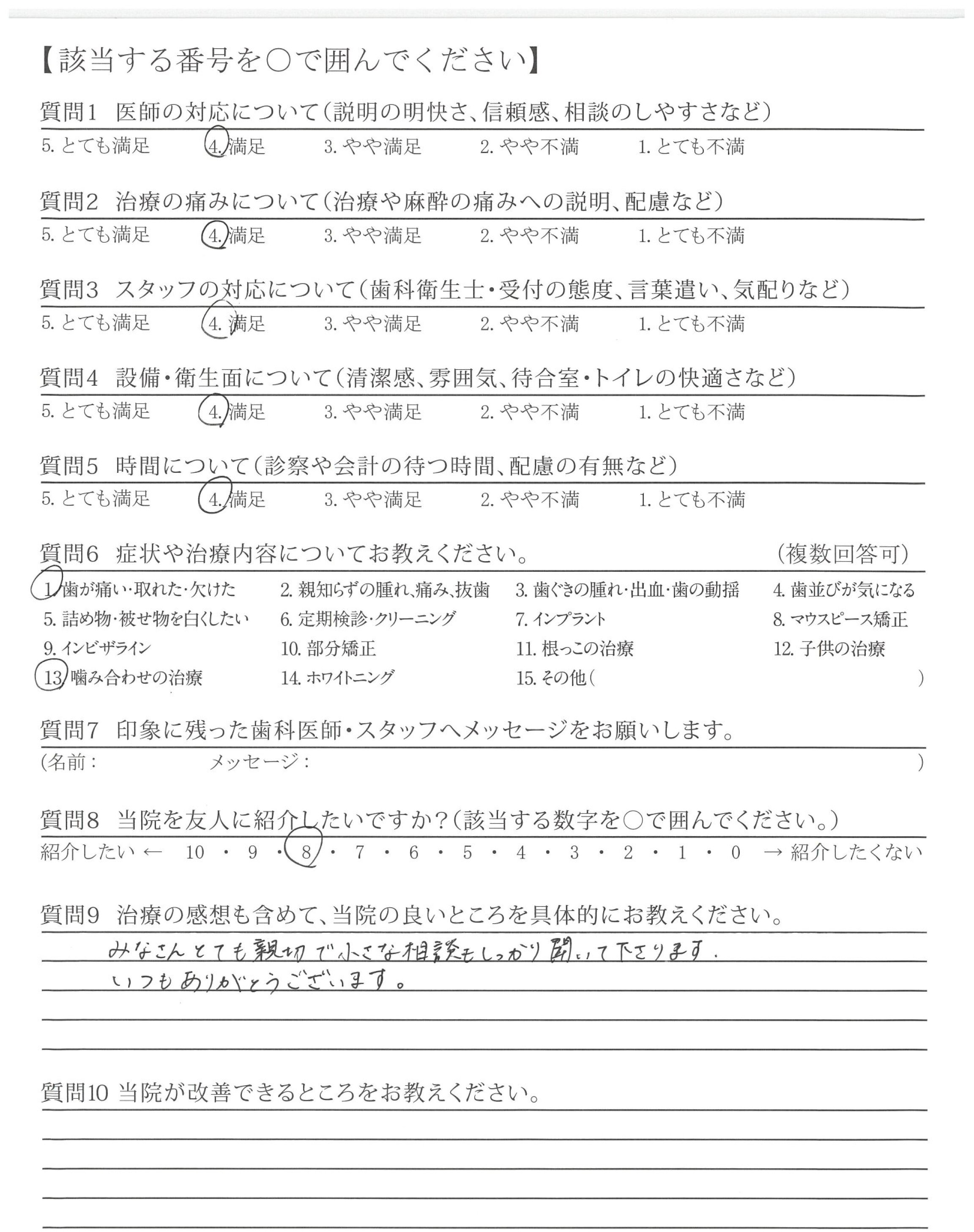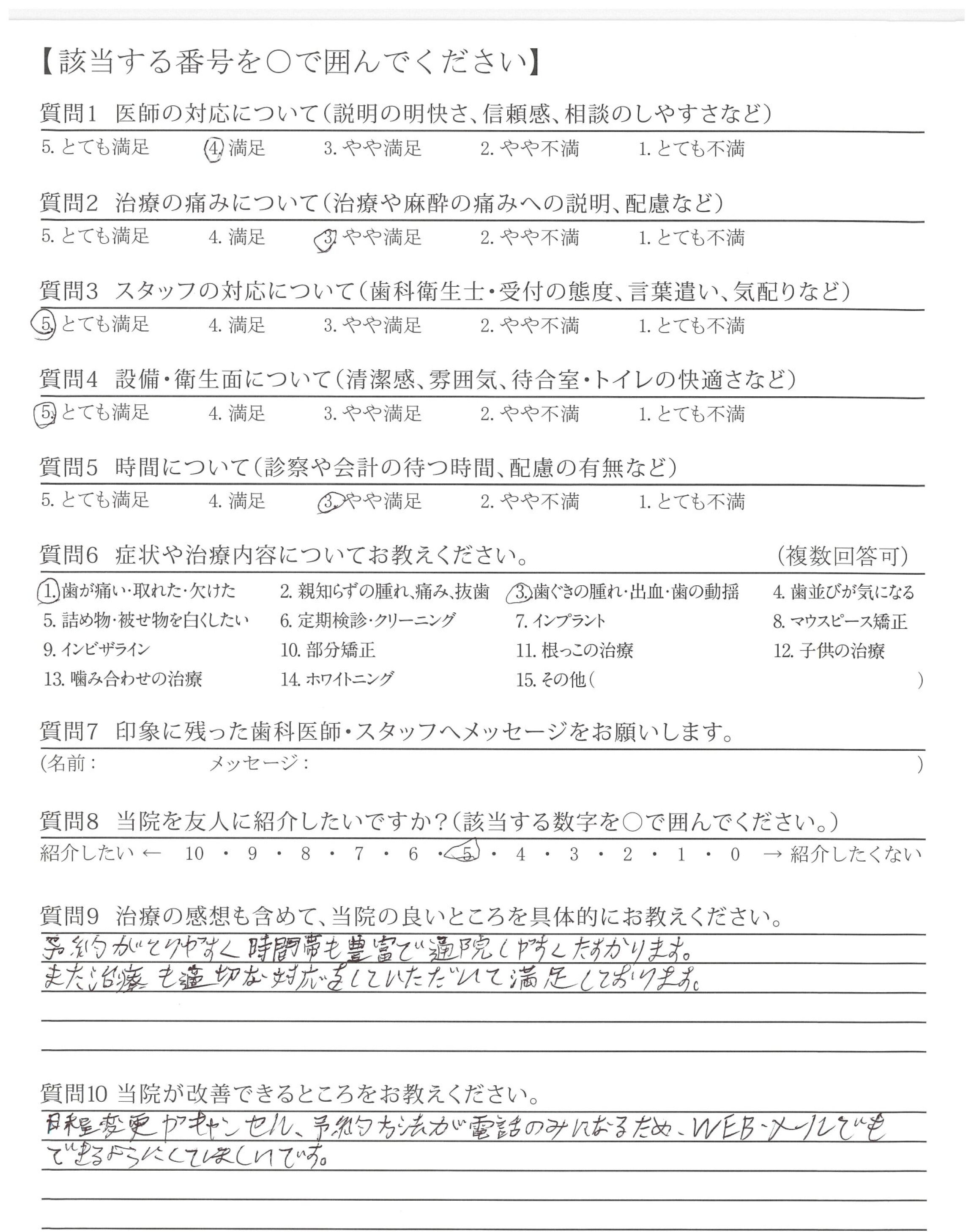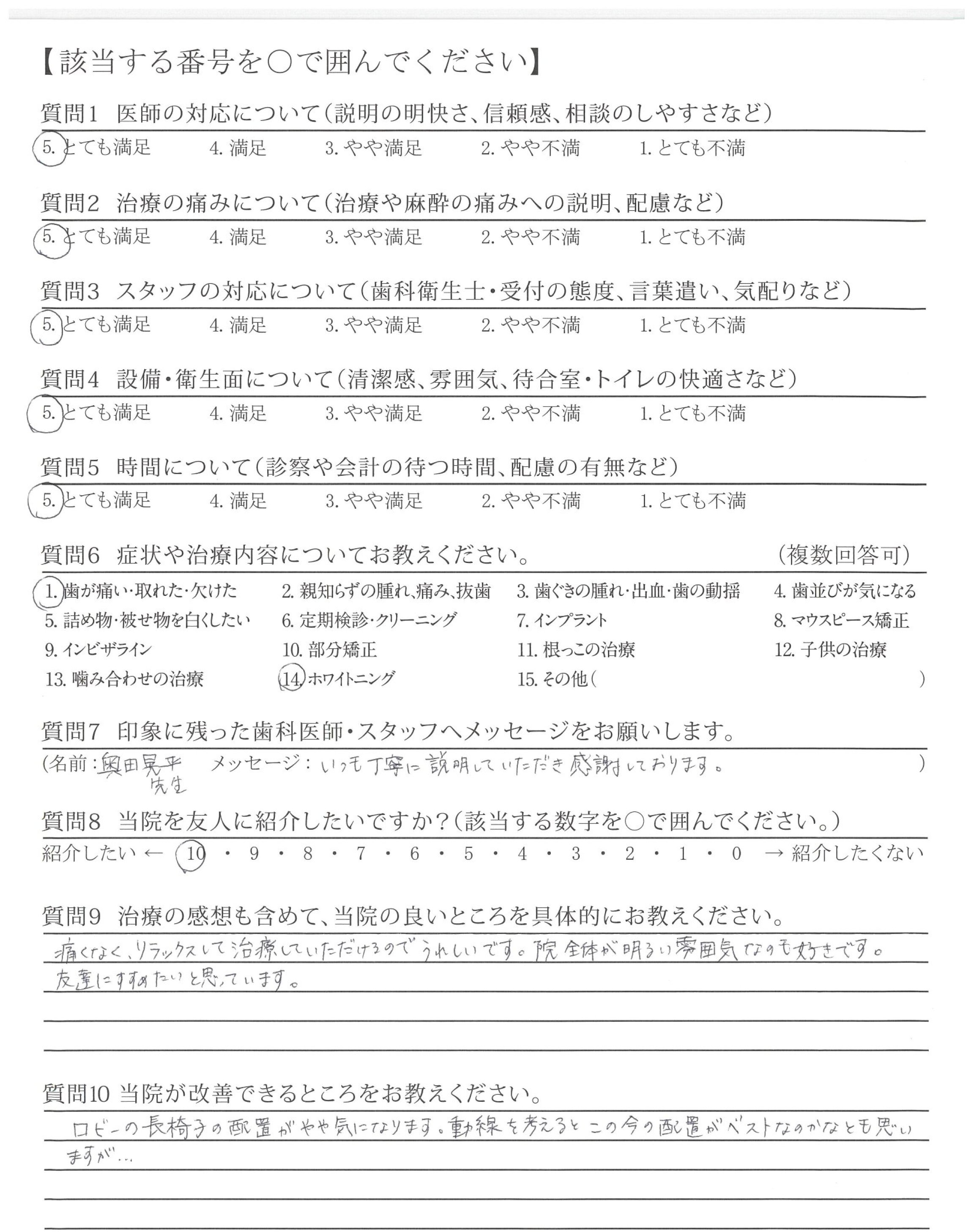 質問にていねいに答えてくださり、治療も痛み等に配慮してくださり安心できました。