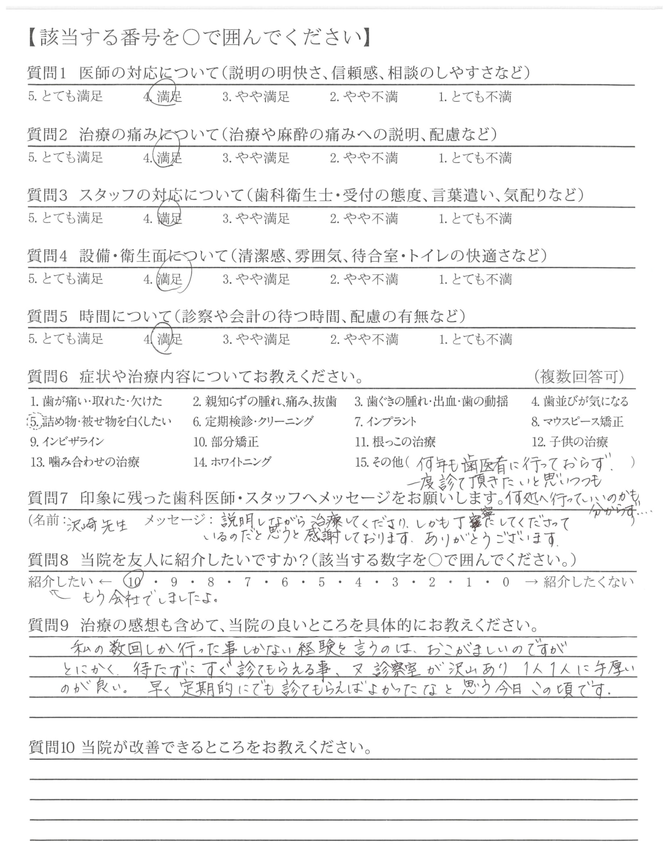 説明しながら治療してくださり、しかも丁寧にしてくださっているのだと思うと感謝しております。ありがとうございます。