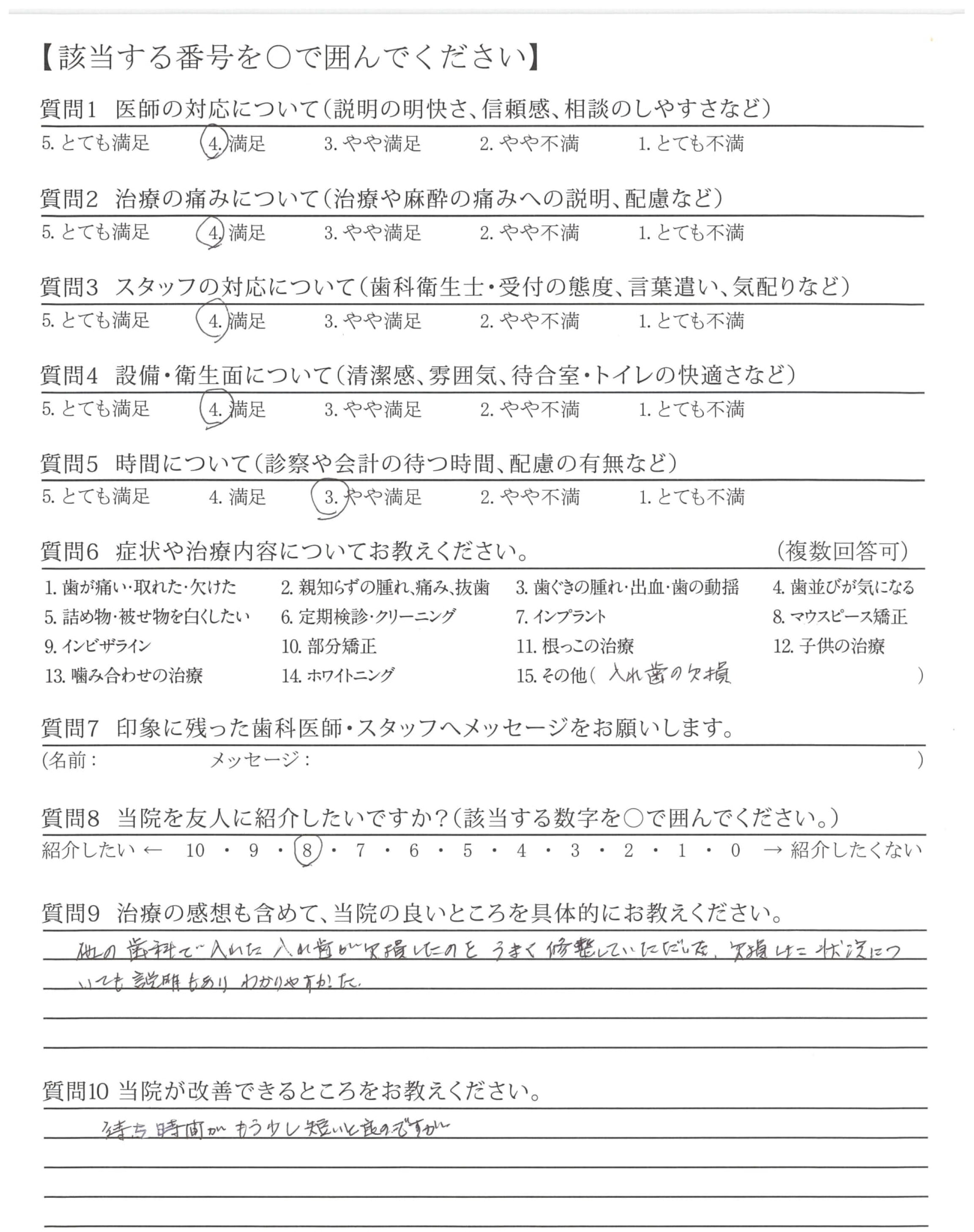 | 歯科医師の対応 | ![]() ![]() ![]() ![]() 4.49 |