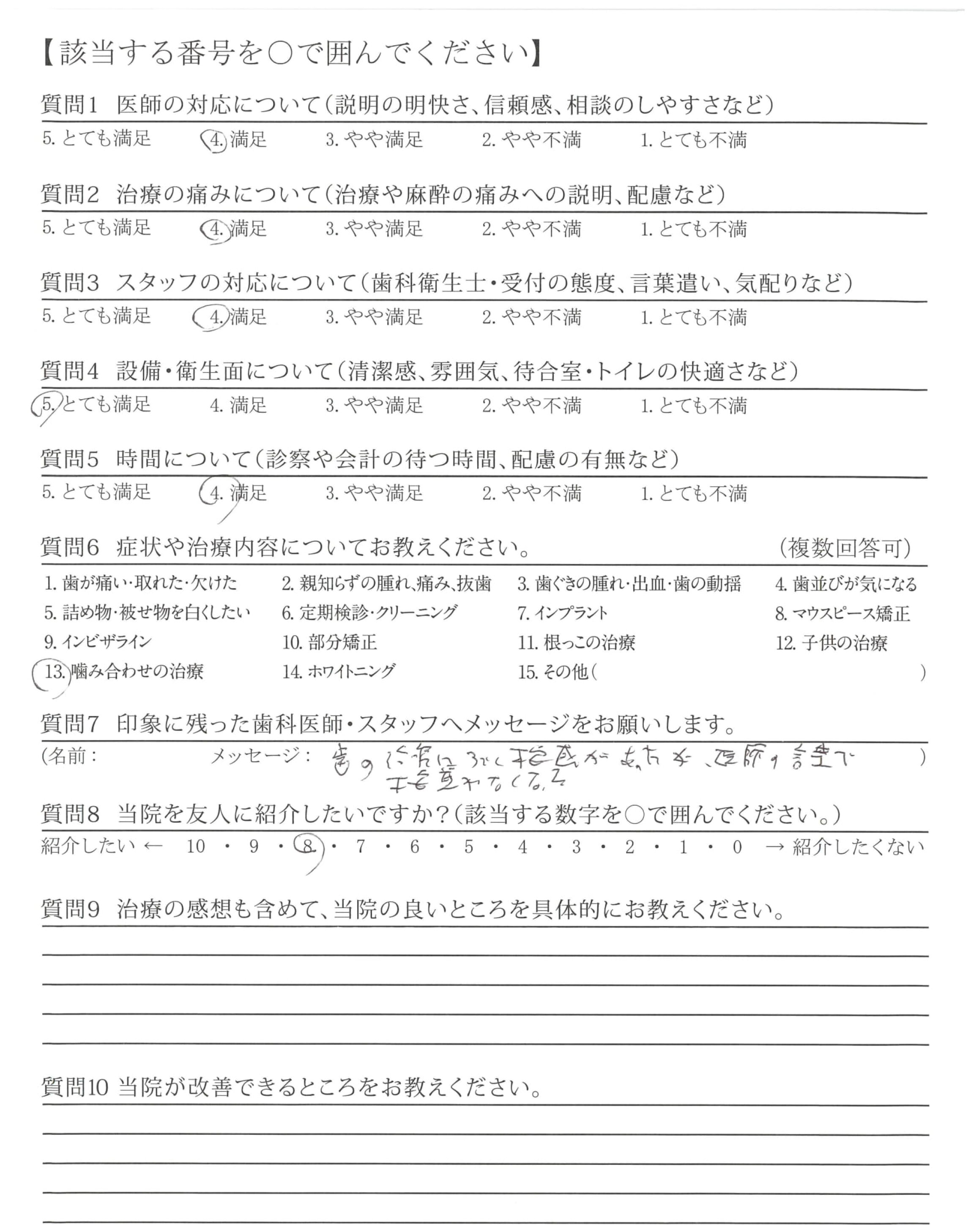 | 歯科医師の対応 | ![]() ![]() ![]() ![]() 4.29 |