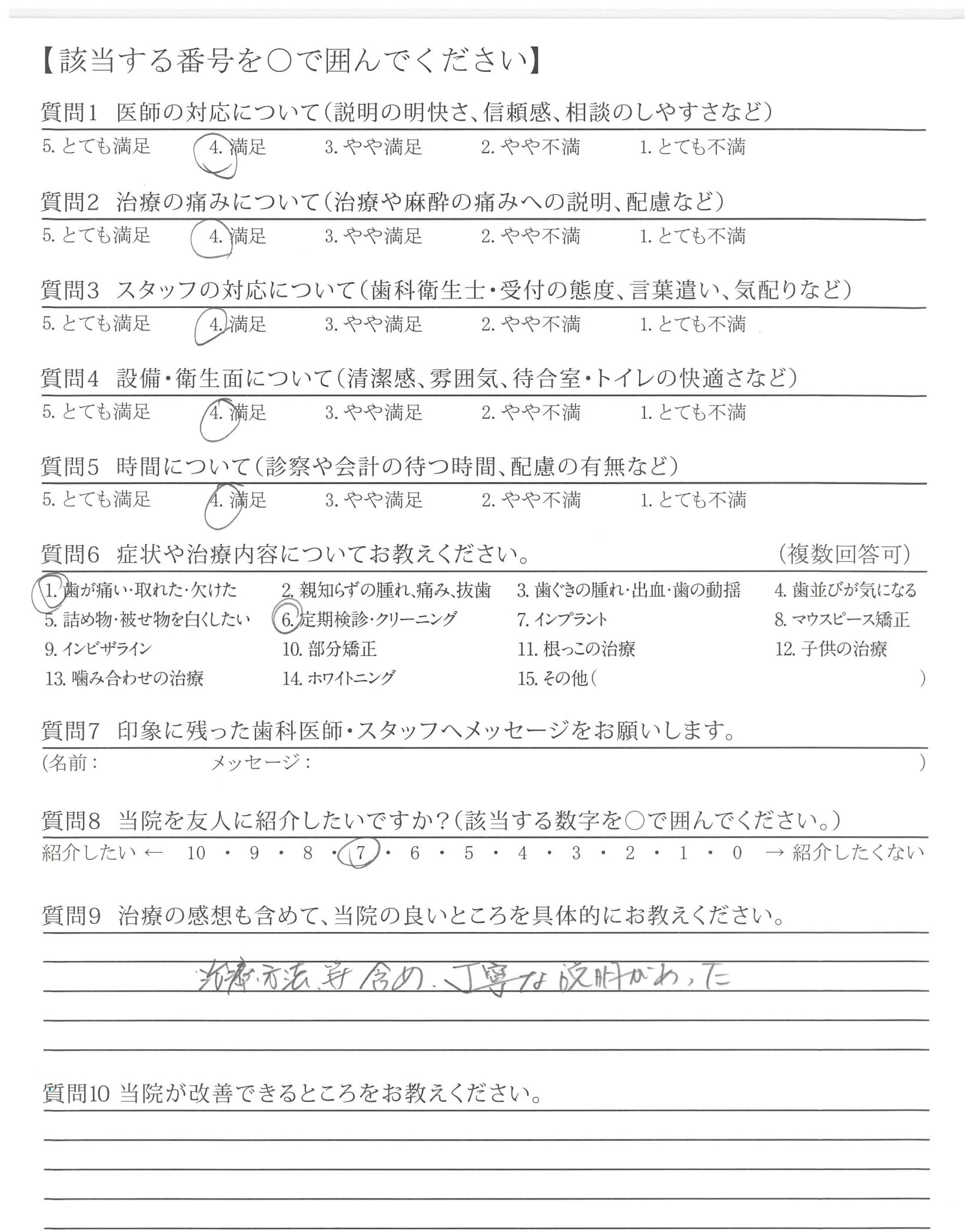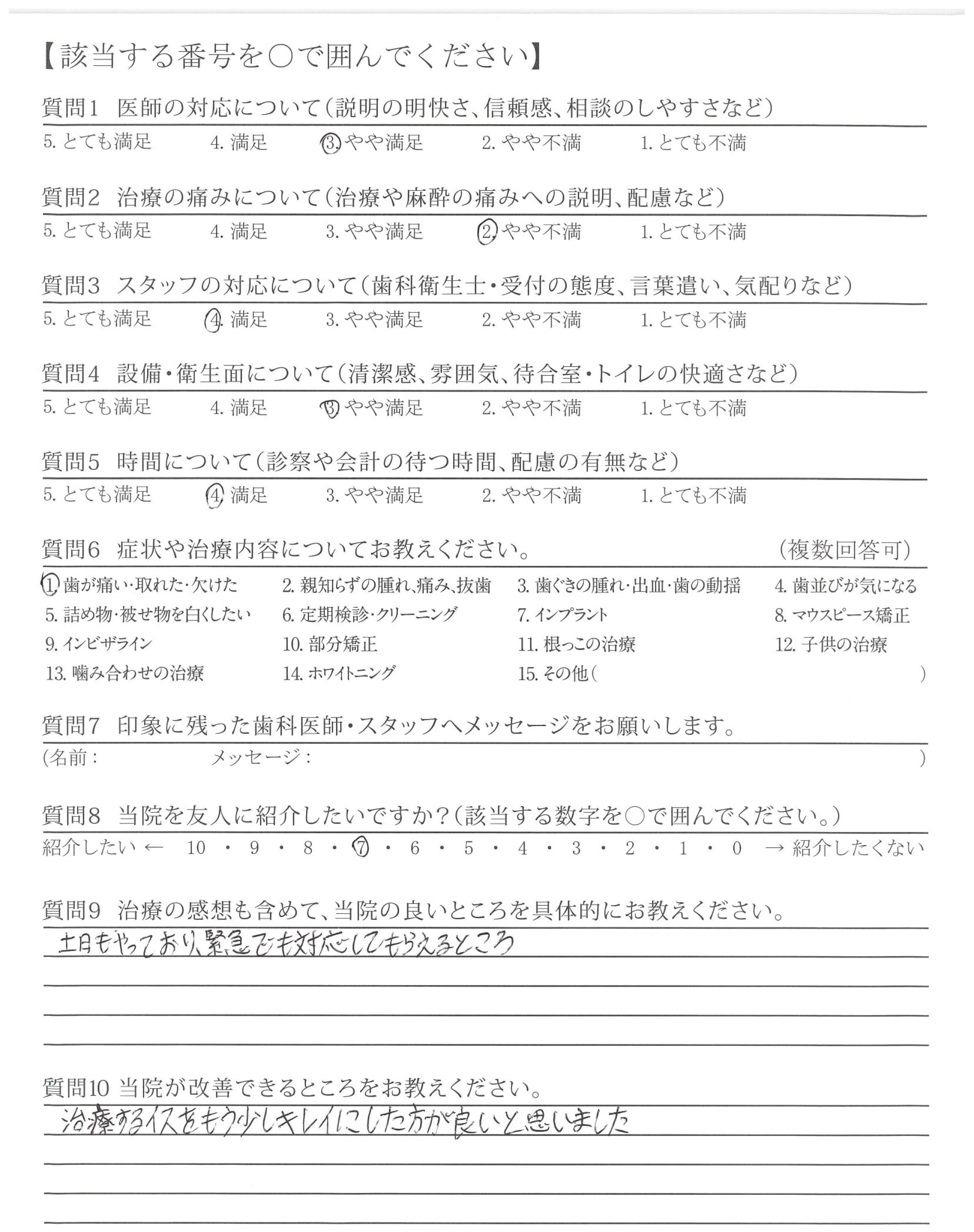 見て下さった先生が若いけれど、手短かに上手に歯の状態と治療のことを話されて納得できた。