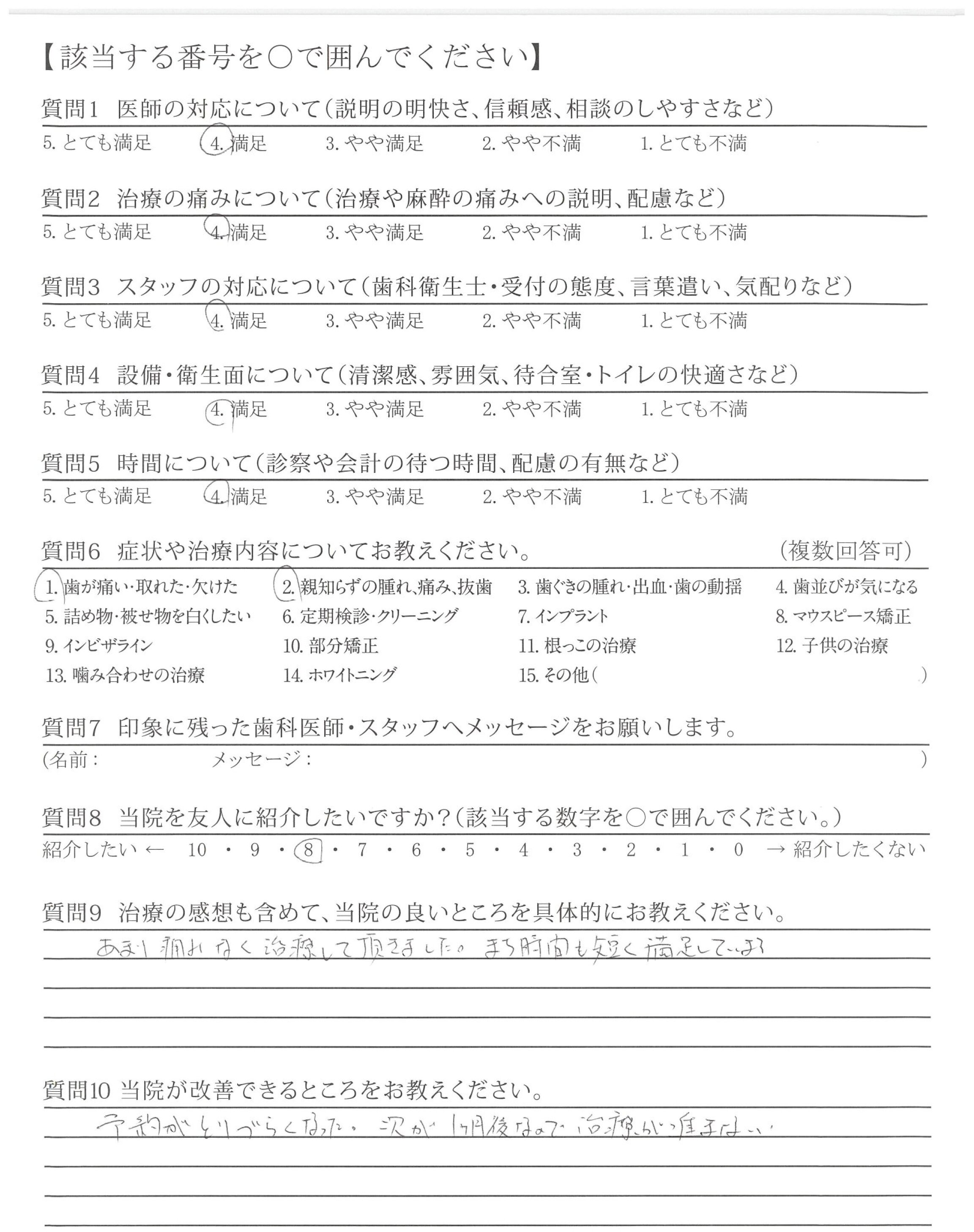 | 治療の痛みへの配慮 | ![]() ![]() ![]() ![]() 4.24 |
