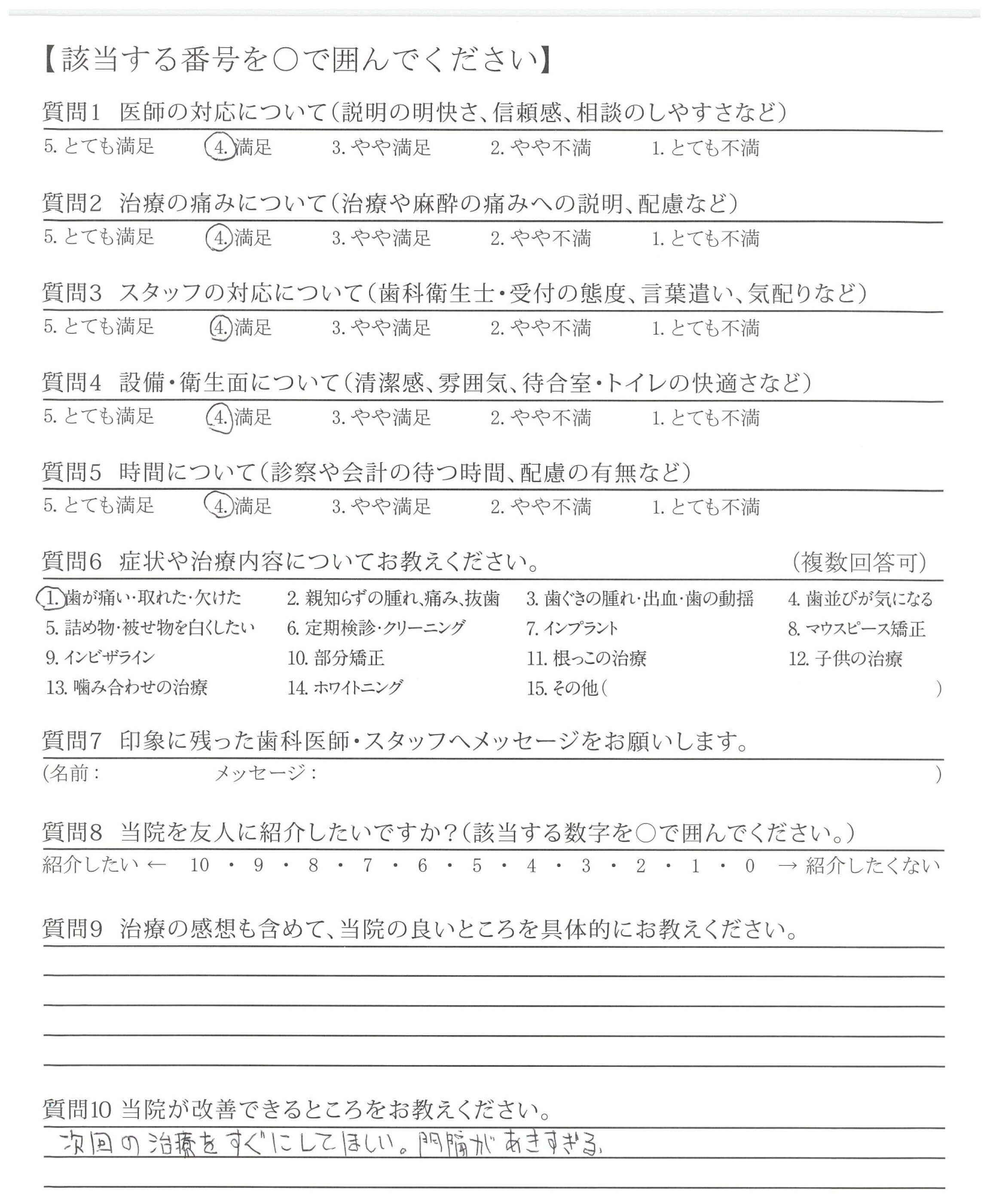 次回の治療をすぐにしてほしい。間隔があきすぎる。