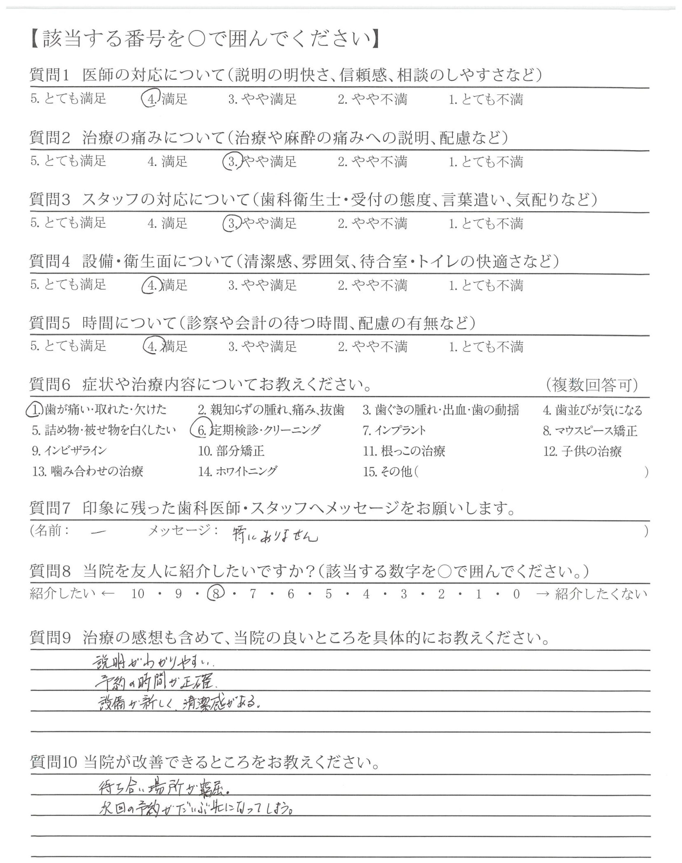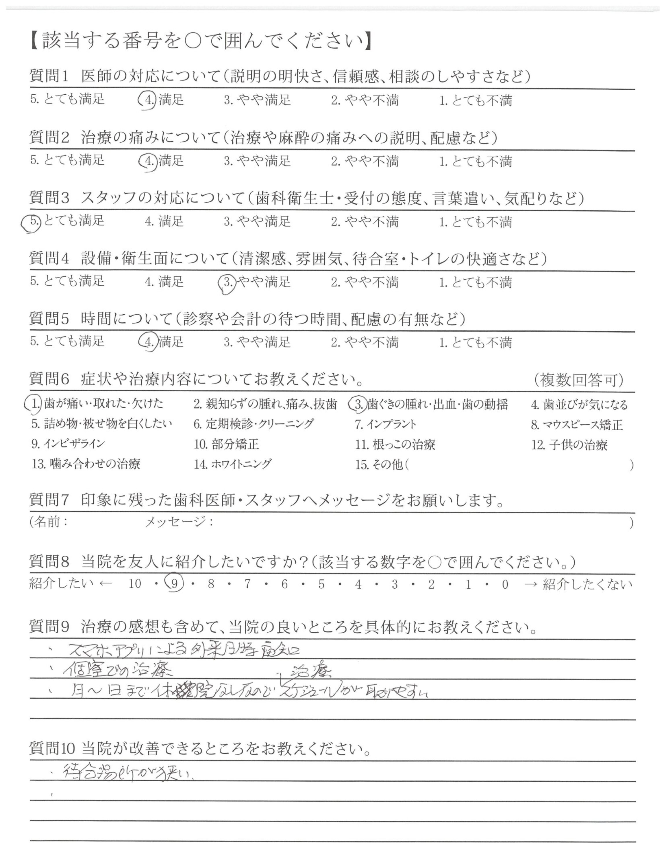 患者数に対して待合室が狭いと感じました。