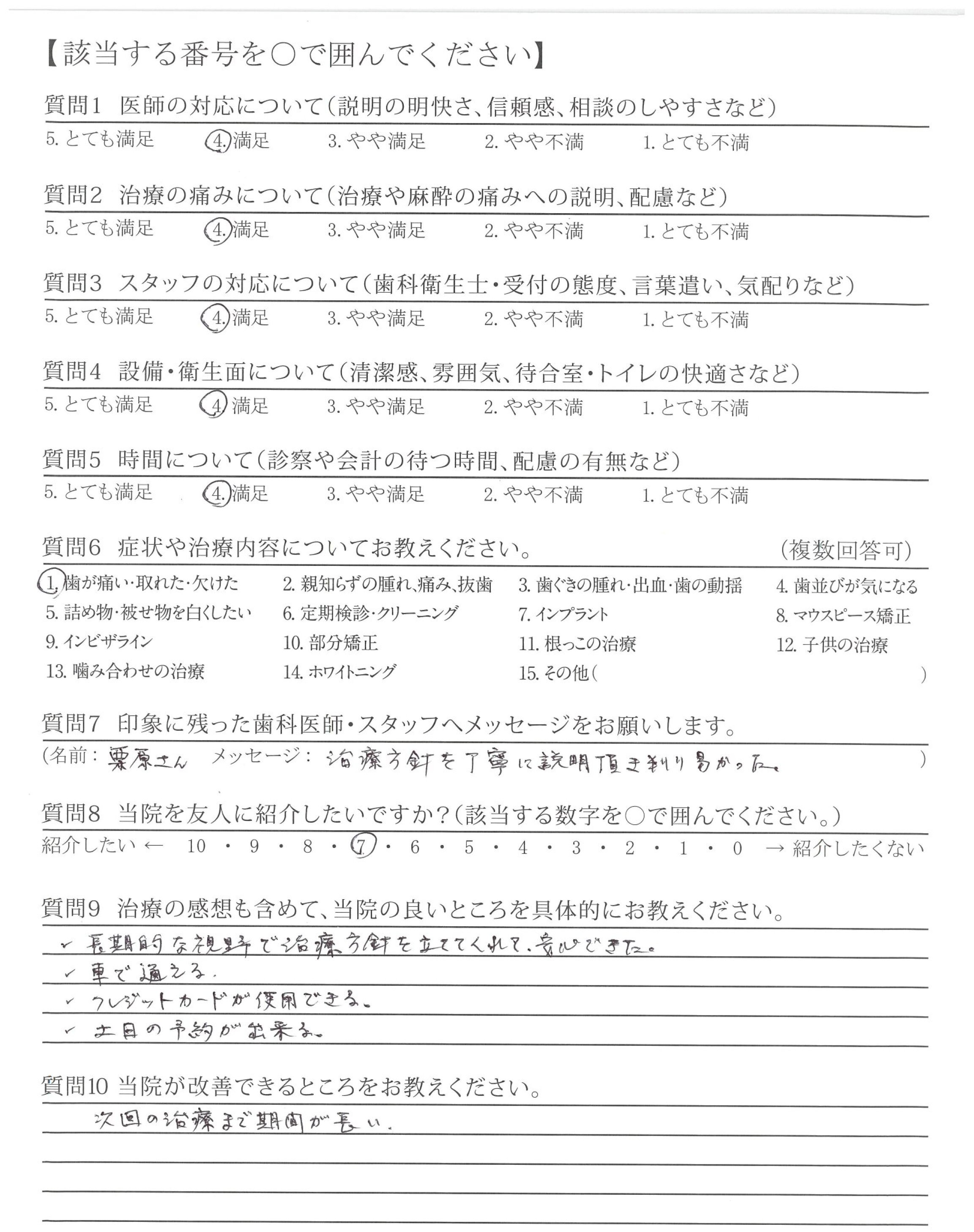 | 歯科医師の対応 | ![]() ![]() ![]() ![]() 4.29 |