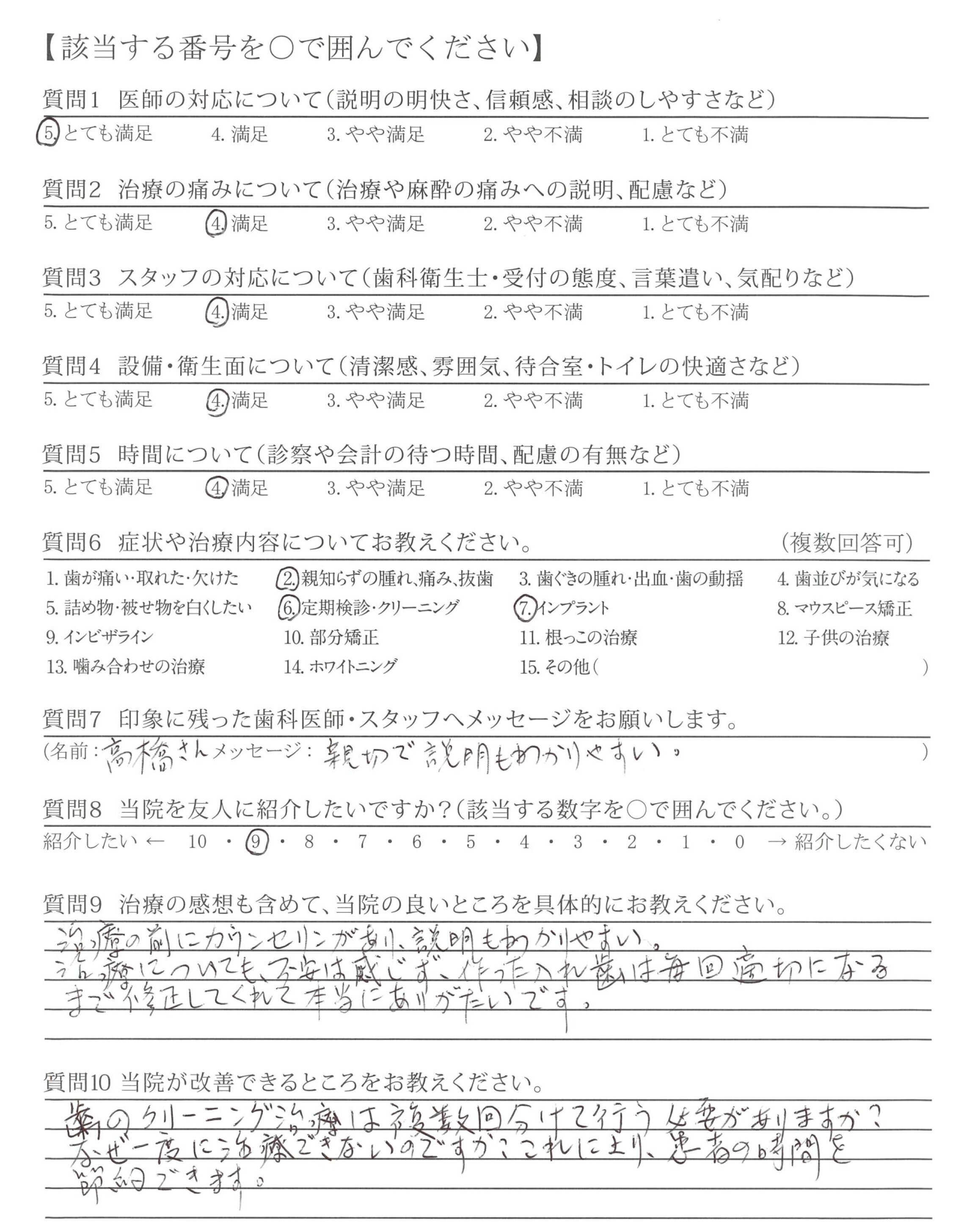 ・治療前の説明をくわしくしていただける所。(歯科医師、歯科衛生士)