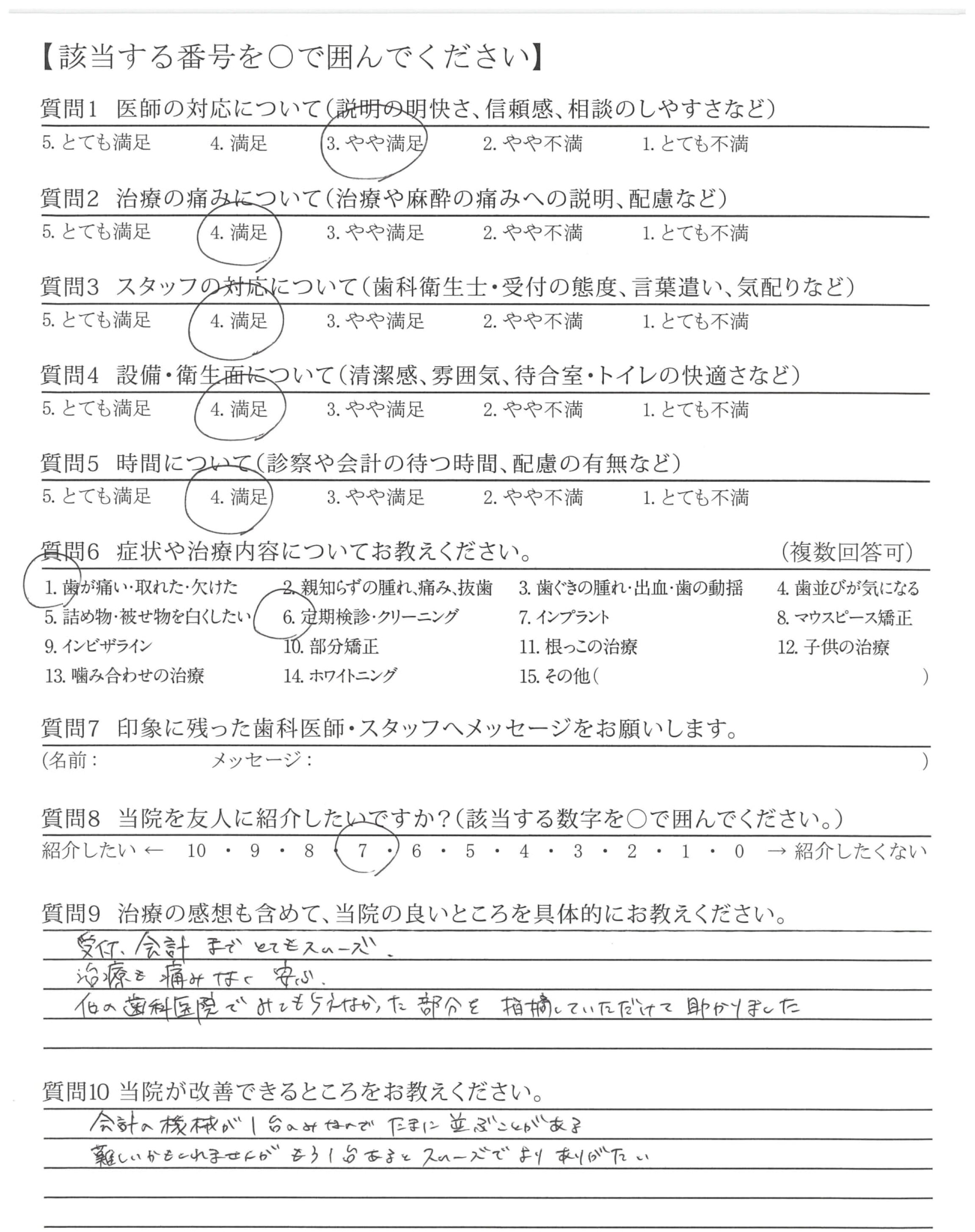 他の歯科医院ではみてもらえなかった部分を指摘していただけて助かりました。