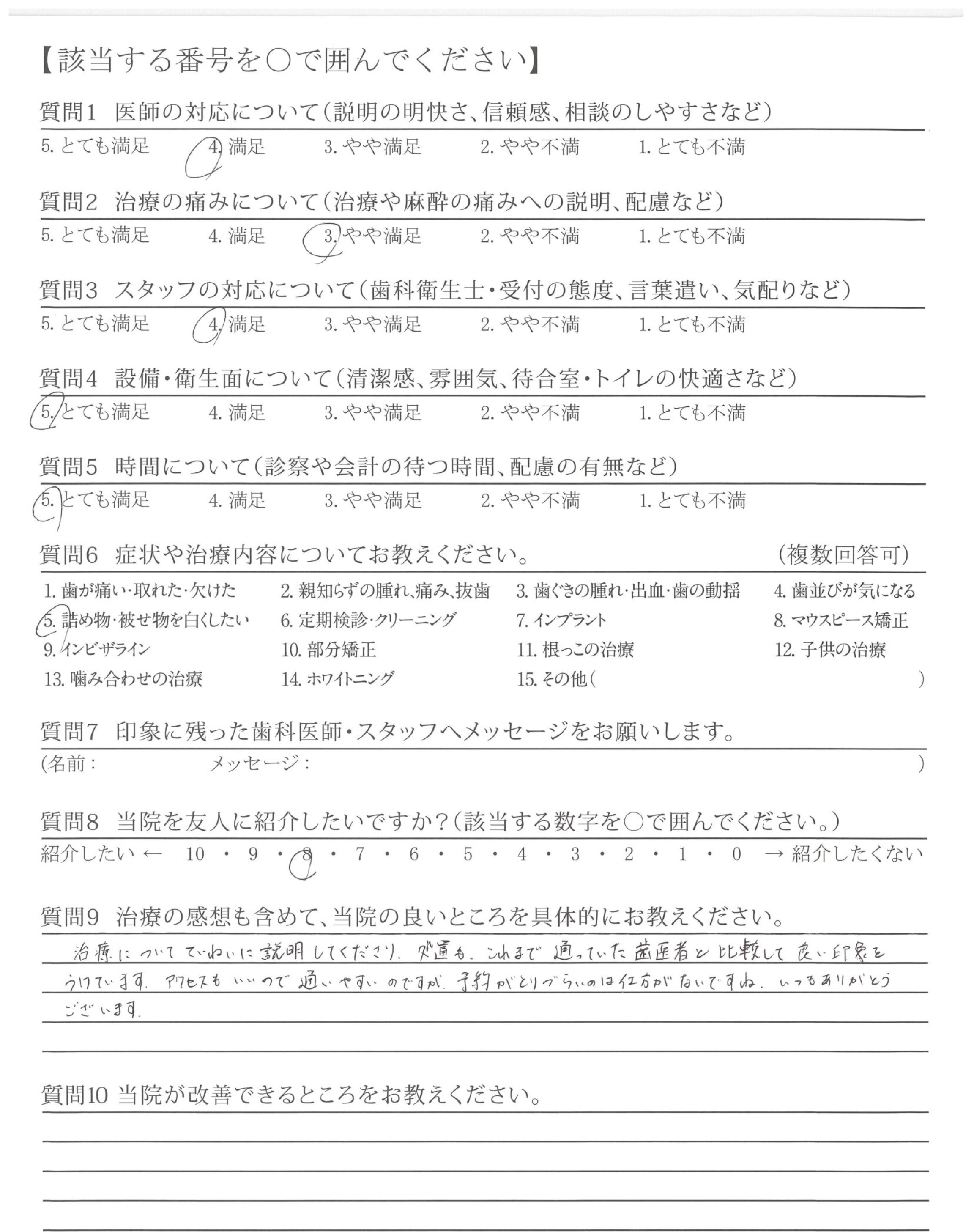 先生、スタッフ、受付、全て非常に丁寧であり、満足でした。