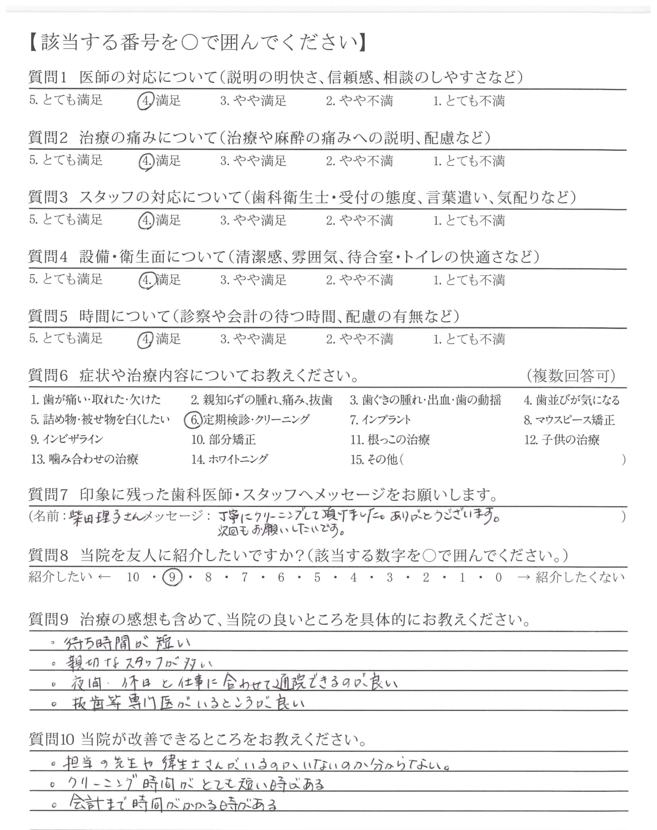 説明も十分で、治療の提案も適宣してくれるのが良いと思いました。