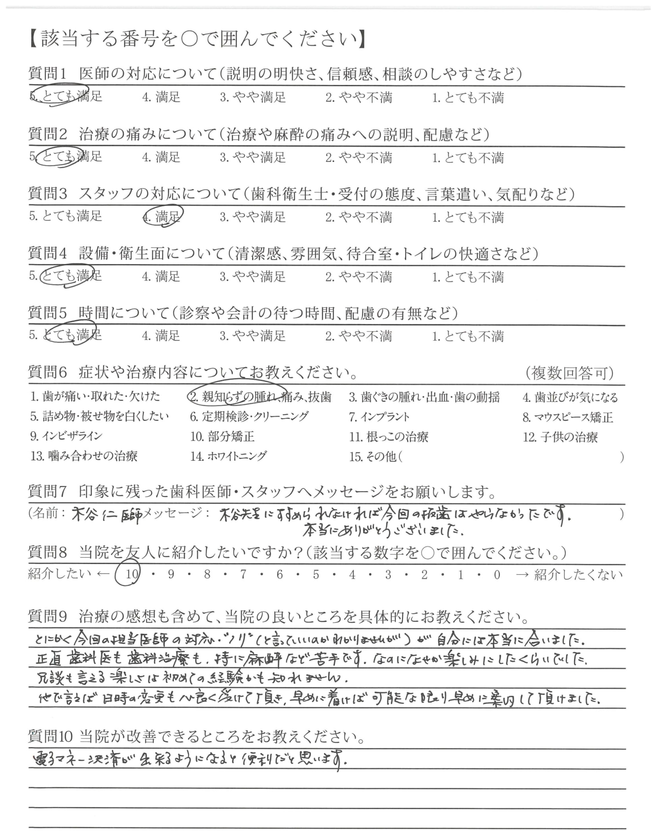 木谷先生にすすめられなければ今回の抜歯はやらなかったです。本当にありがとうございました。