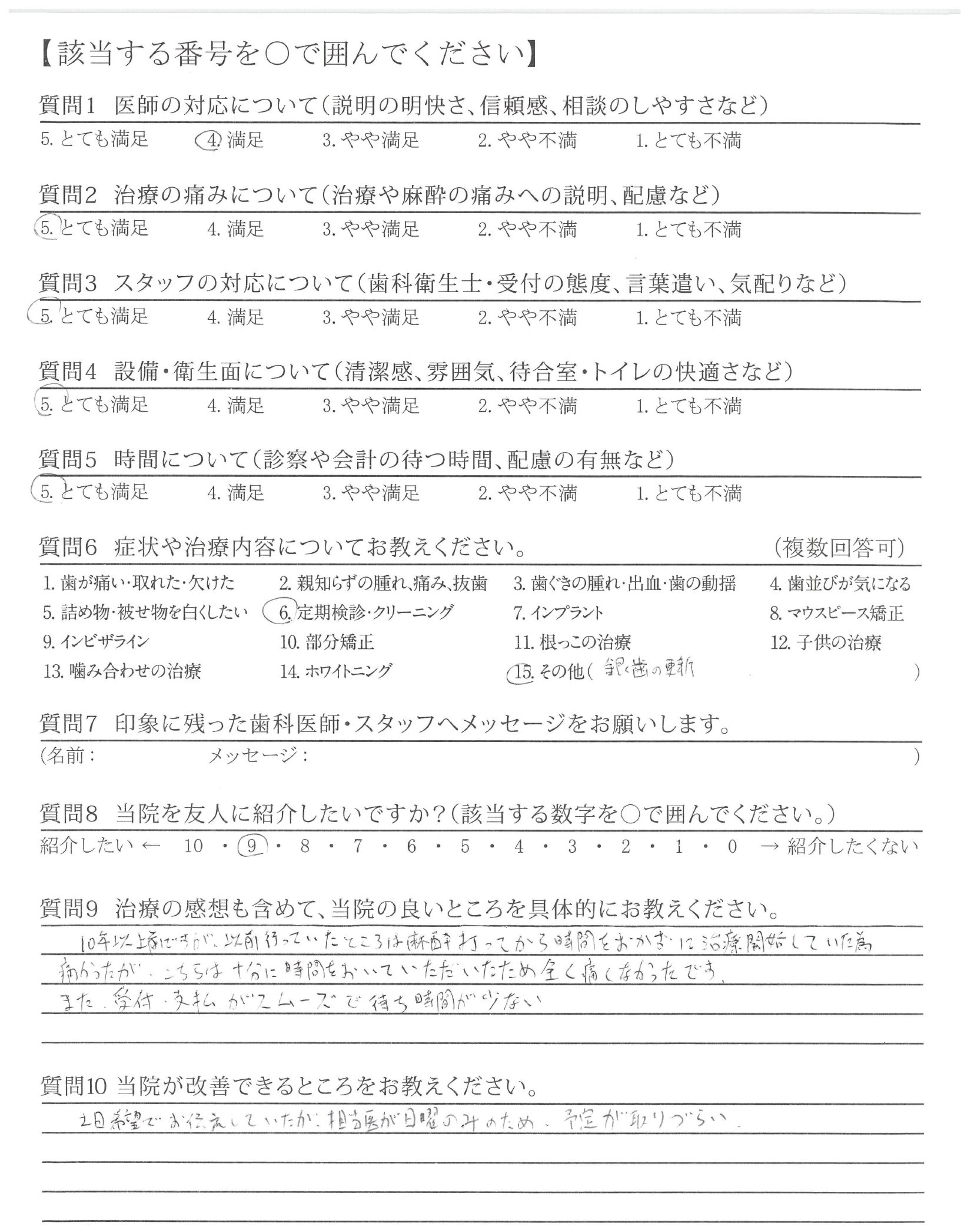 | 歯科医師の対応 | ![]() ![]() ![]() ![]() 4.14 |