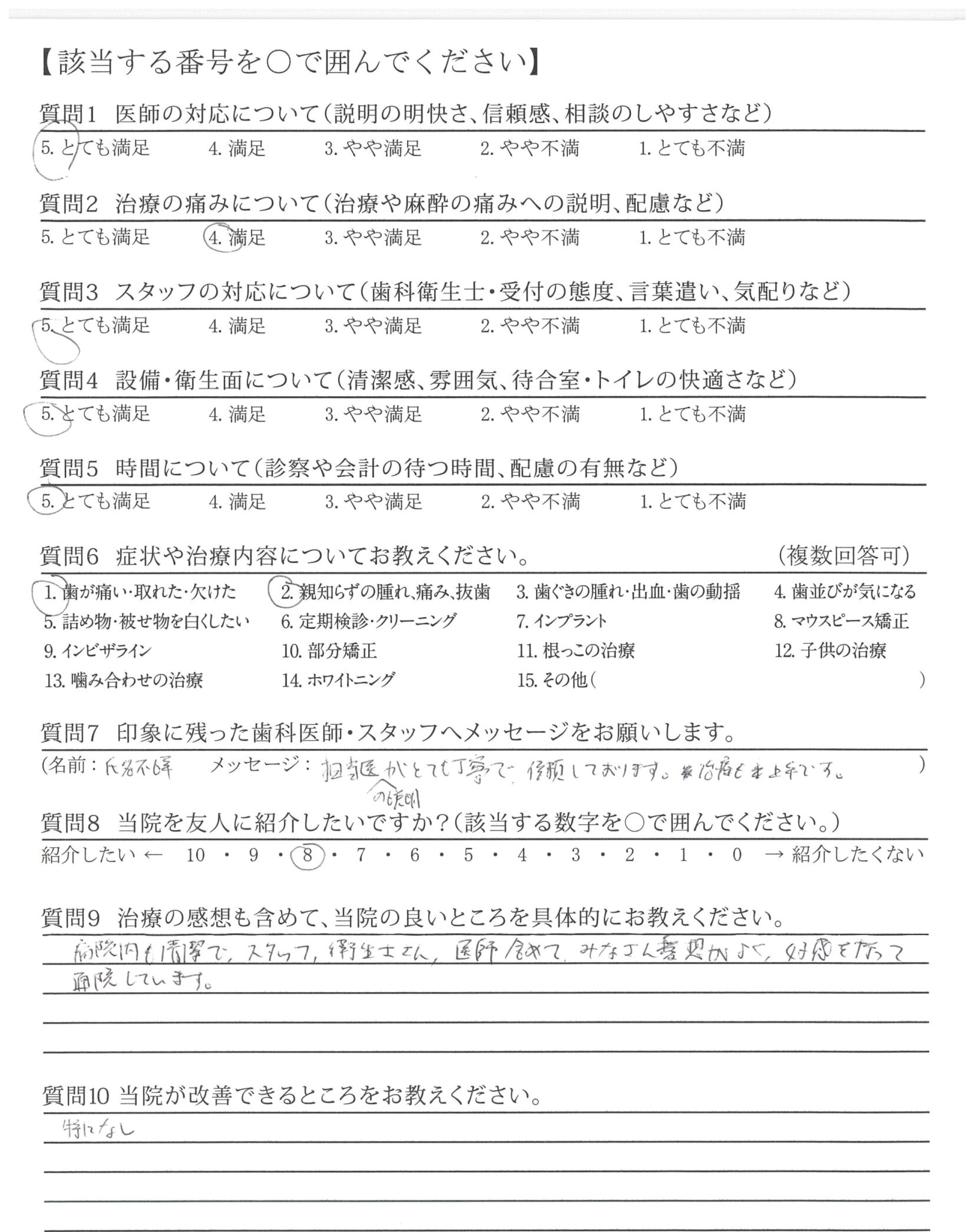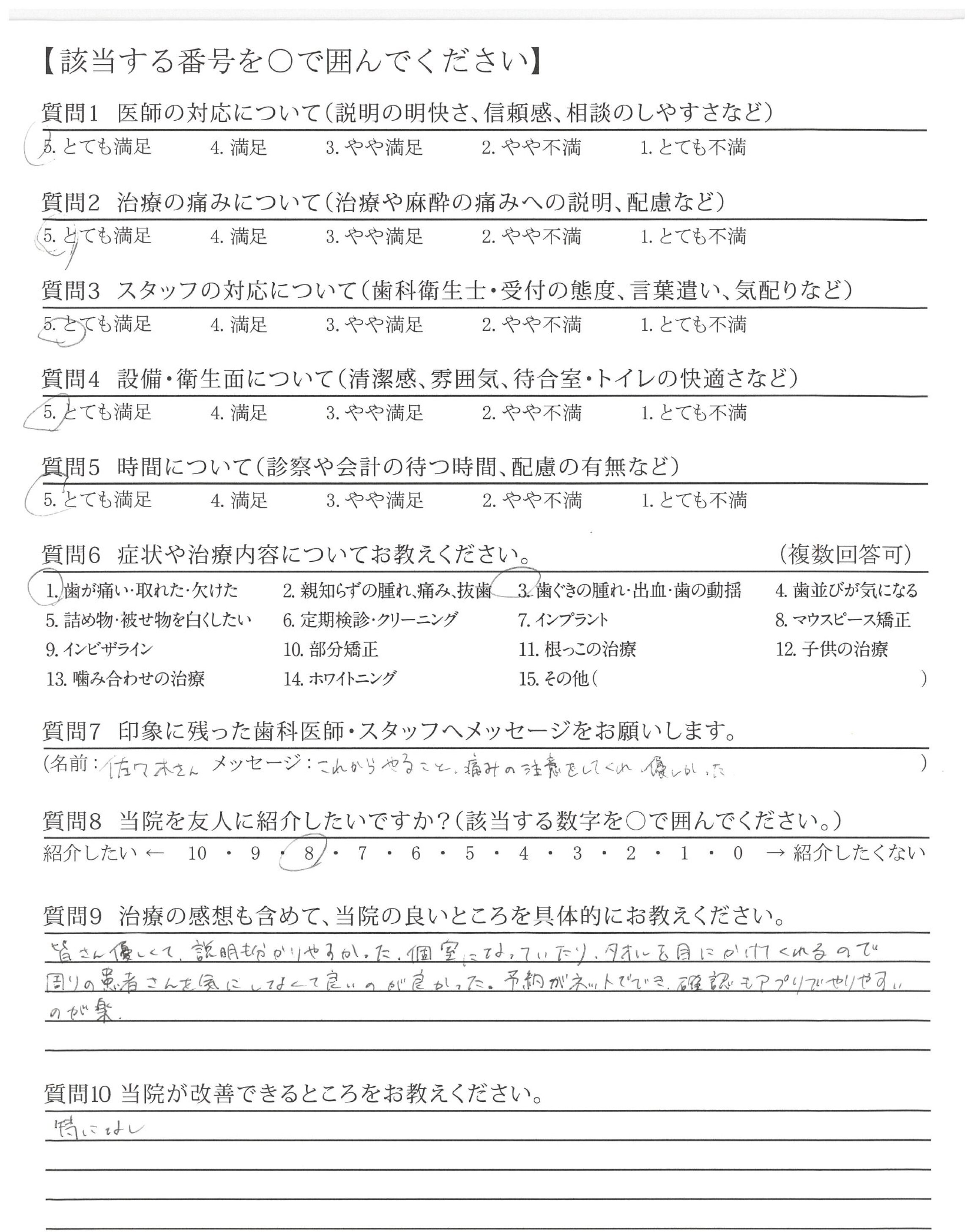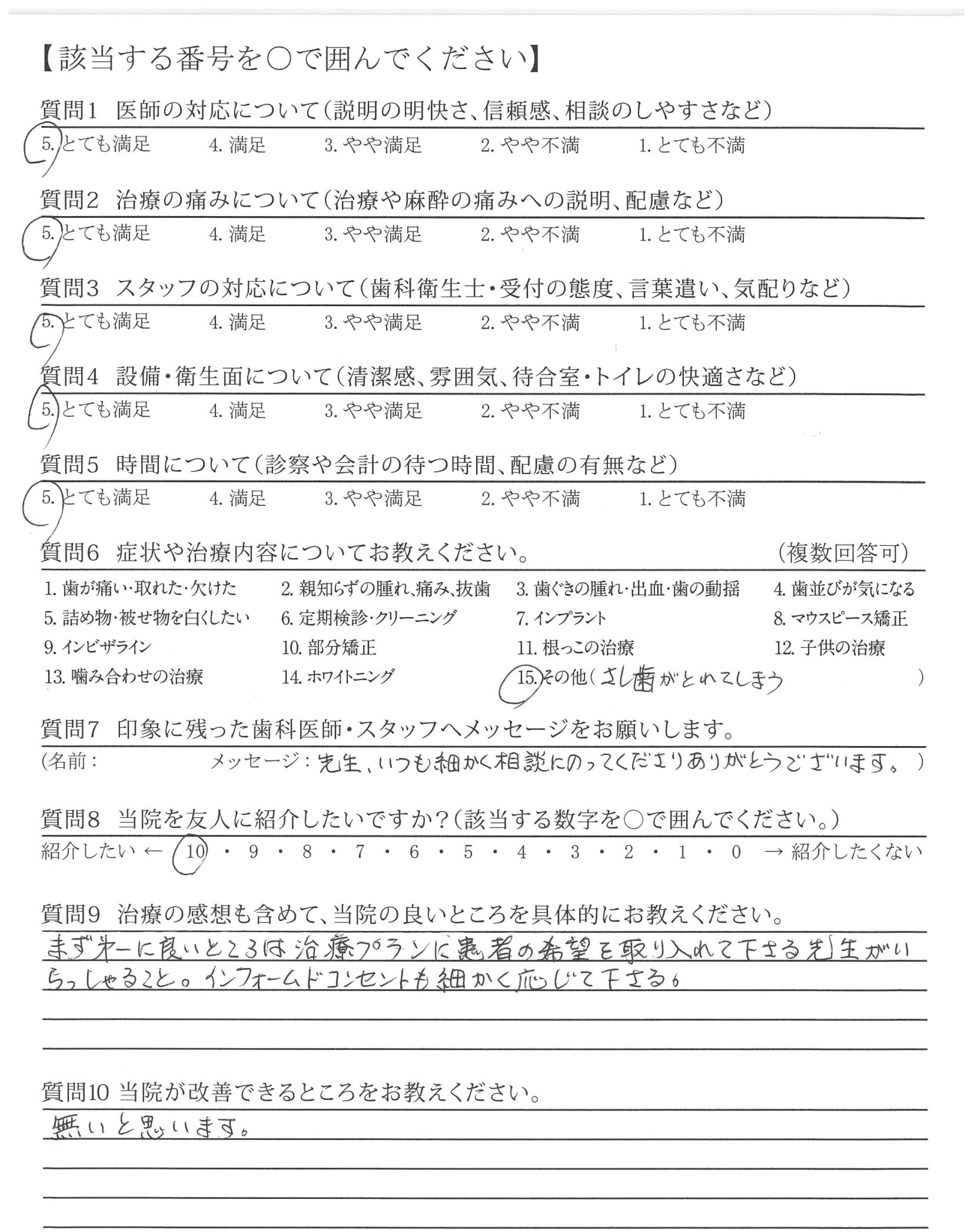 まず第一に良いところは治療プランに患者の希望を取り入れて下さる先生がいらっしゃること。