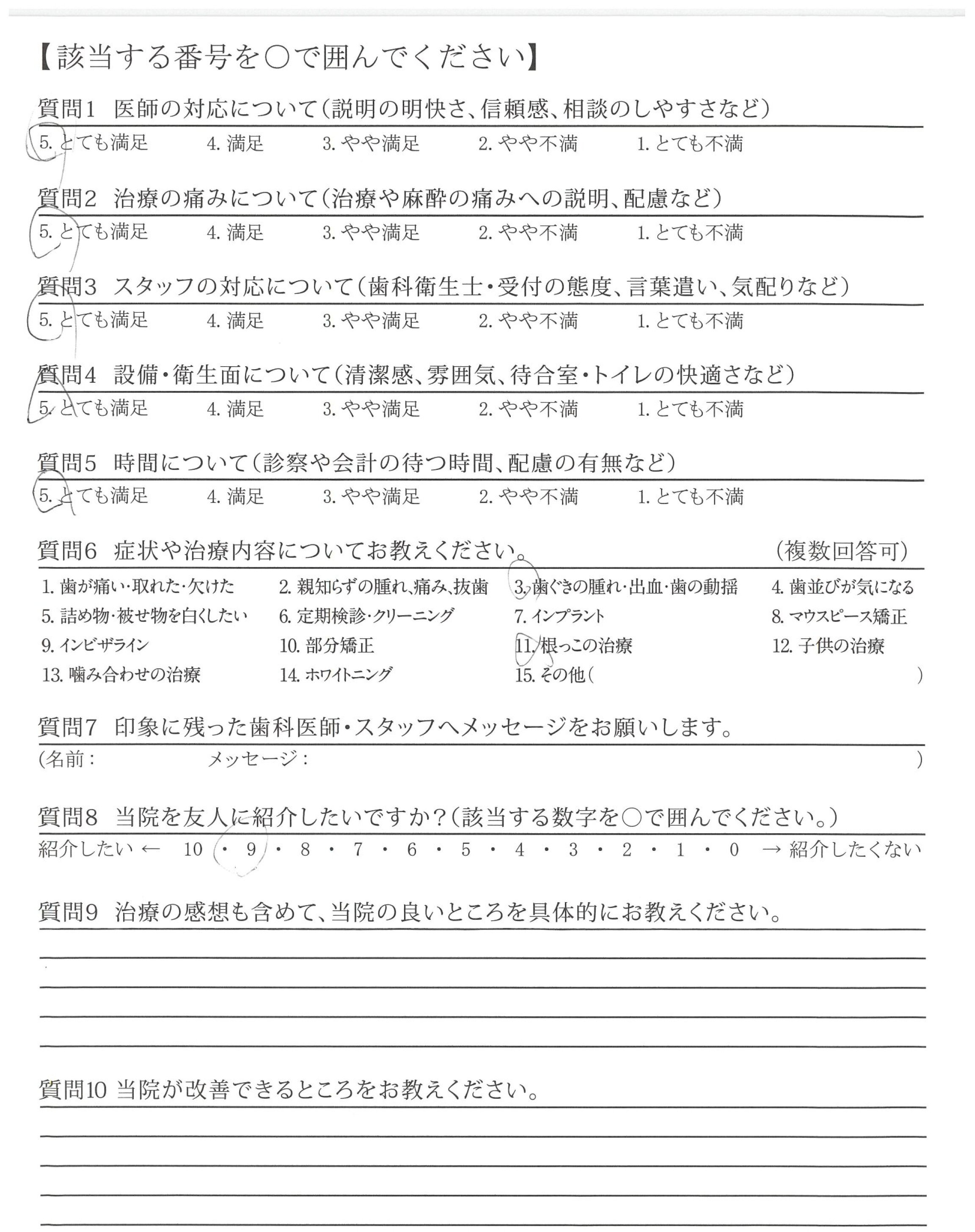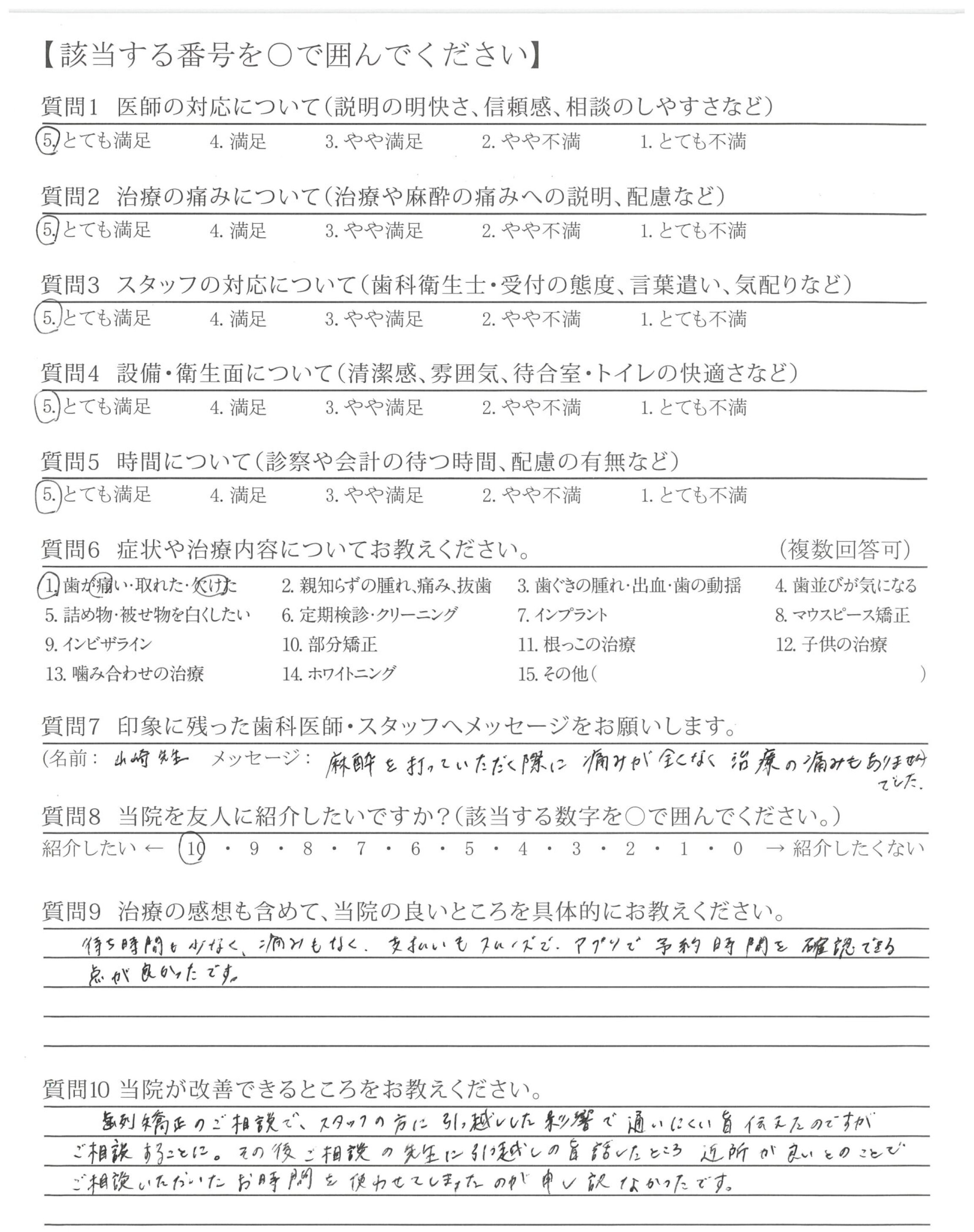 麻酔を打っていただく際に痛みが全くなく治療の痛みもありませんでした。