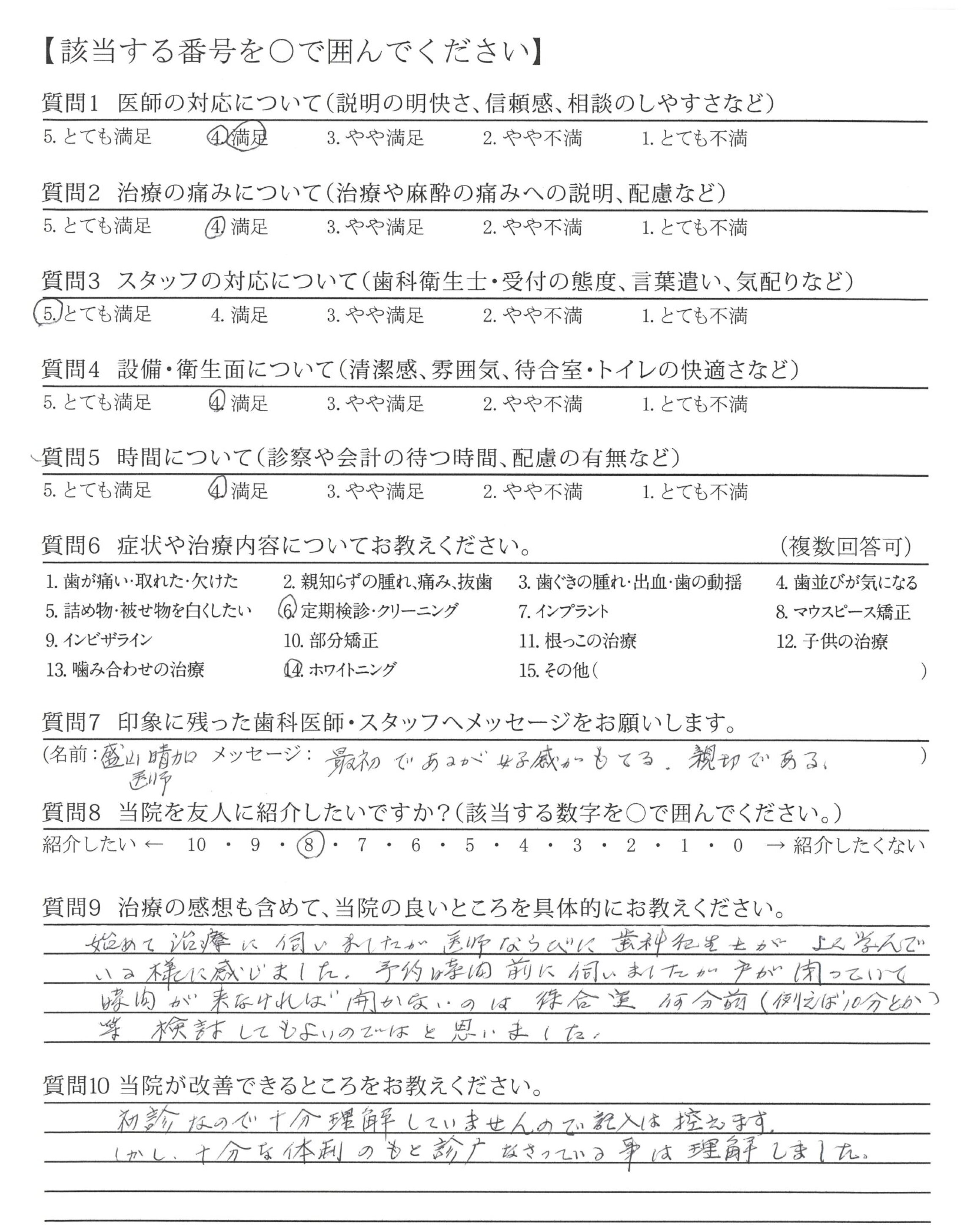 始めて治療に伺いましたが医師ならびに歯科衛生士がよく学んでいる様に感じました。