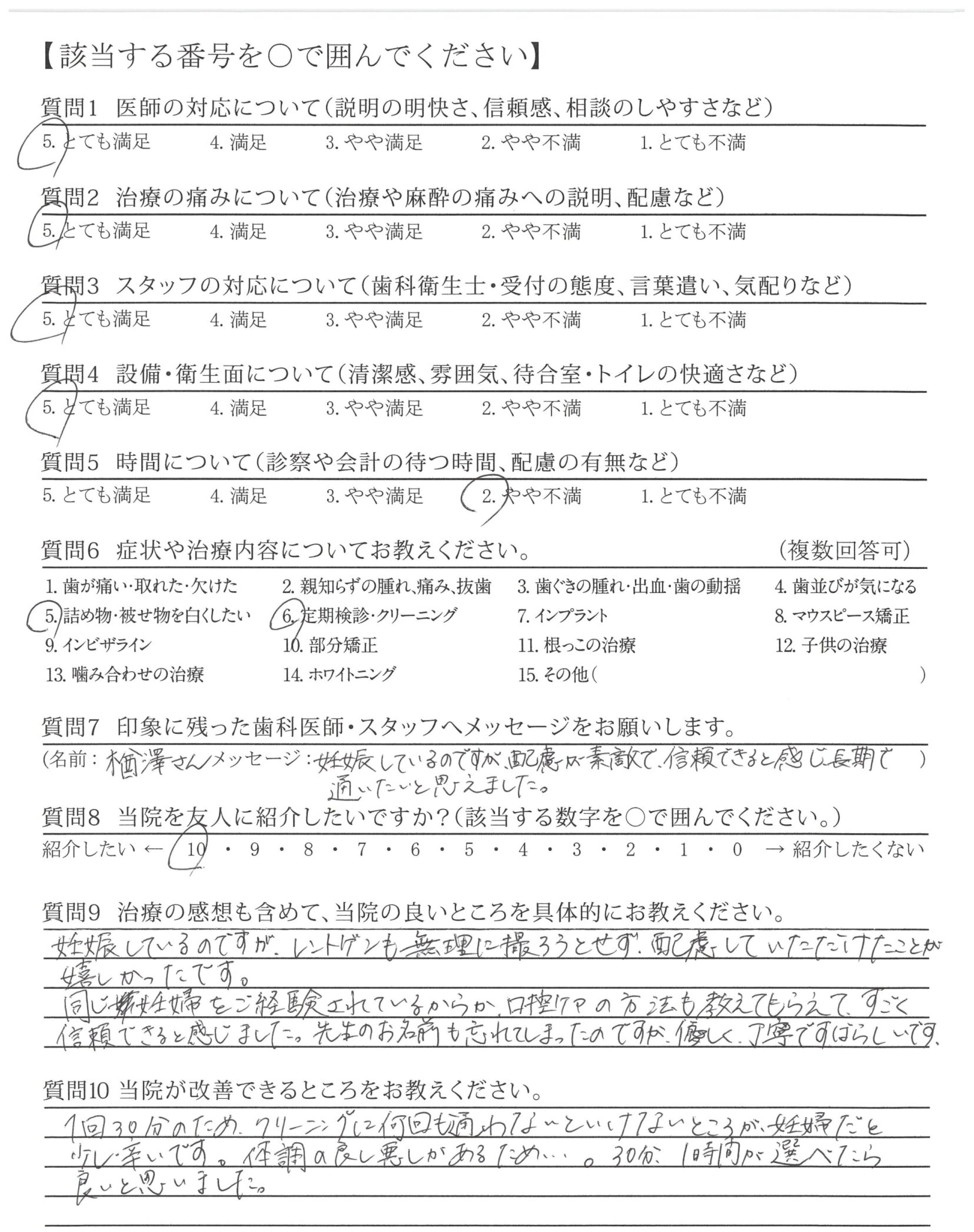 妊娠しているのですが、レントゲンも無理に撮ろうとせず、配慮していただけたことが嬉しかったです。同じ妊婦をご経験されているからか、口腔ケアの方法も教えてもらえて、すごく信頼できると感じました。