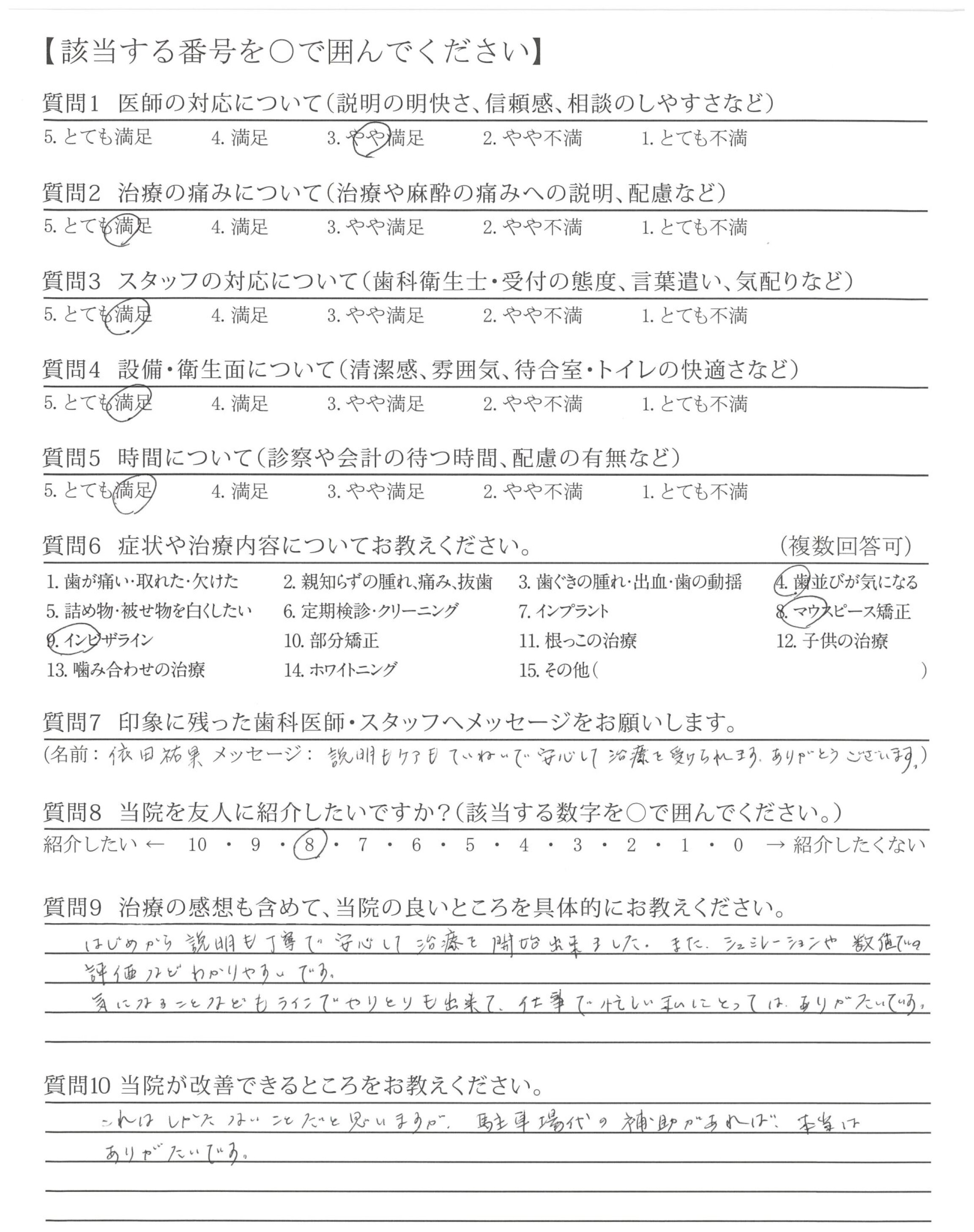 はじめから説明も丁寧で安心して治療を開始出来ました。また、シュミレーションや数値での評価などわかりやすいです。