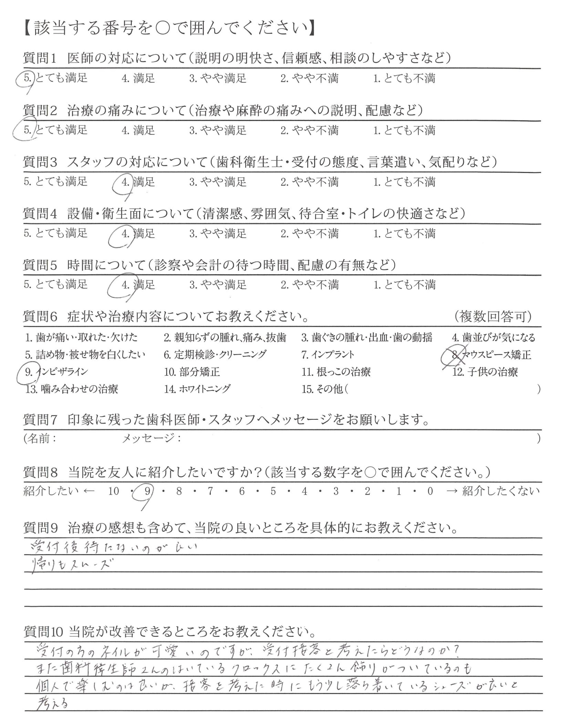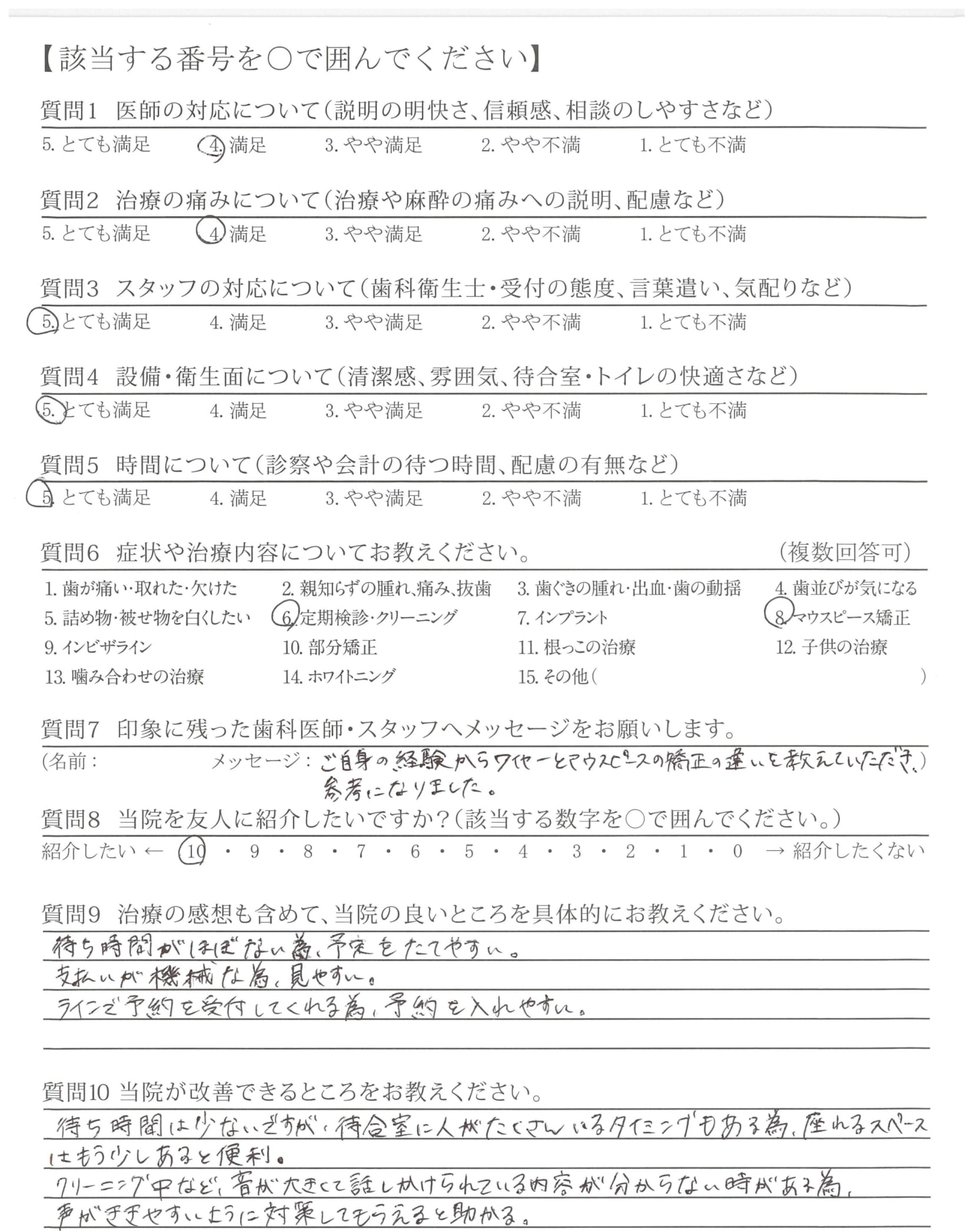 ・処置中の言葉かけが具体的で安心する。ex)大きめの器具入ります。奥歯でかんで下さい。など
