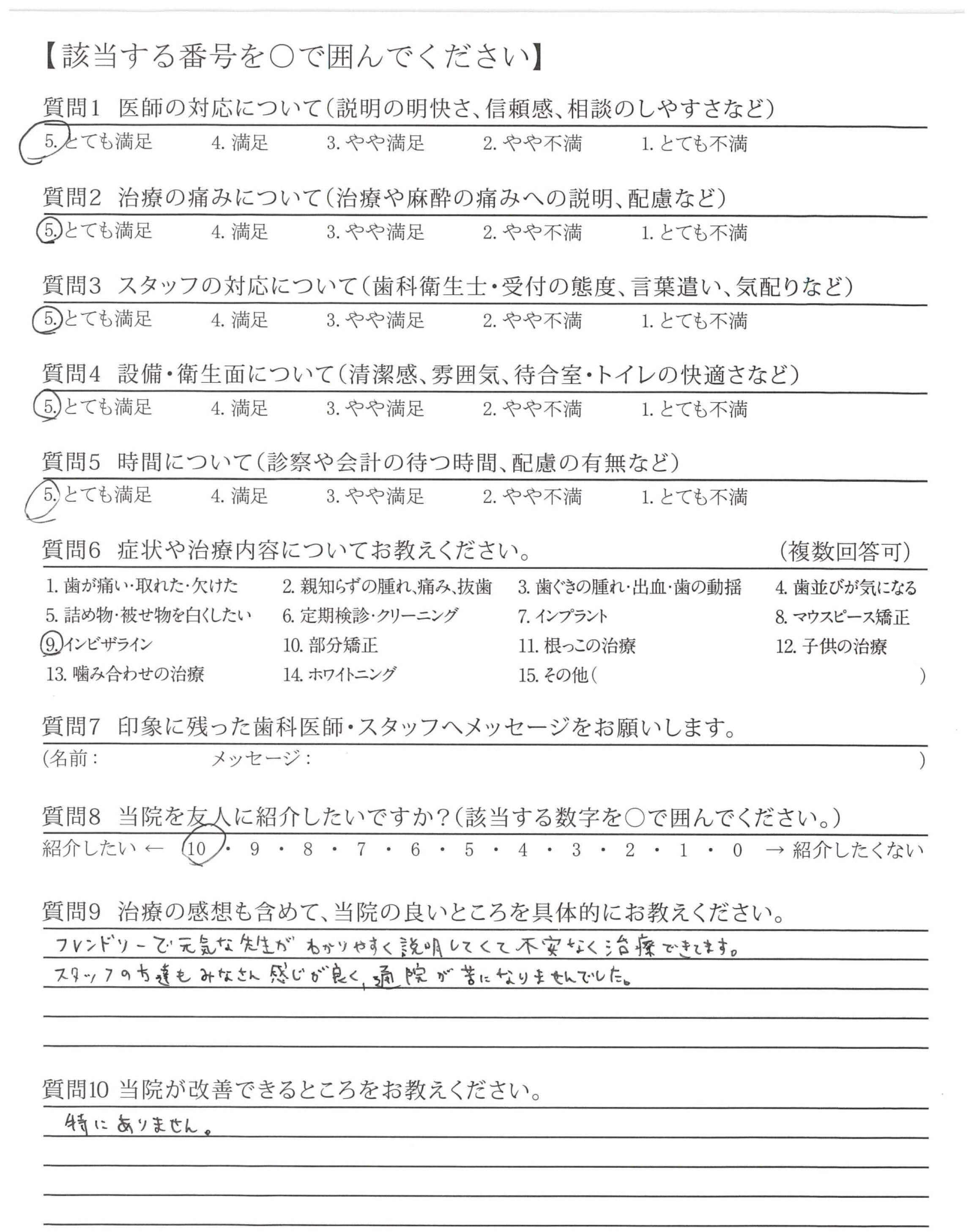 インビザラインで通院してますが、歯石の除去までして下さりありがとうございます。