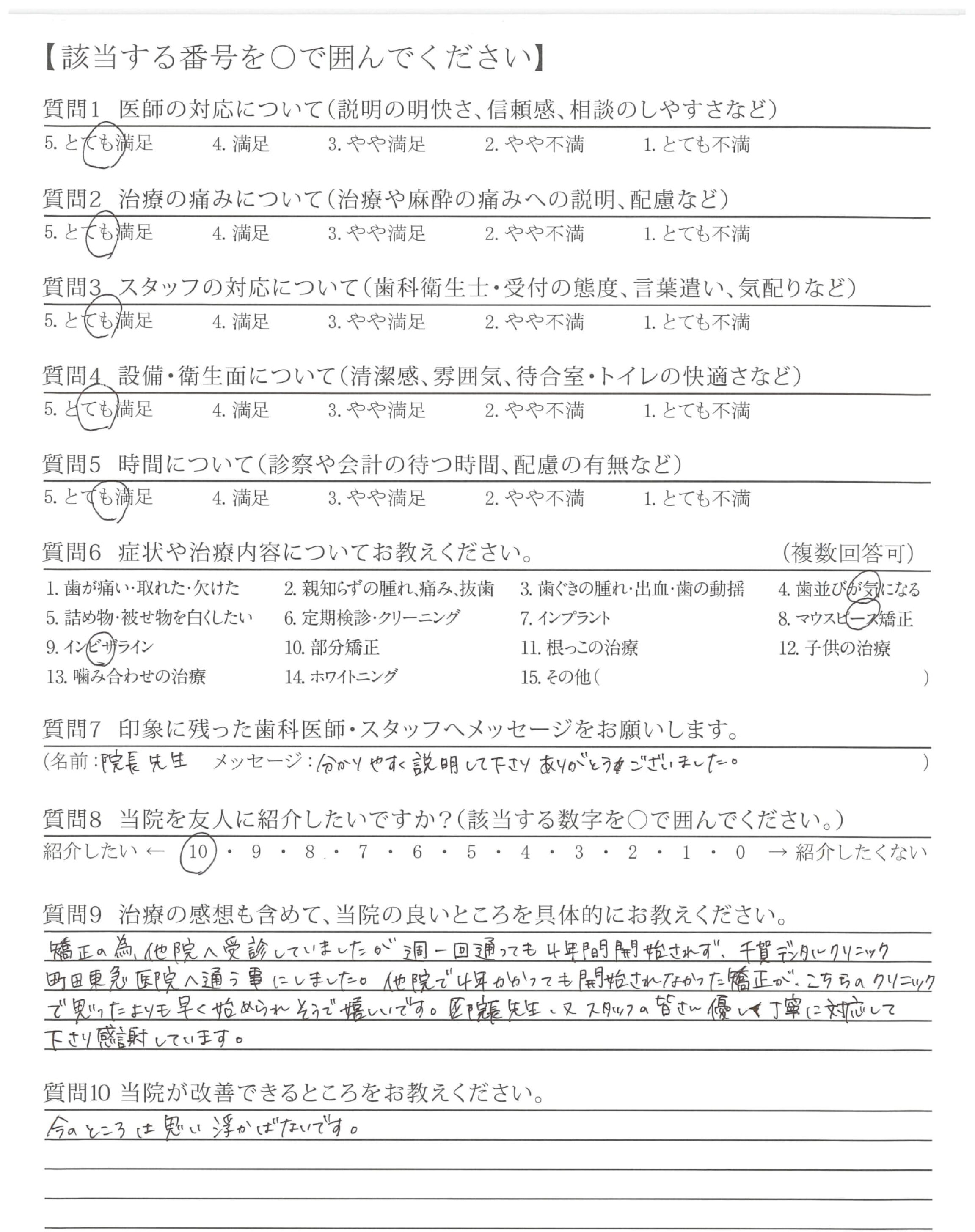 優しい言葉使いで、いつも丁寧に説明して頂き、安心して治療ができました。