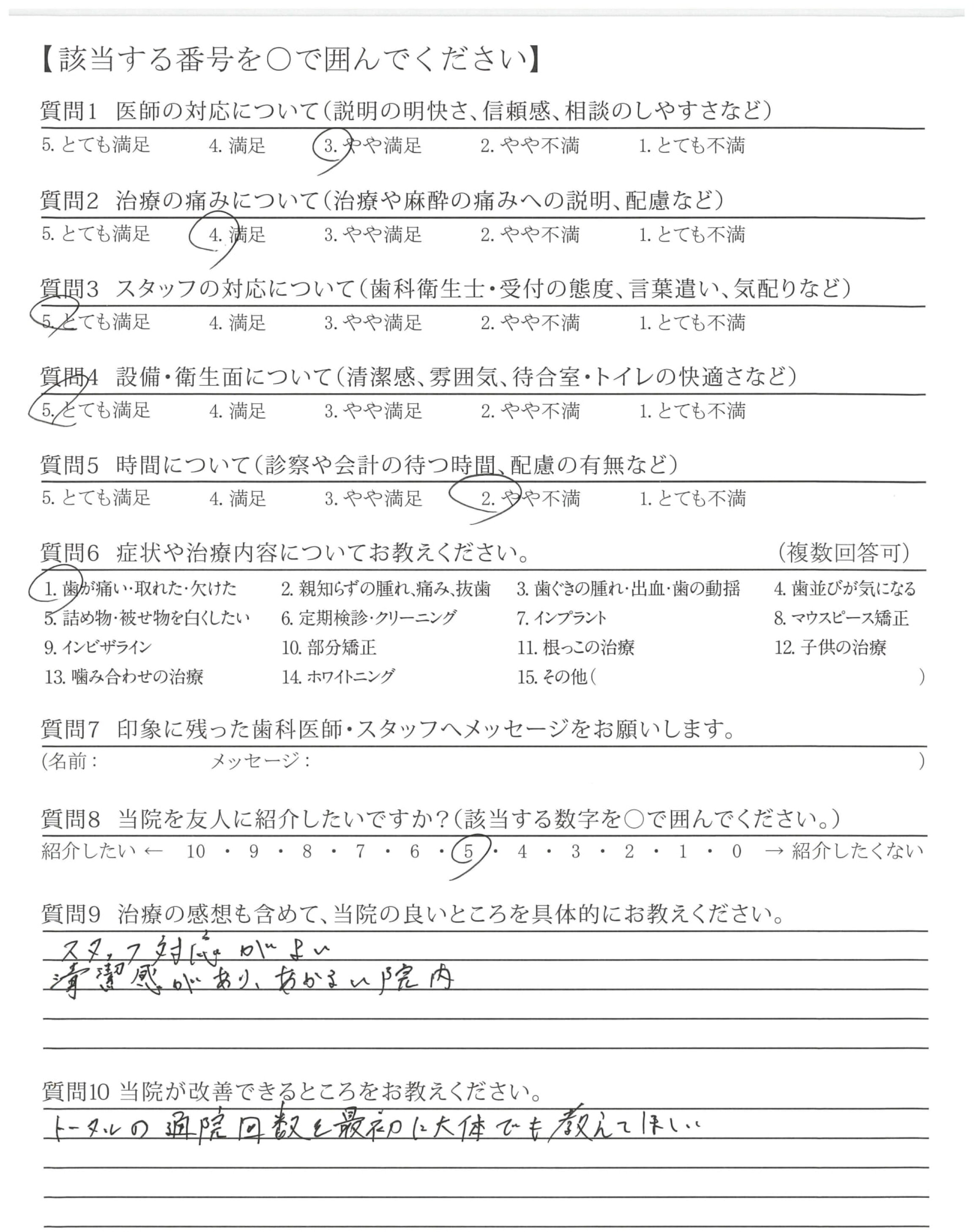 | 歯科医師の対応 | ![]() ![]() ![]() ![]() 4.44 |