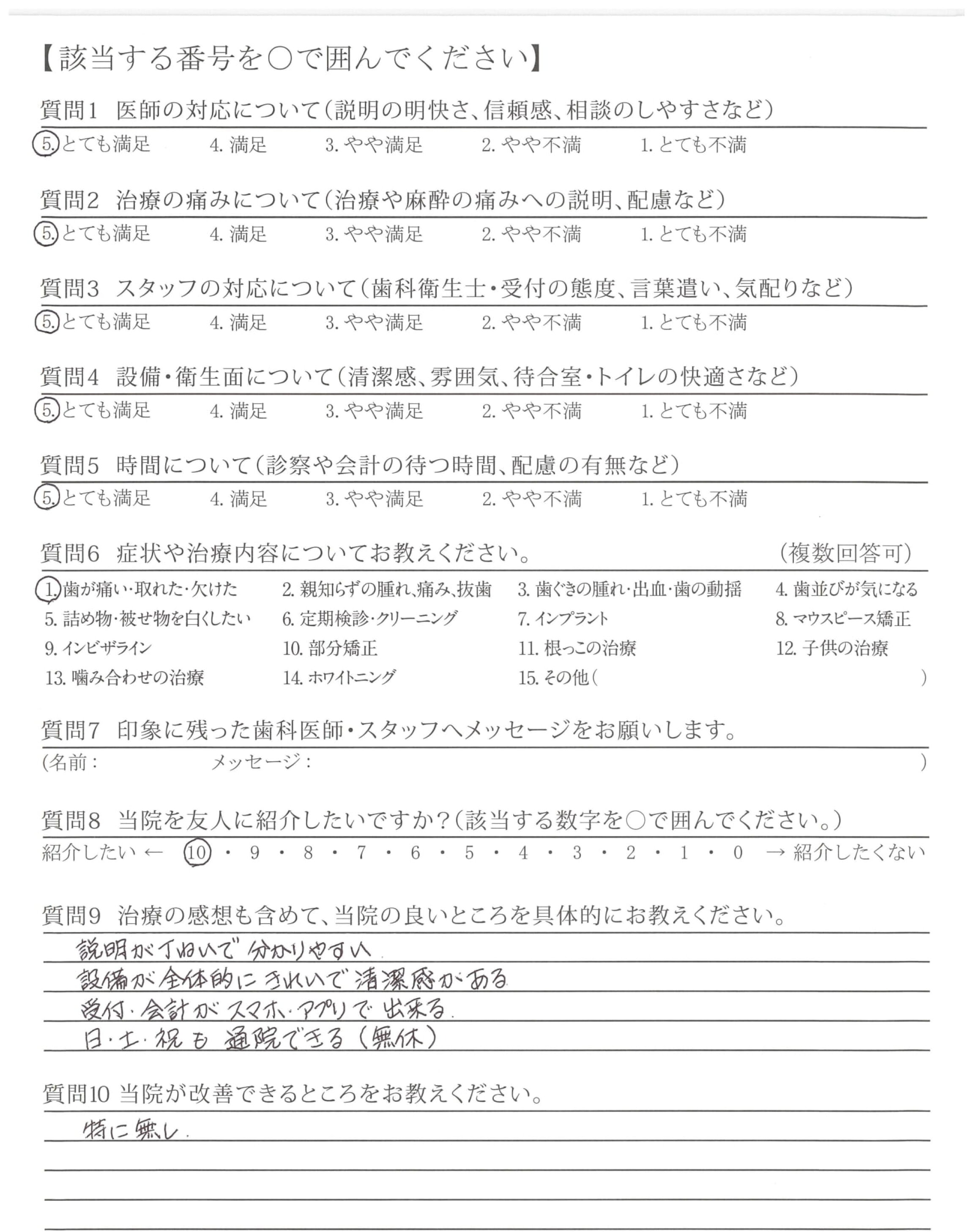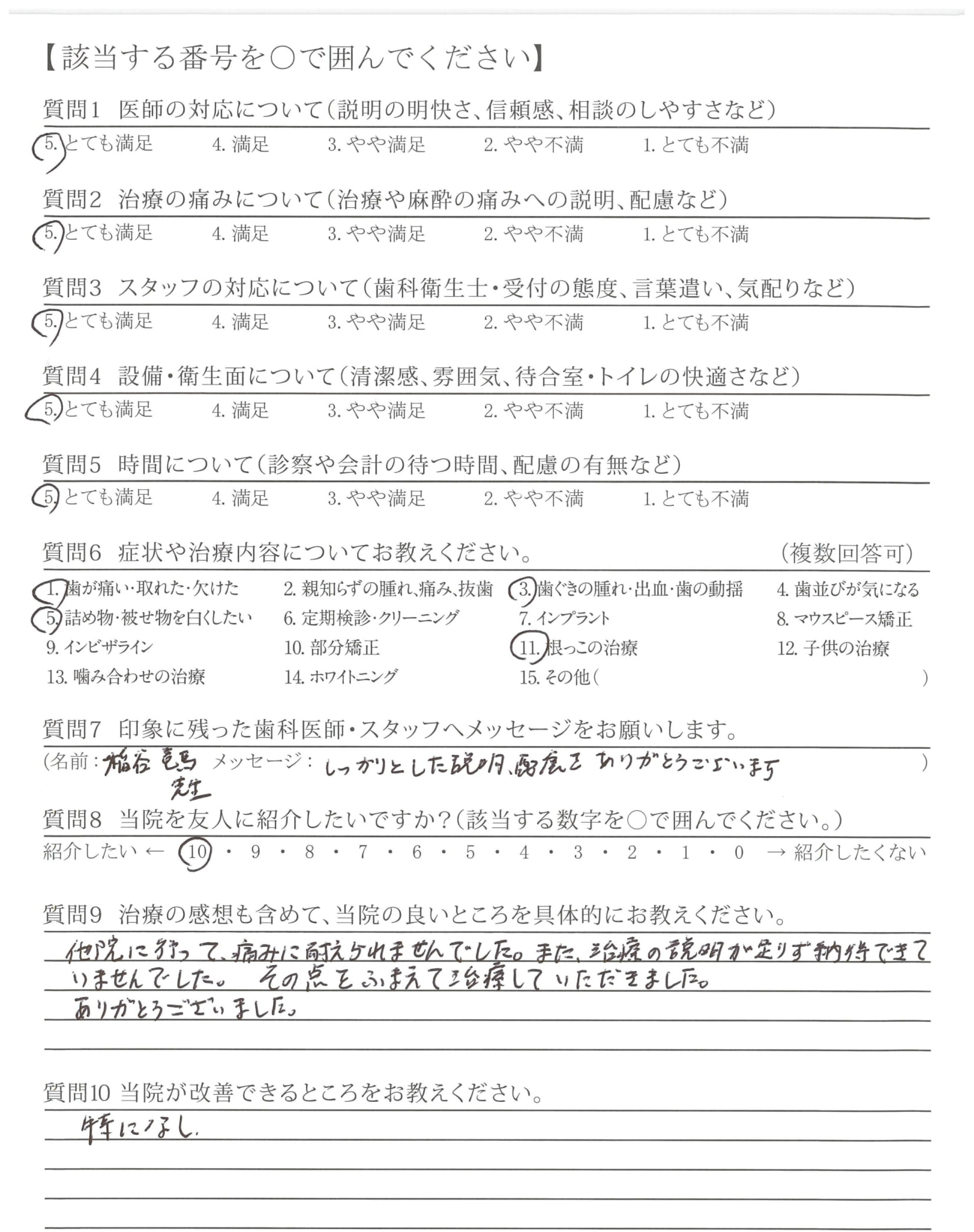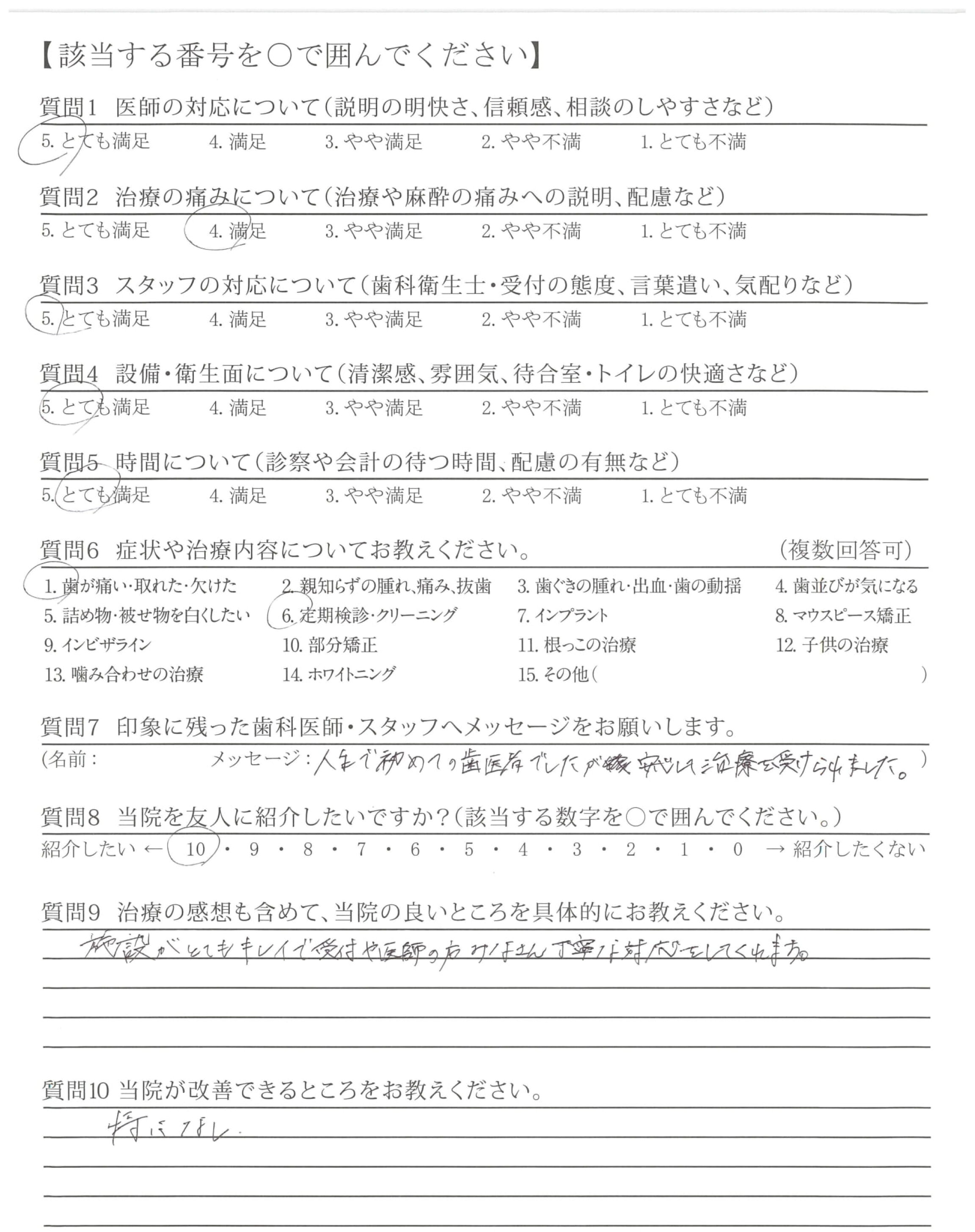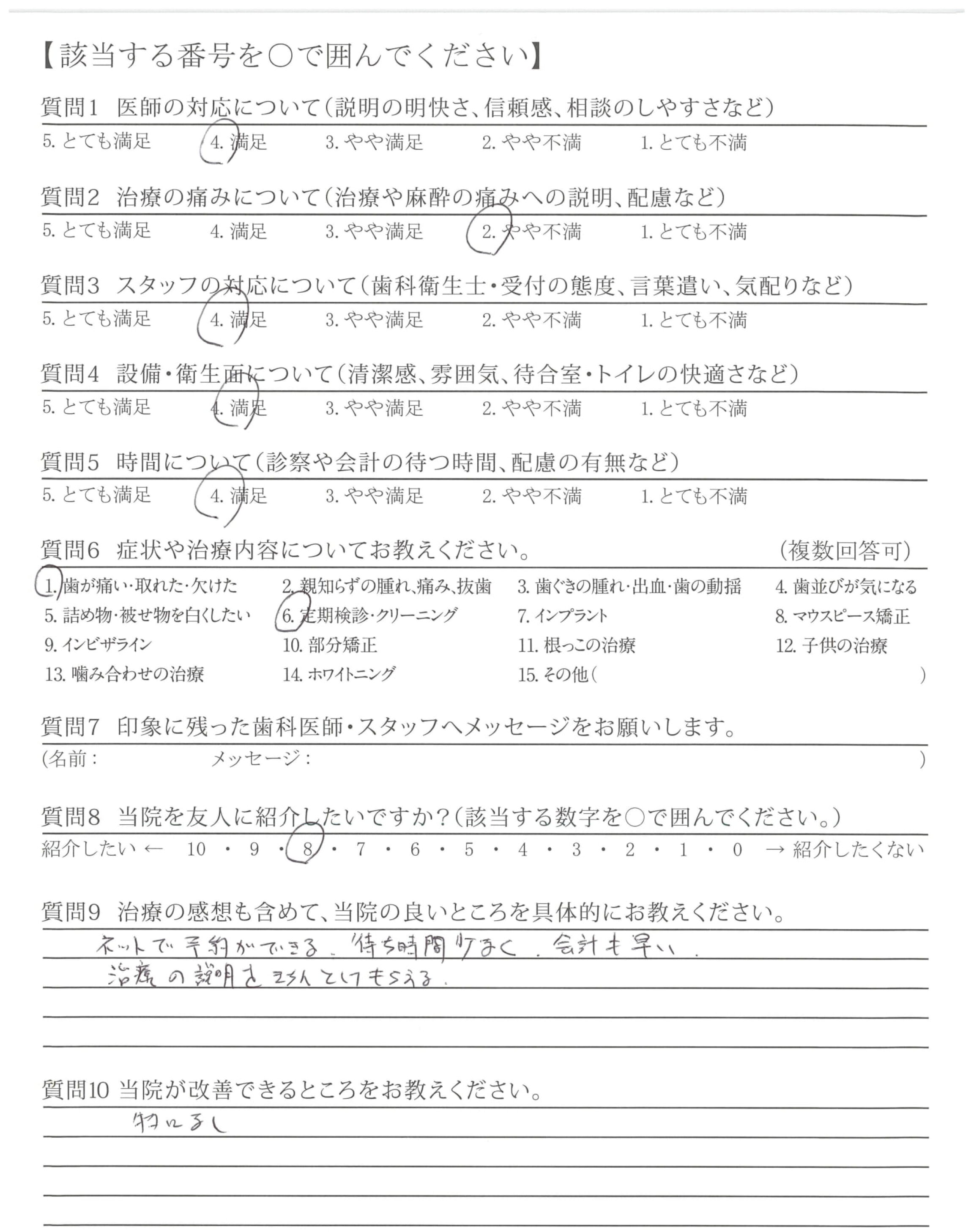 ・説明(治療)が丁寧で、技術が高いと思いました。