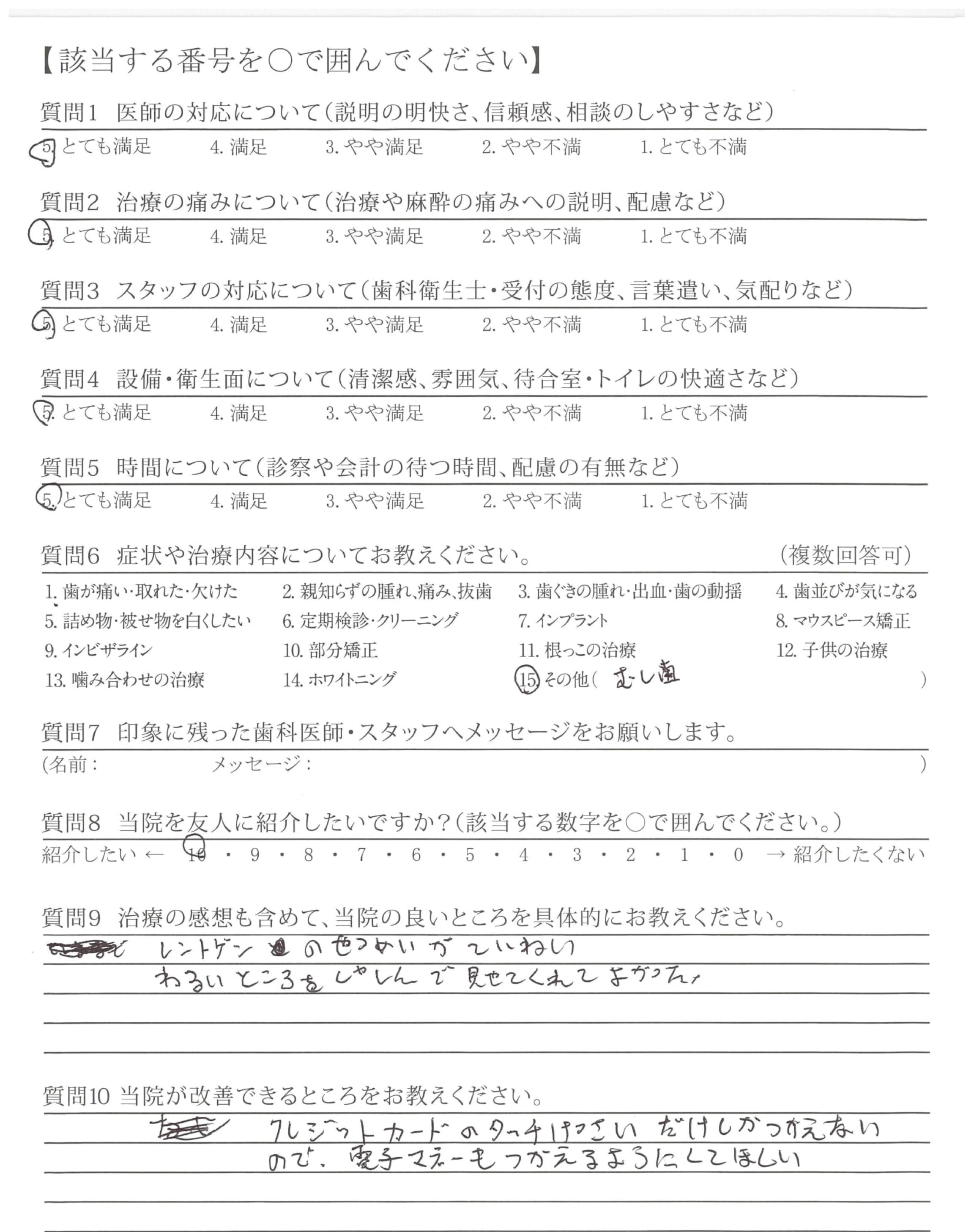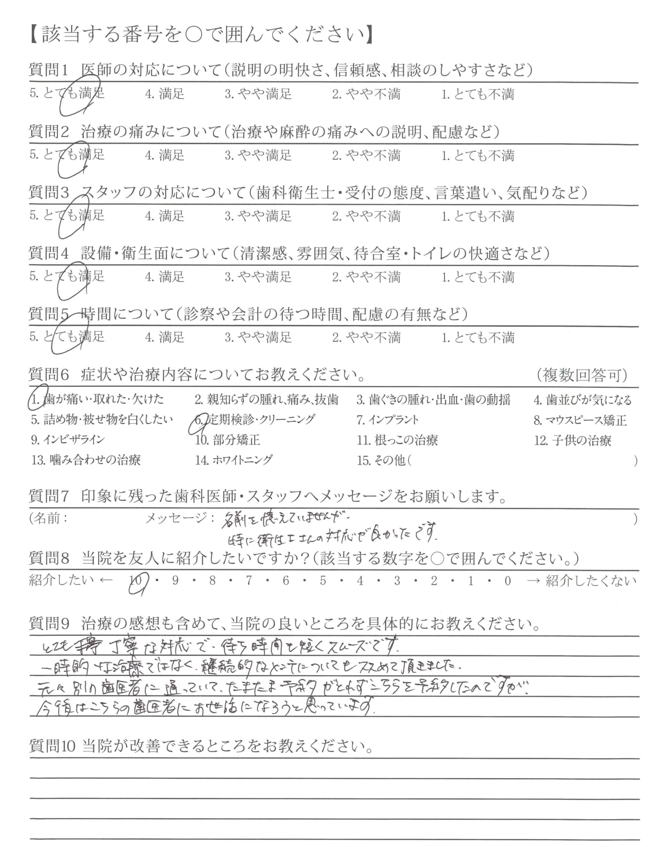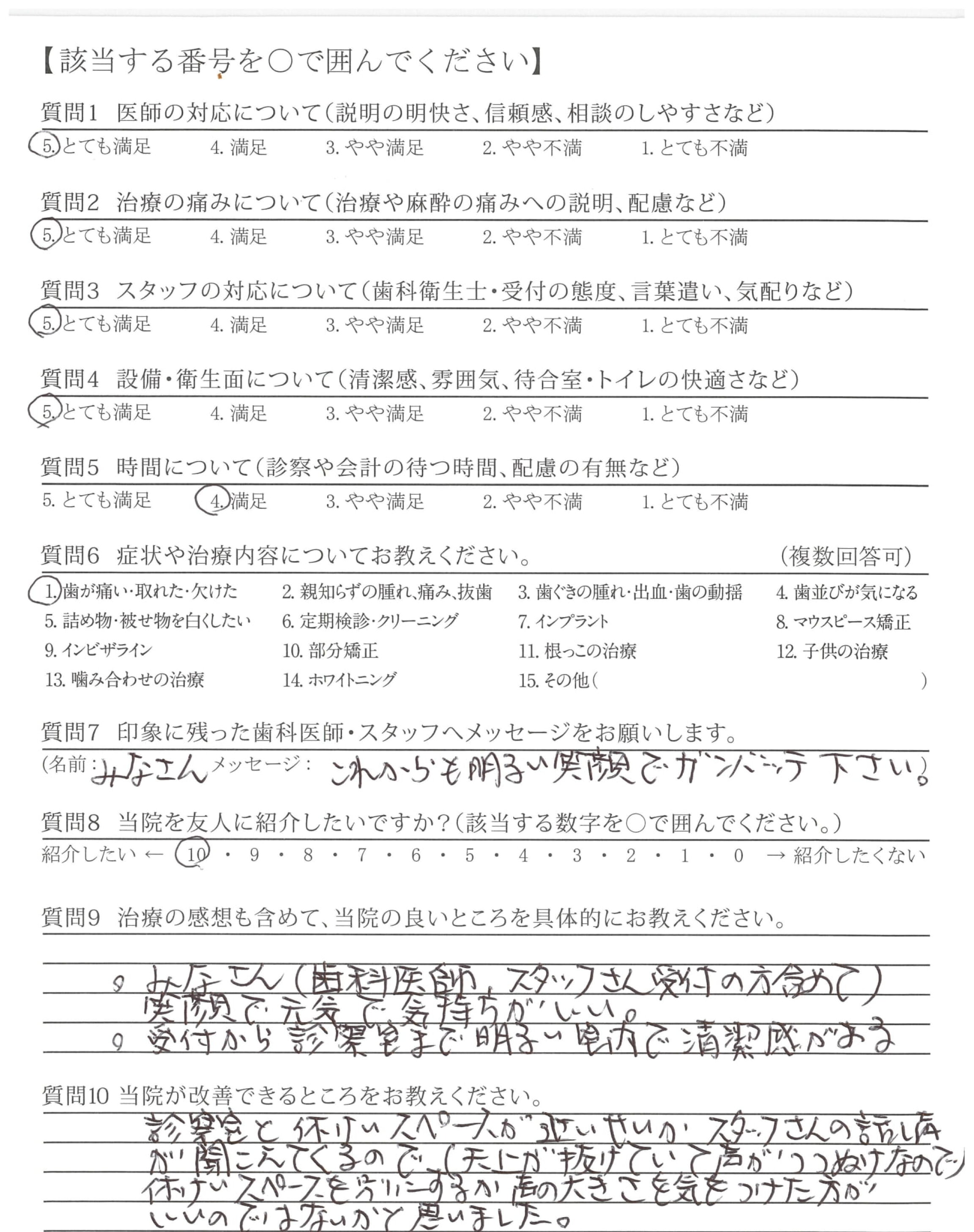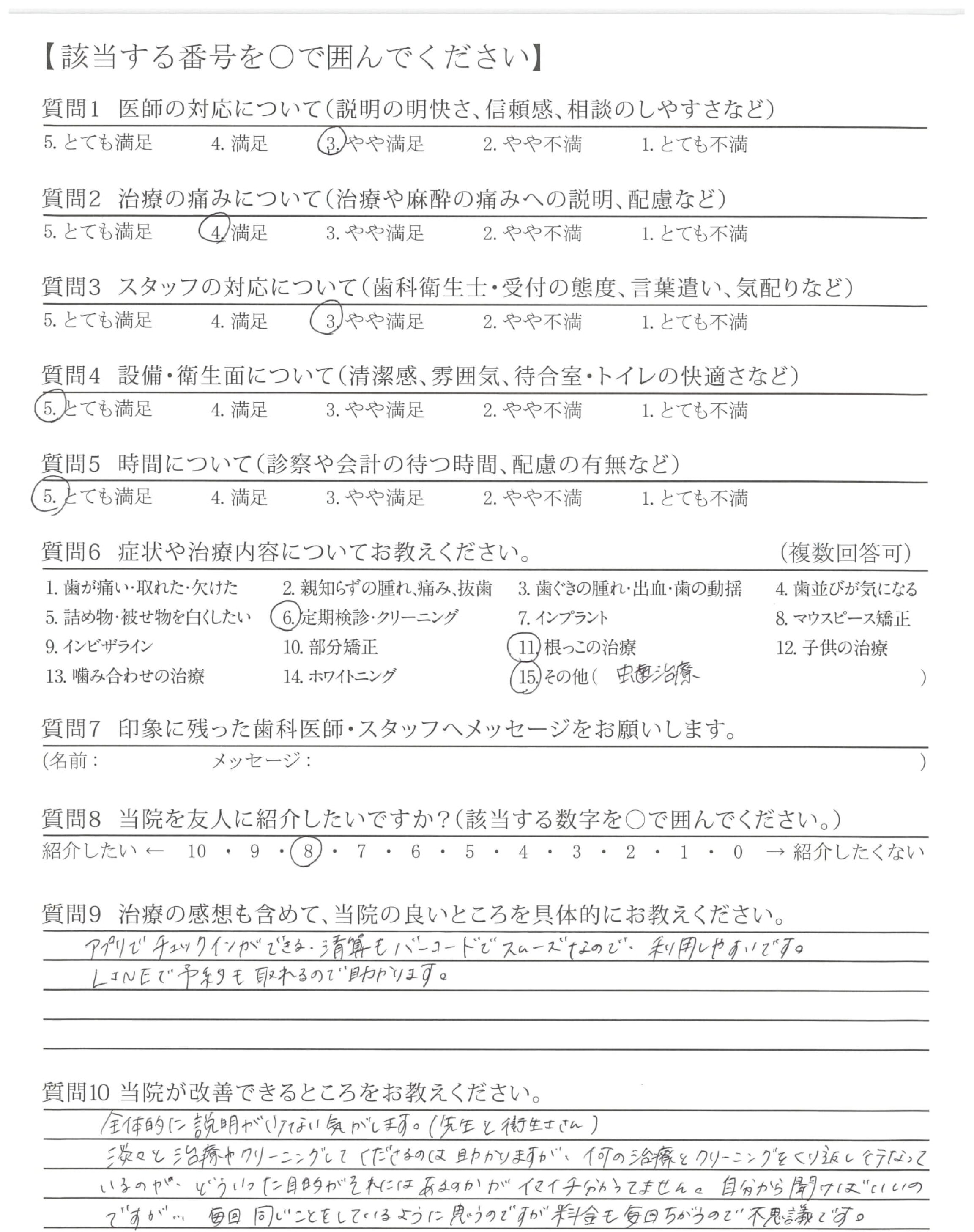 ・説明(治療)が丁寧で、技術が高いと思いました。