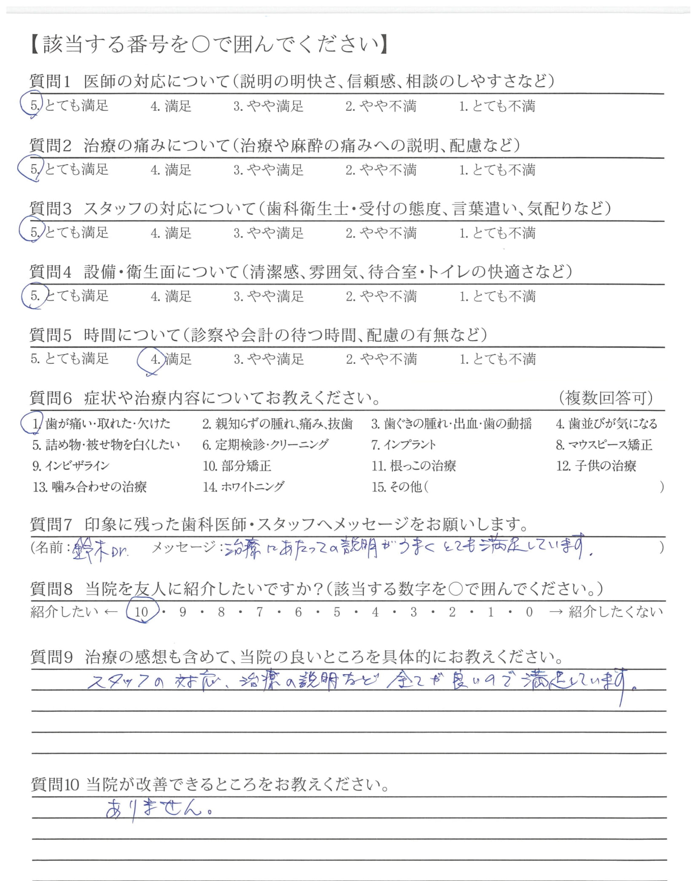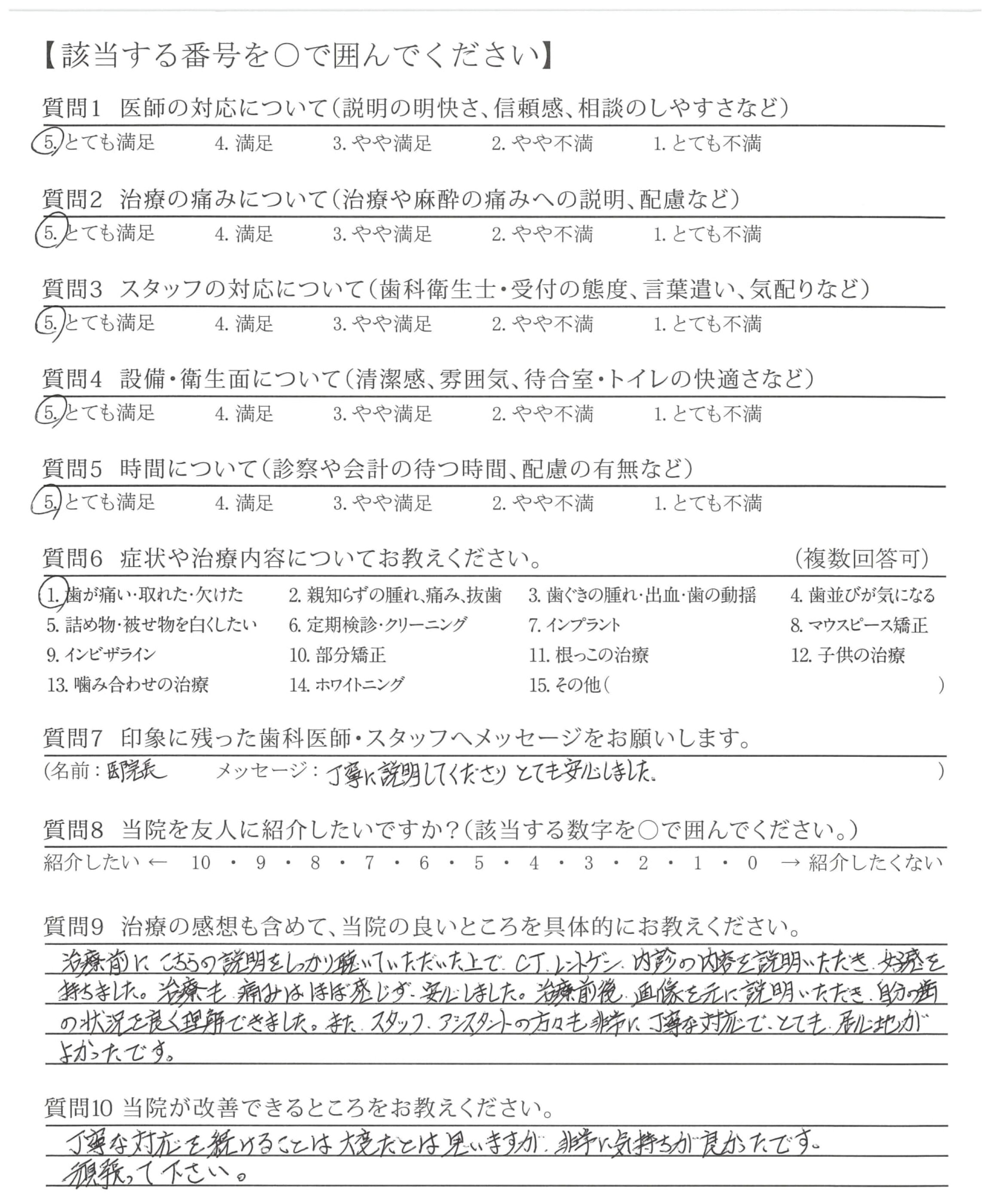 治療にあたっての説明がうまくとても満足しています。