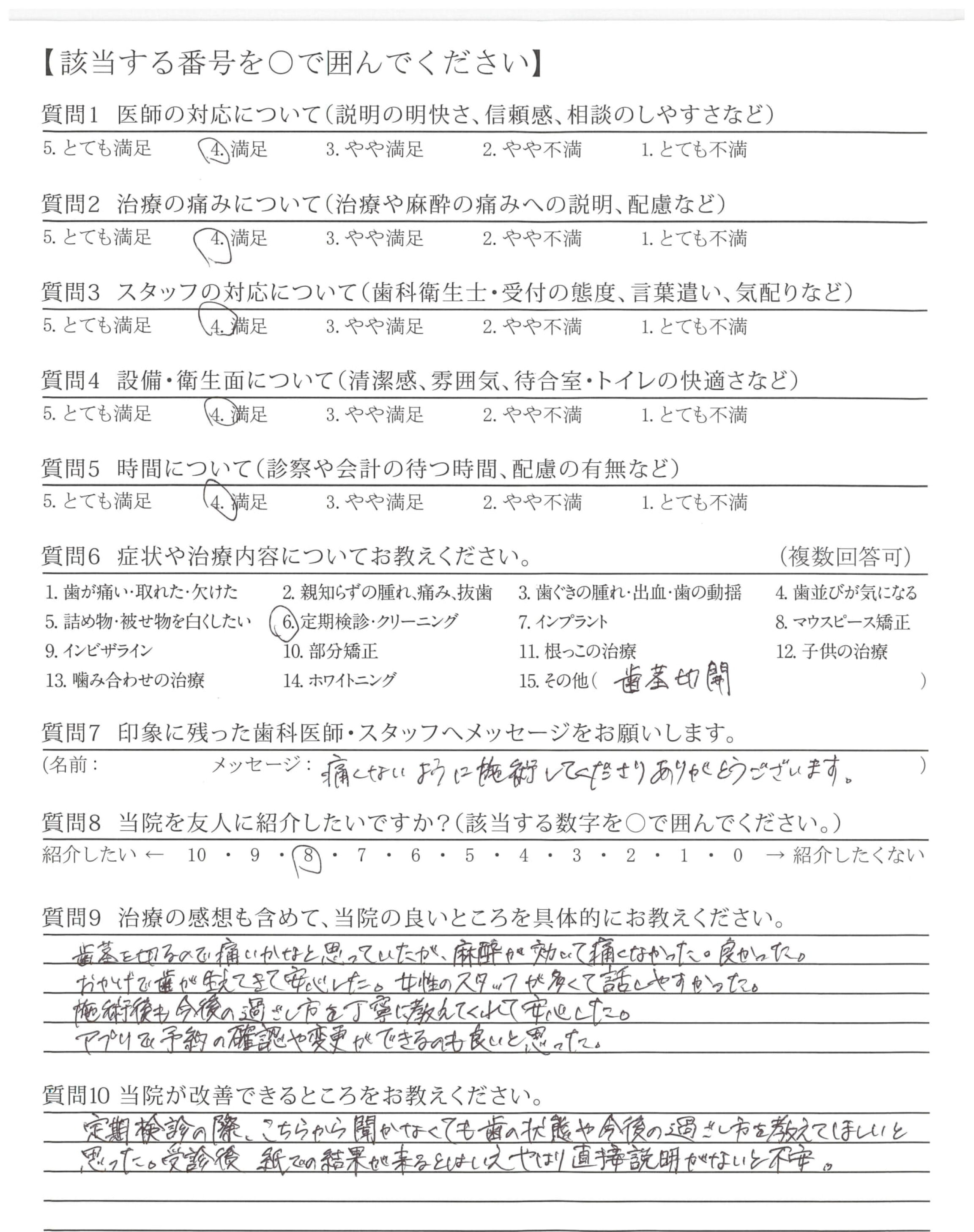 定期検診の際、こちらから聞かなくても歯の状態や今後の過ごし方を教えてほしいと思った。