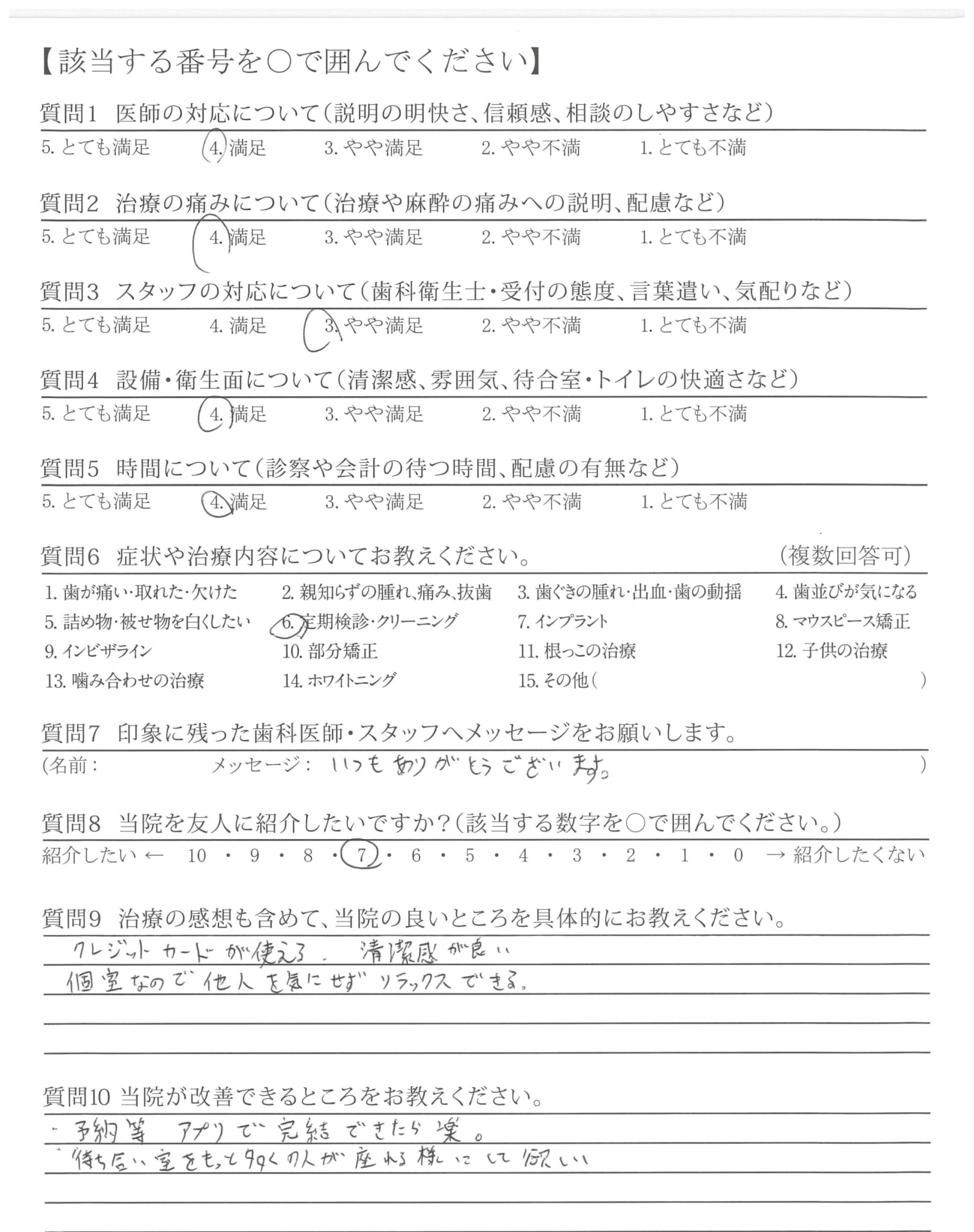 丁寧な対応を続けることは大変だとは思いますが、非常に気持ちが良かったです。頑張って下さい。